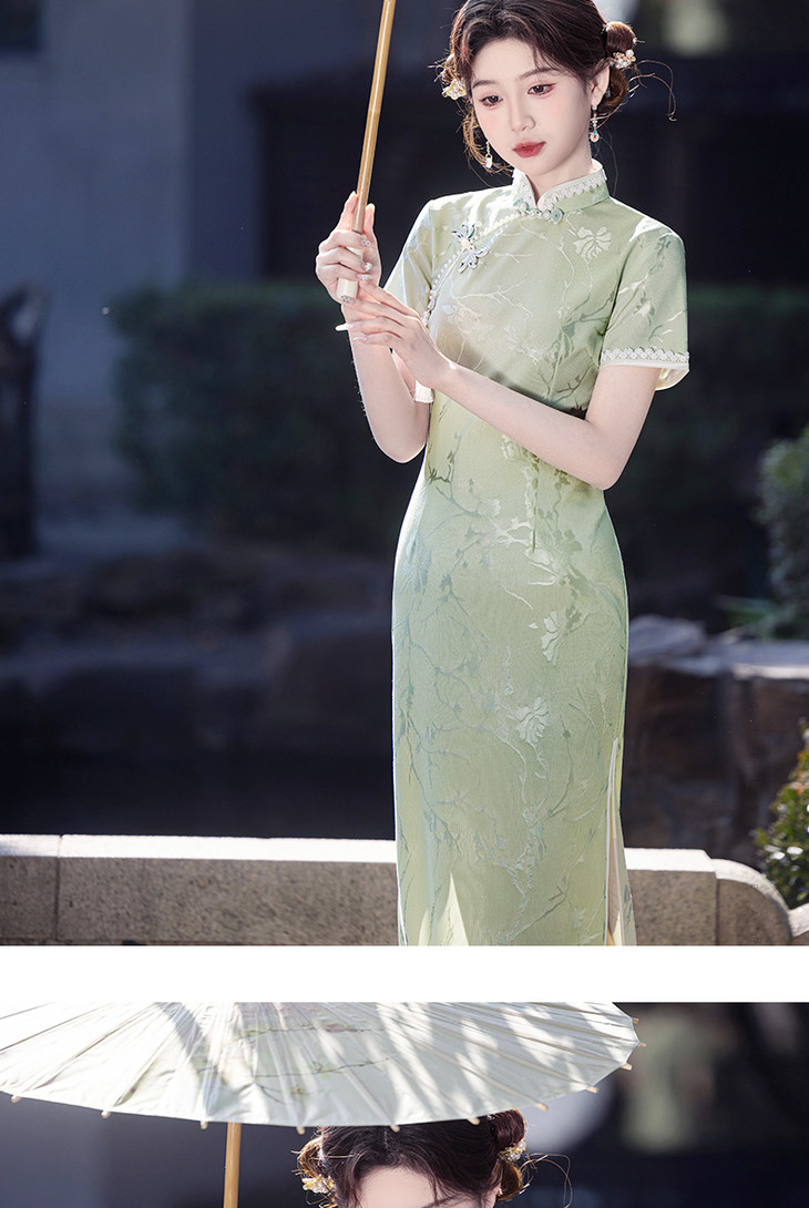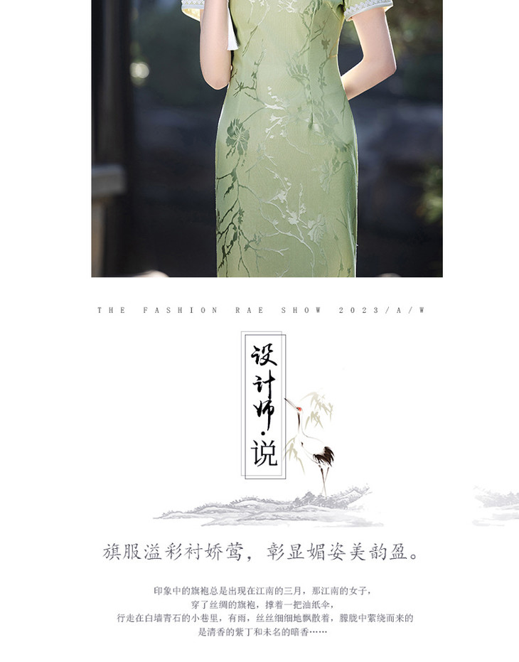 绿色旗袍高端气质少女新中式夏季提花3715 商品图0