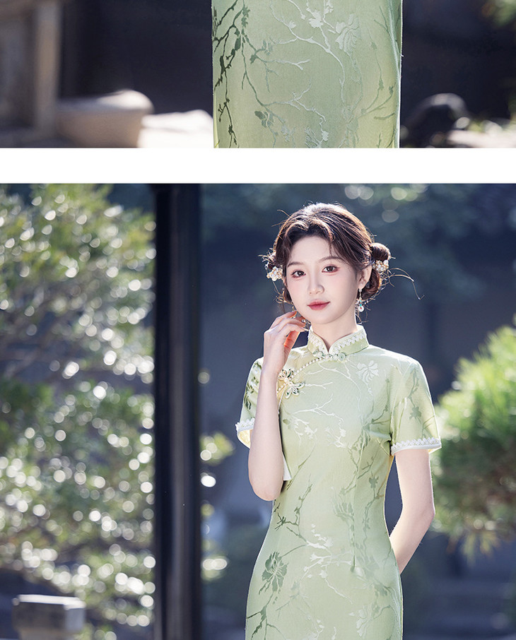 绿色旗袍高端气质少女新中式夏季提花3715 商品图1