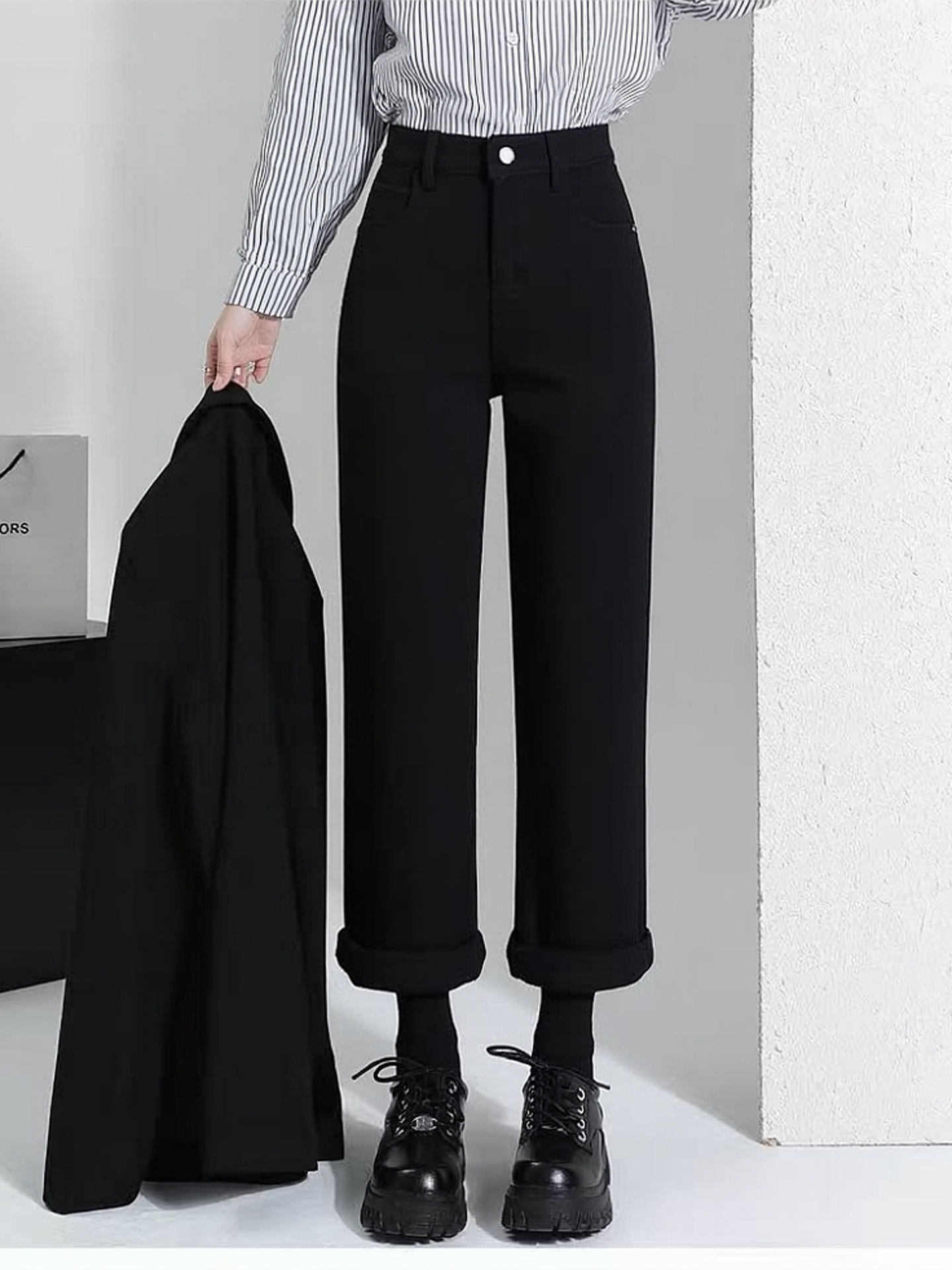 🔥🔥【2025爆款牛仔】加绒加厚~6631冬季百搭烟管裤窄版直筒裤小黑裤-喜出