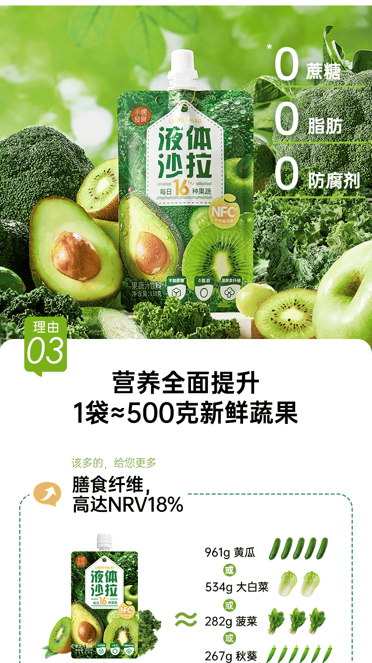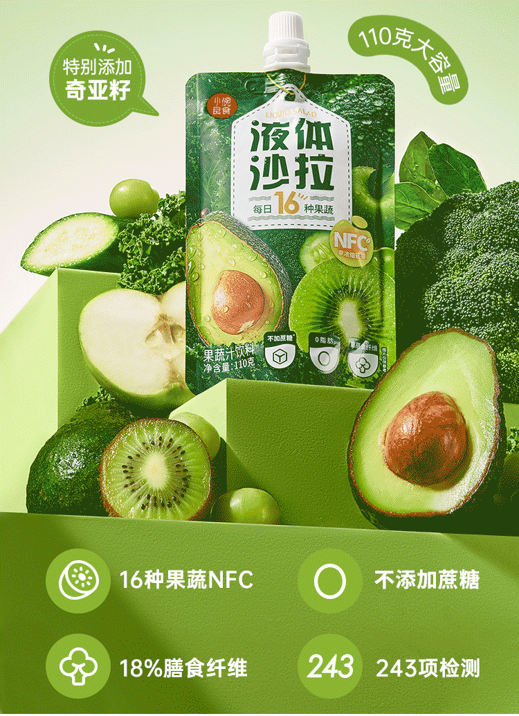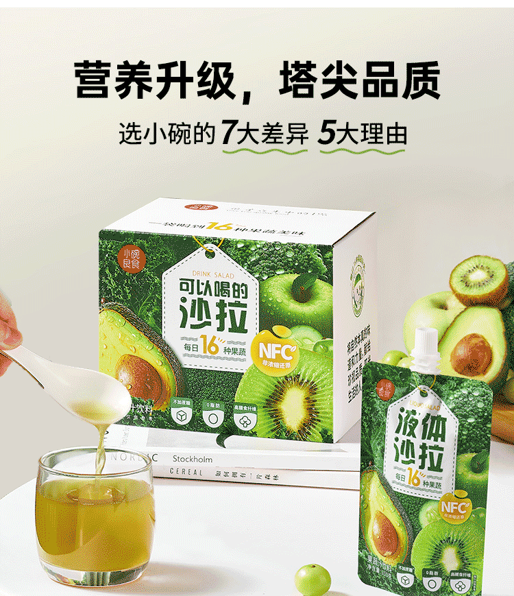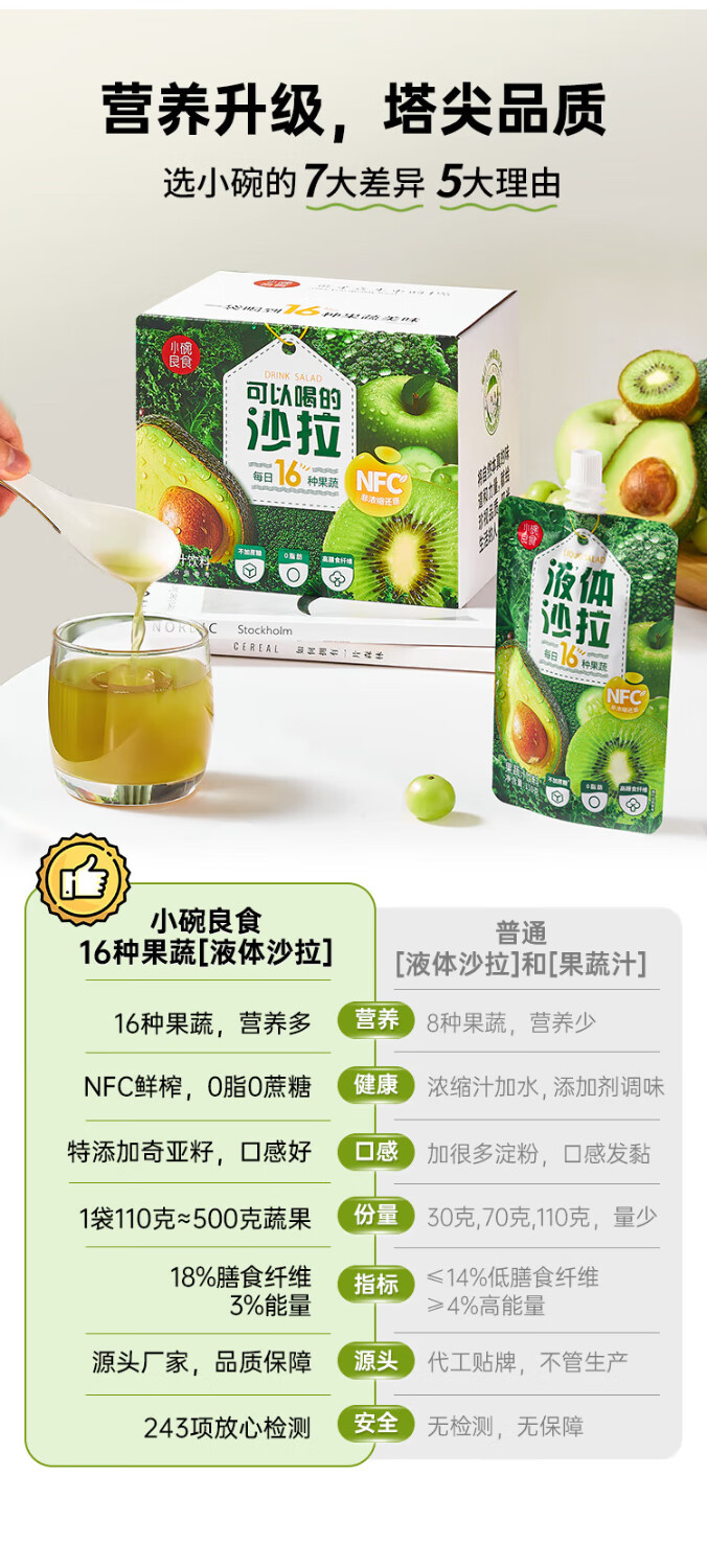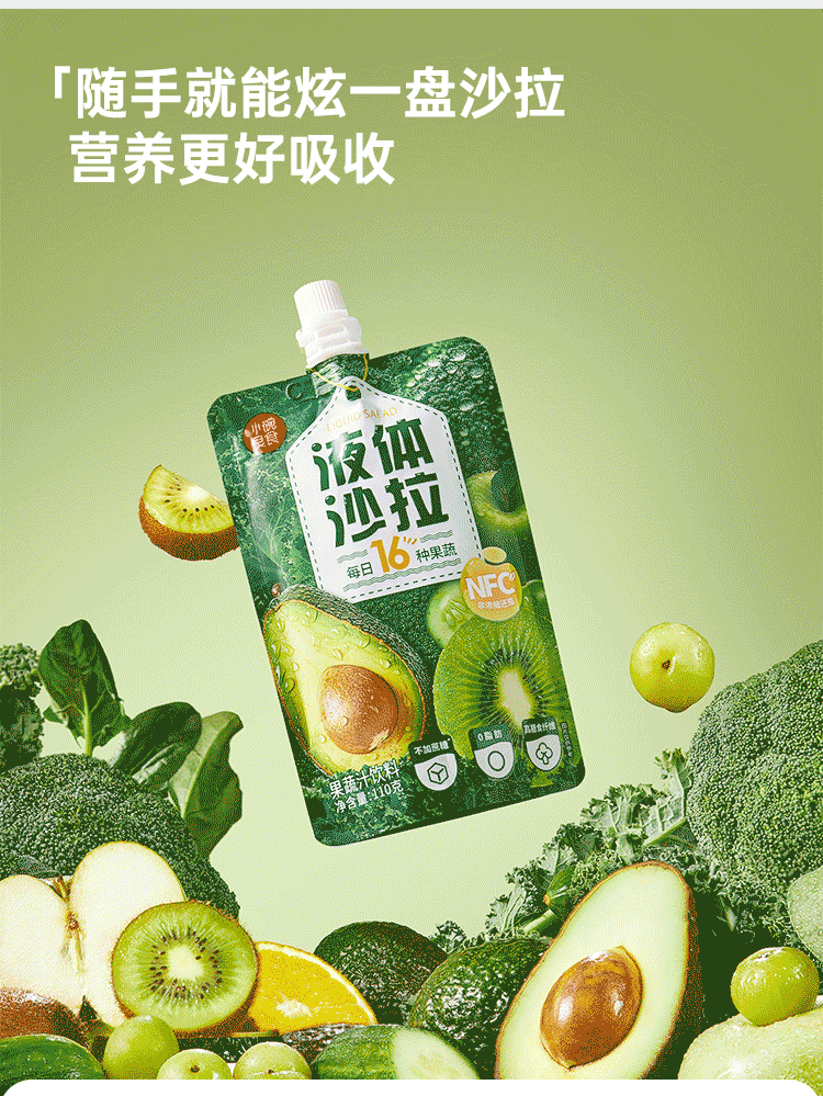 小碗良食液体沙拉 16种果蔬液体沙拉 果蔬汁鲜榨NFC 膳食纤维轻代餐