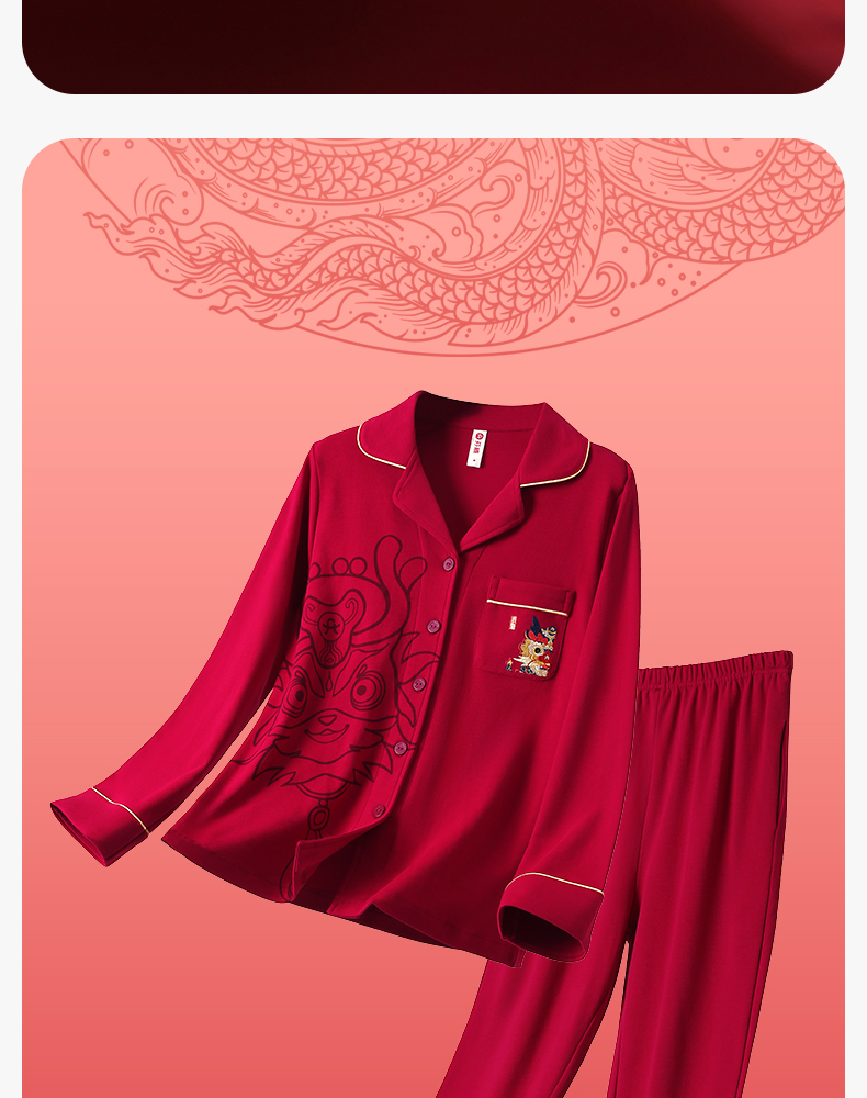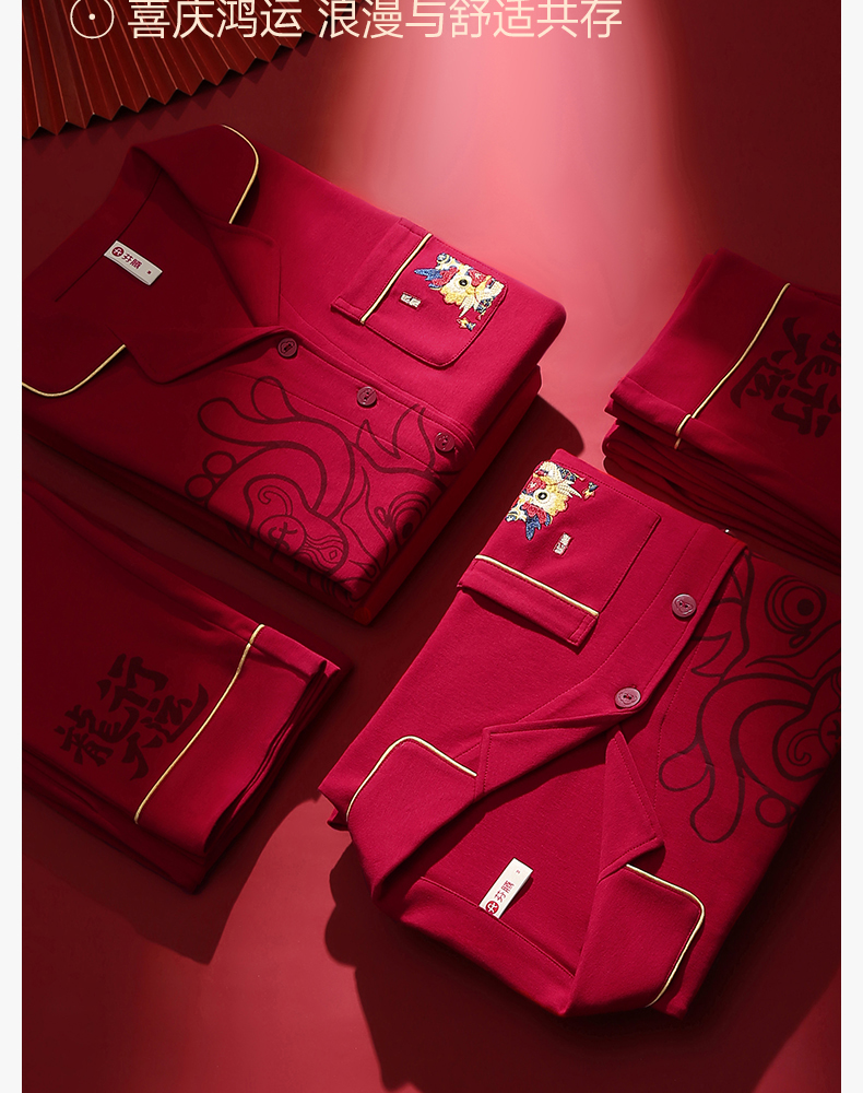 【福丞龙年】芬腾情侣纯棉睡衣红色本命年结婚喜庆男女士长袖家居服