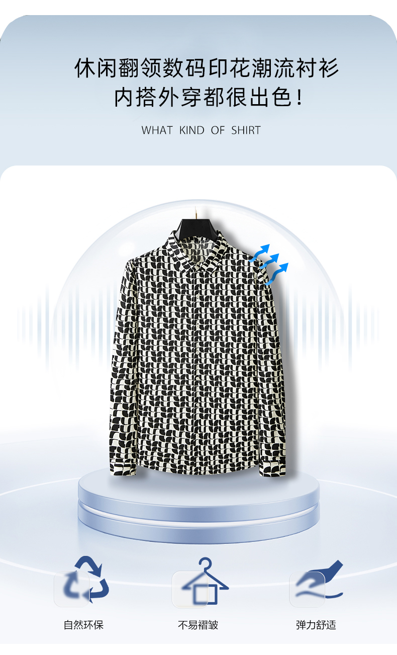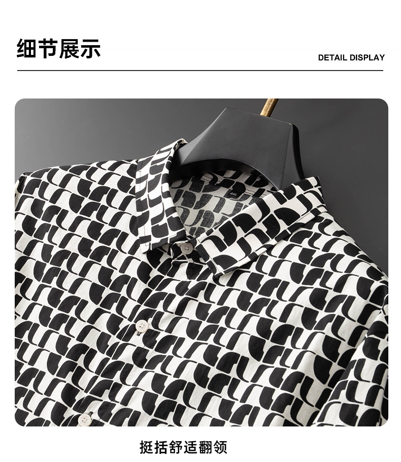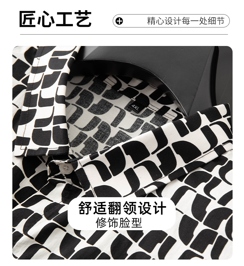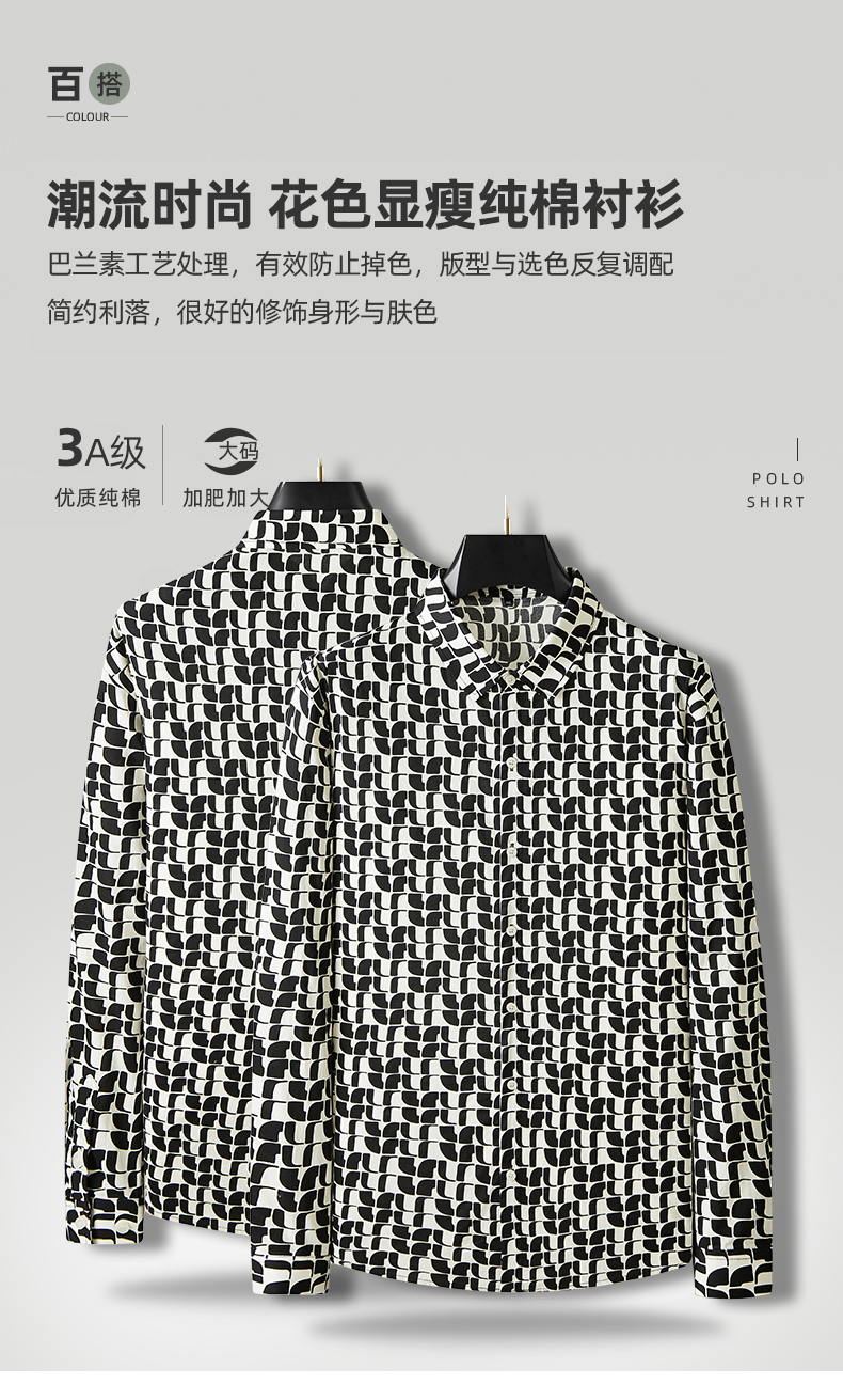 【100%棉】【新款DDA】大依优型大码花衬衫长袖衬衫翻领加肥加大肥佬休闲商务宽松透气上衣