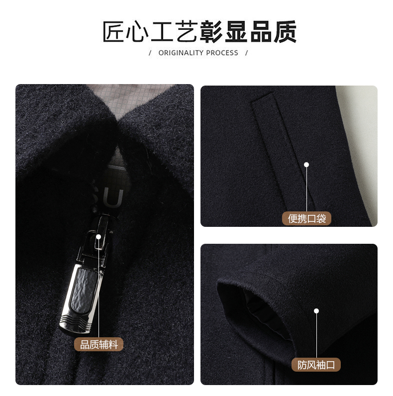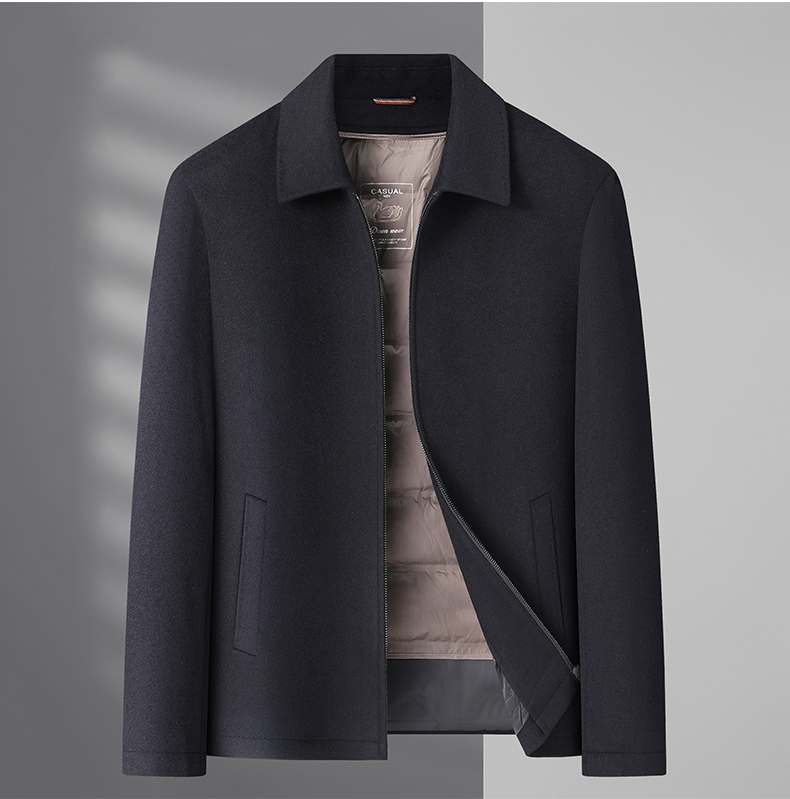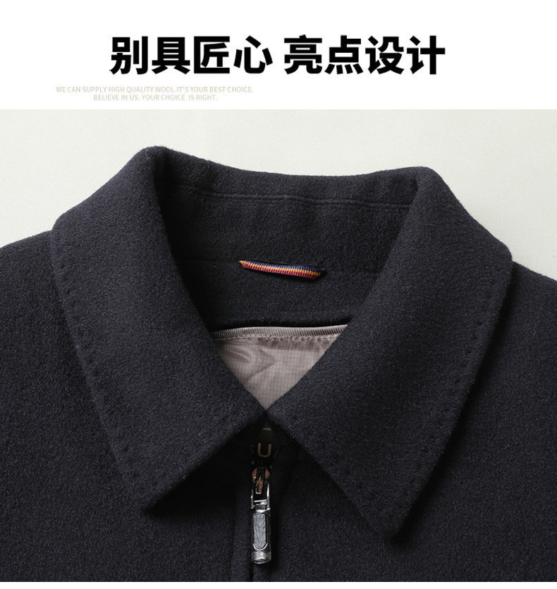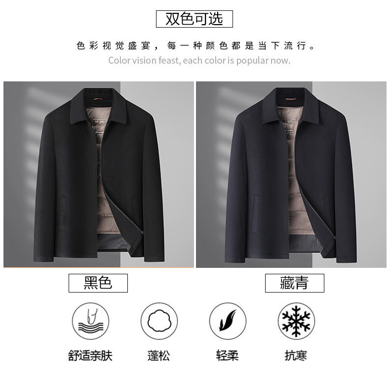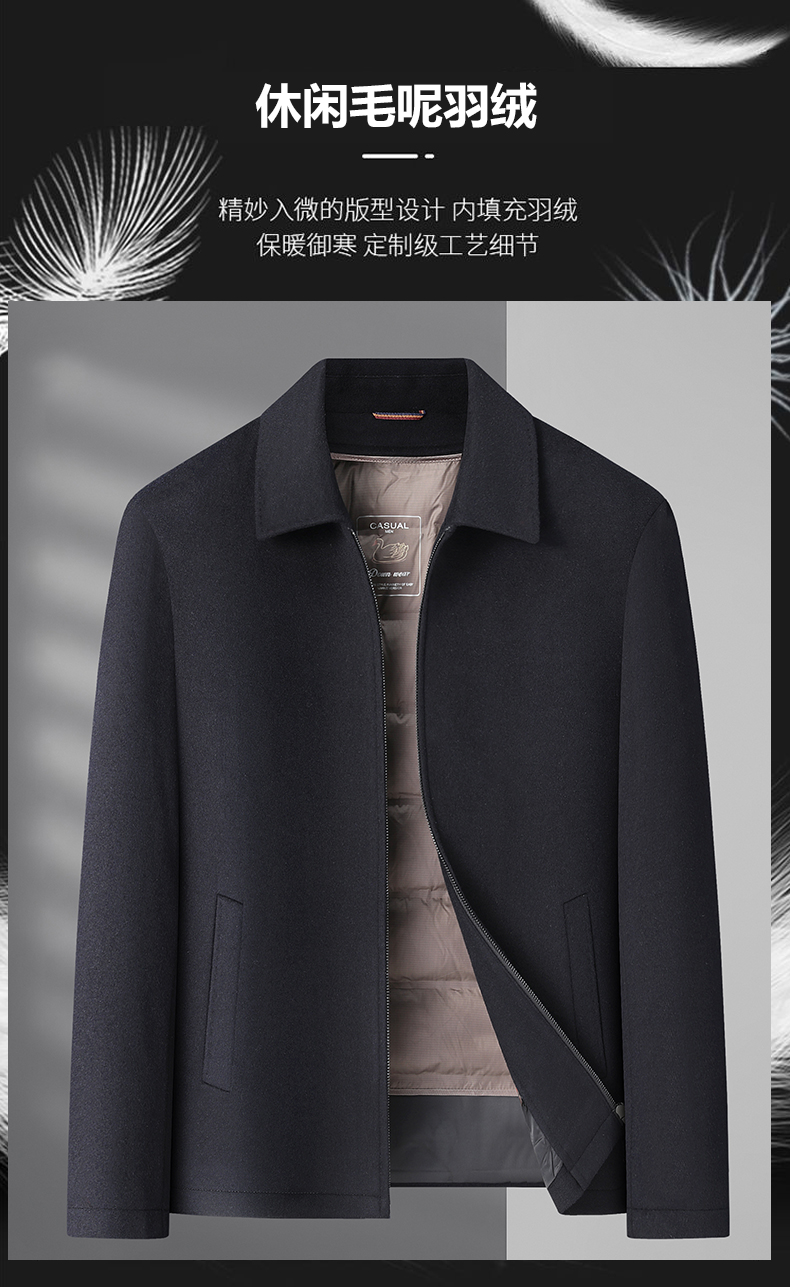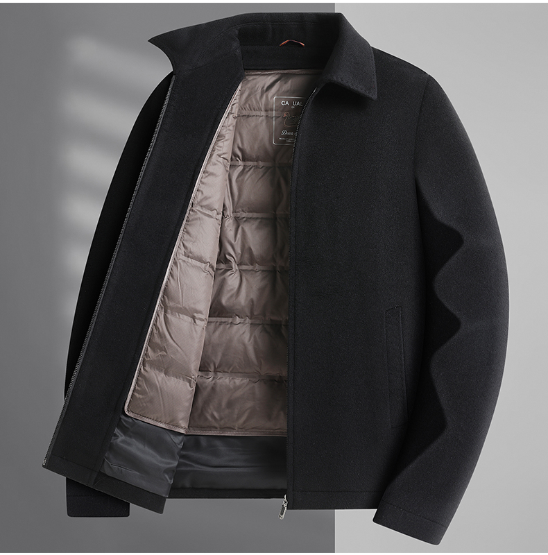 【100%羊毛】【可脱卸鹅绒内胆】【新款DLC】大依优型品质双面呢羊毛呢翻领外套商务夹克男宽松加肥加大码上衣胖子正装休闲