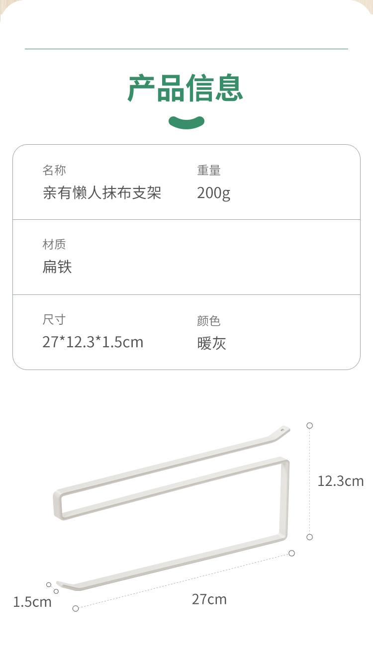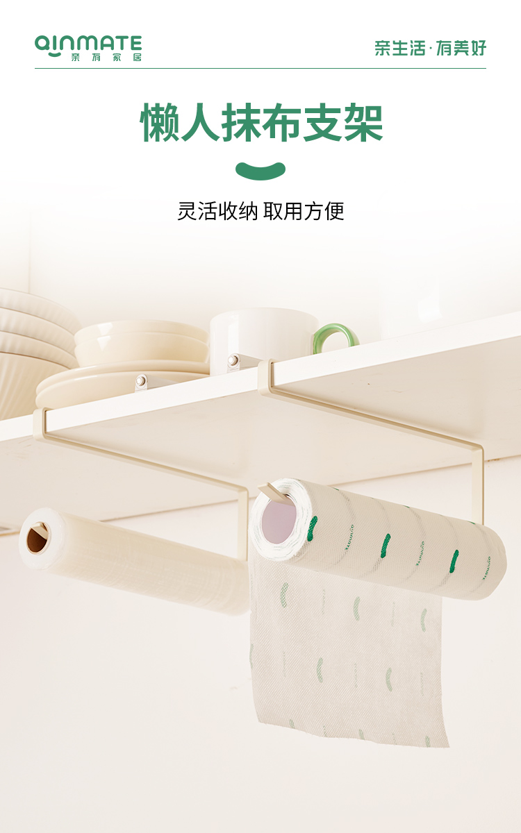 qinmate亲有 懒人抹布支架免打孔纸巾架保鲜膜收纳挂杆【该商品不支持用券】