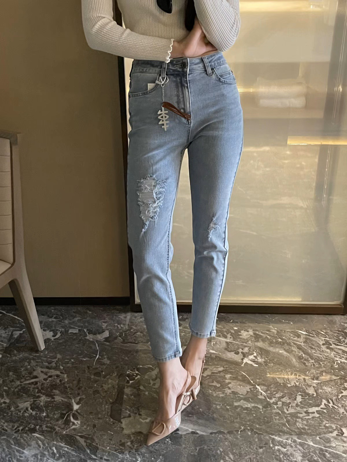 lee马毛破洞牛仔裤~