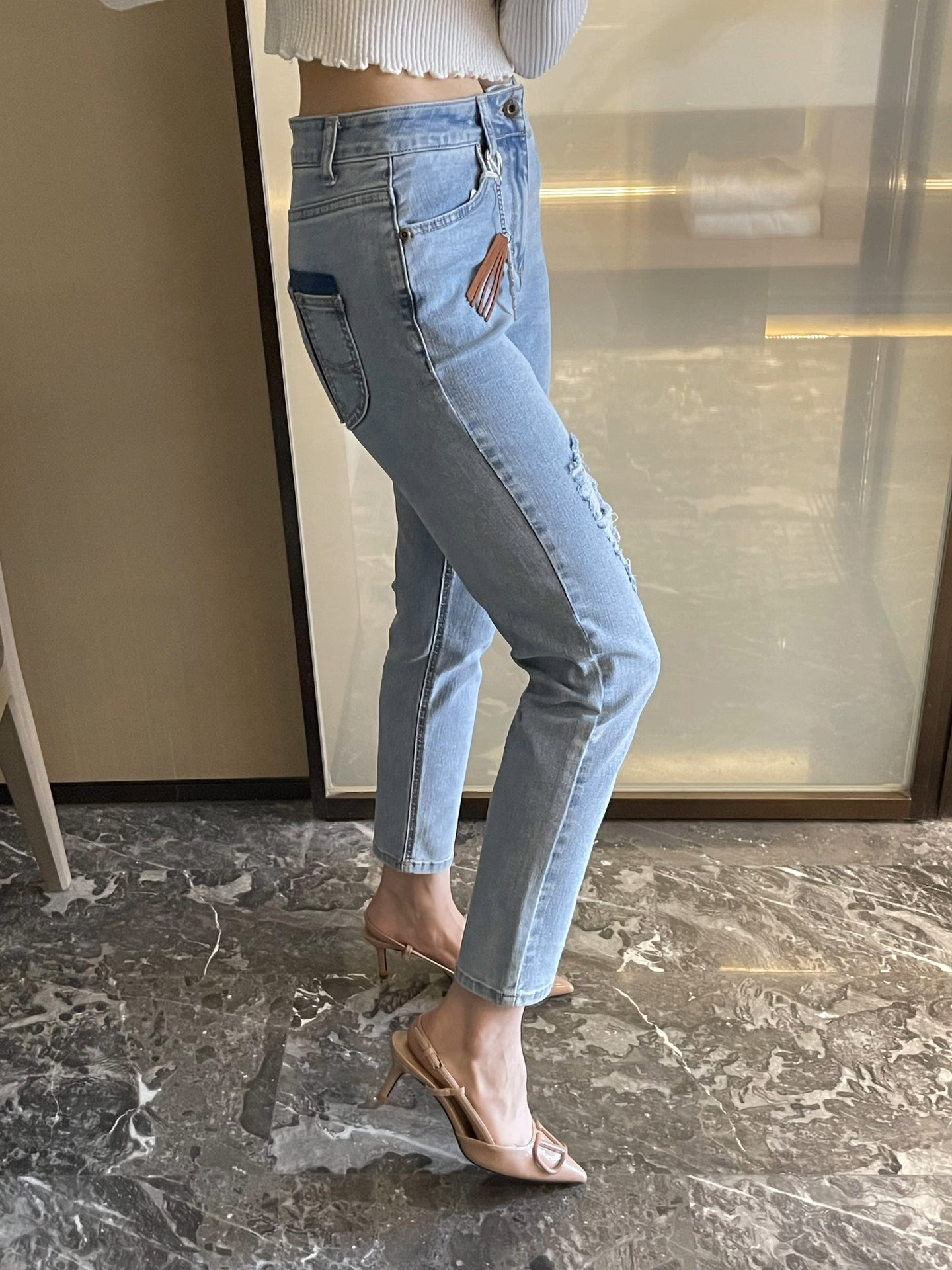 水洗磨白,破洞,辅料配件原厂工艺,春夏季首选单品。