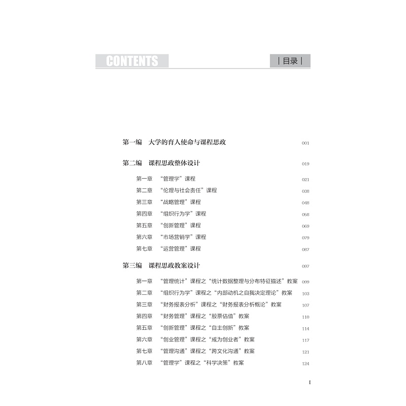 浙江大学管理学院提出重点打造“四个一”:建设一批充分彰显学院管理学科特色,育人成效明显的课程思政示范系列课程,培养一批具有影响力的课程思政教师和团队,提炼一系列可推广的课程思政教育教学改革典型经验和特色做法,形成一套科学有效的课程思政教育教学质量考核评价体系。本书是针对该主题进行的深入实践和研究。全书共五篇,第一篇,学院课程思政理念与建设进展;第二篇,课程篇:课程思政在每门课中的整体设计理念与体系深度解析;第三篇,模块篇:课程思政在具体课程章节模块中的融合;第四篇,知识点篇:课程思政元素在具体知识点中的体现;第五篇,案例篇:课程思政如何融入管理学院教学案例的开发之中。
