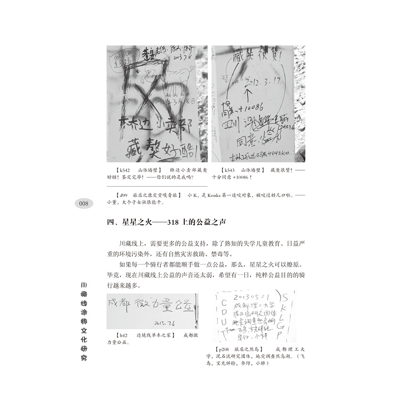 绵延2166公里的公路涂鸦,除了数量庞大无法忽视外,其本身就是一个世界奇观,据作者考察,除了骑友零星拍照记录外,这些涂鸦偶尔会出现在网络游记的帖子中,但还没有人进行系统的记录,更不要说进行系统研究了。
