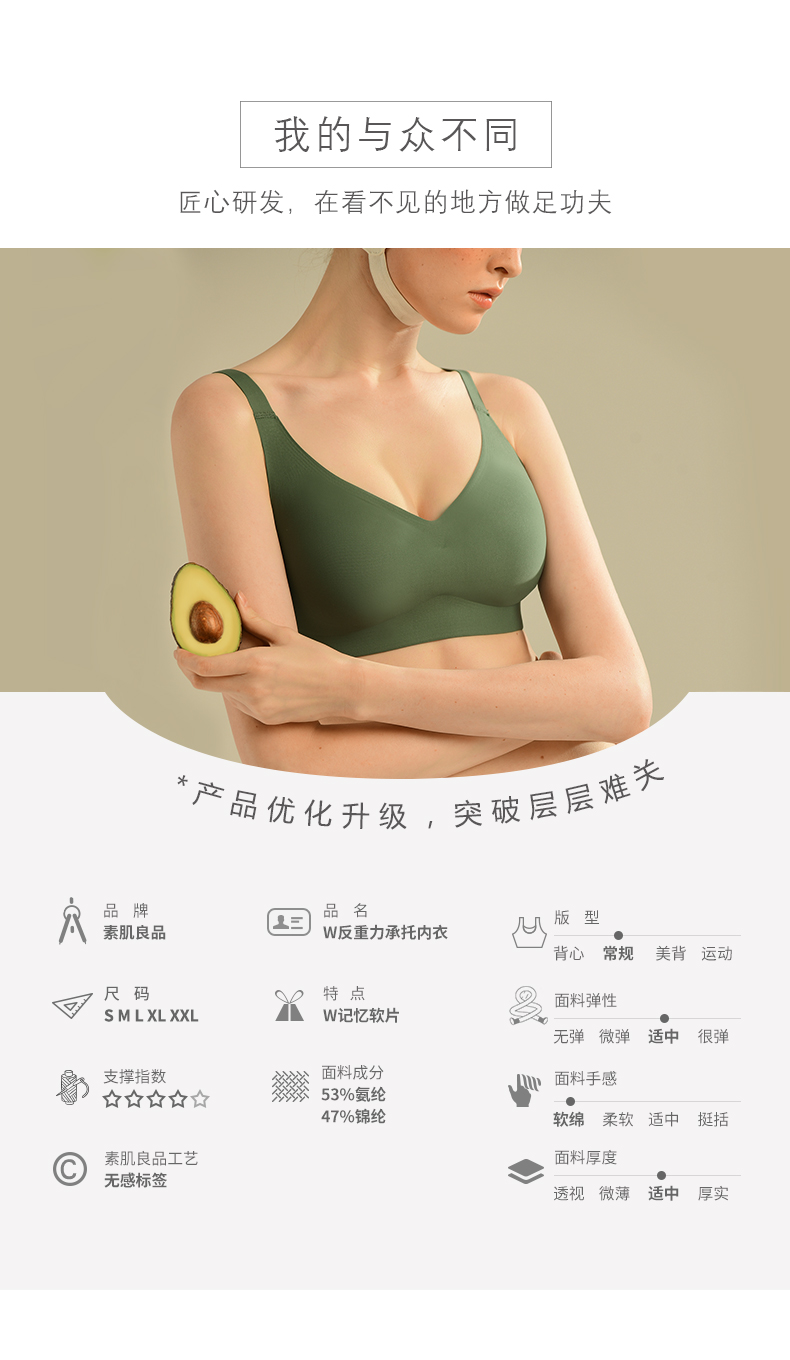 素肌良品【W反重力】收脂显瘦背钩文胸 MX081-FX