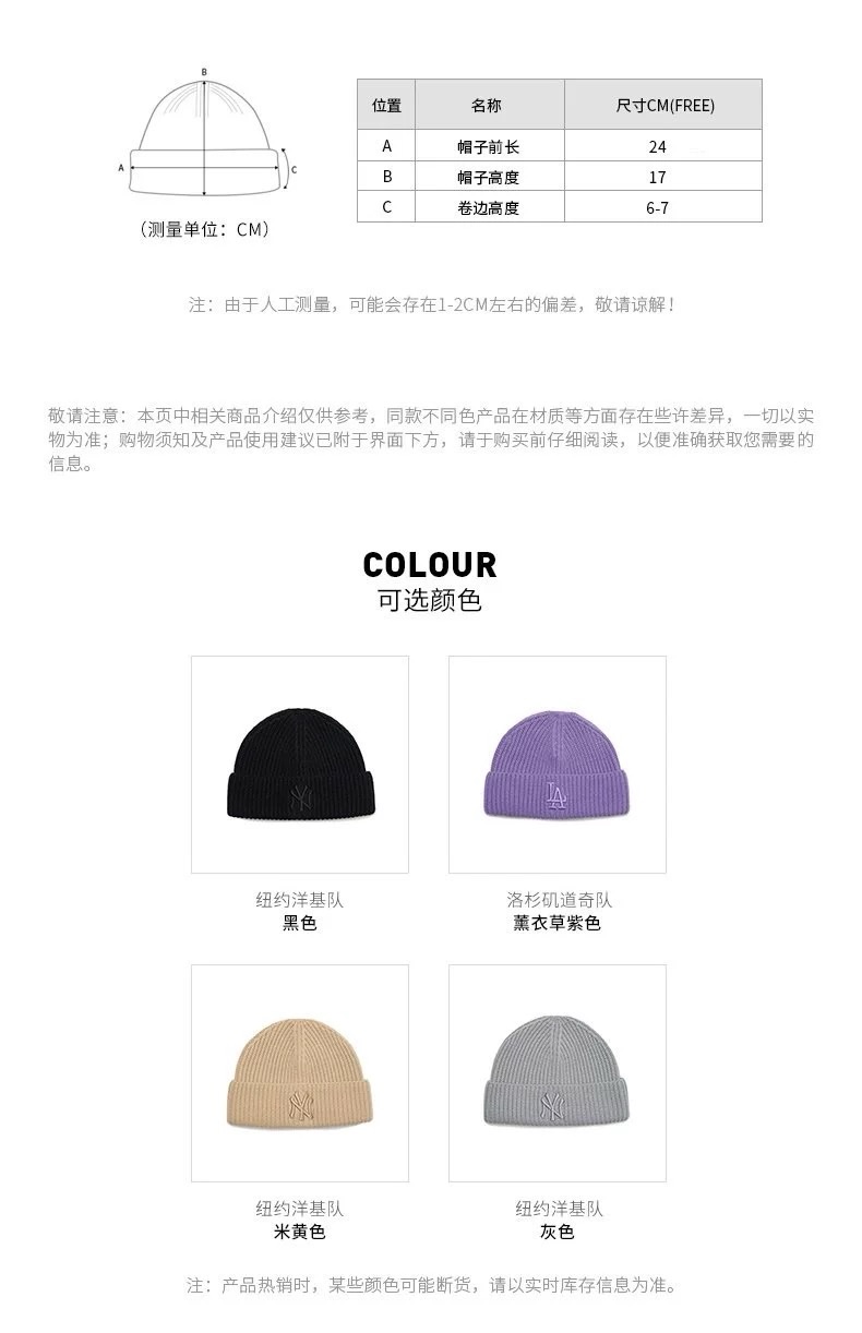 MLB男女同款基础款刺绣标毛线帽3ABNS0216