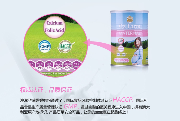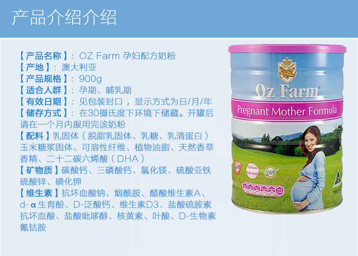 【海外直邮】Oz Farm孕妇孕期哺乳期营养奶粉900g含叶酸多维配方