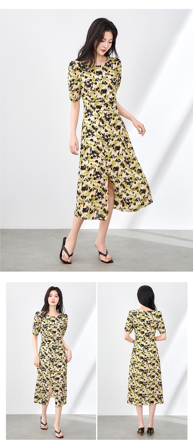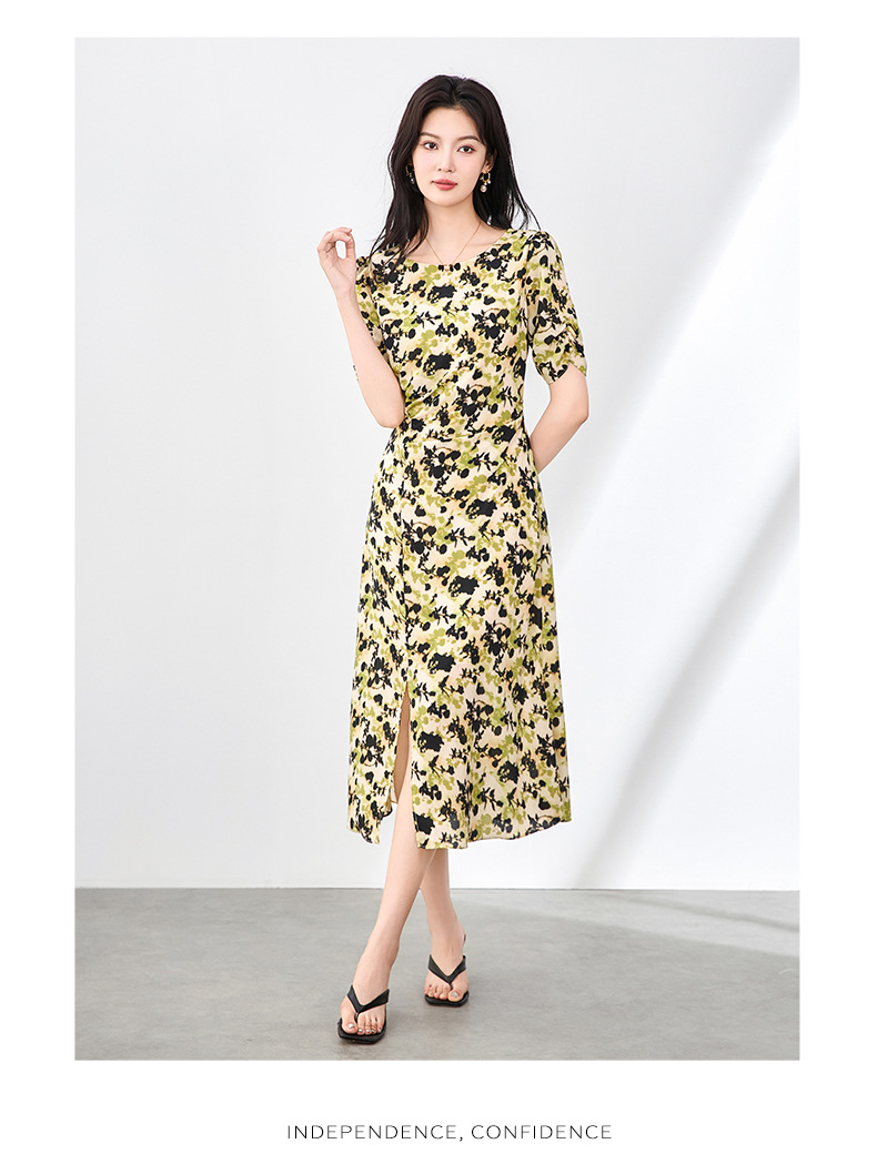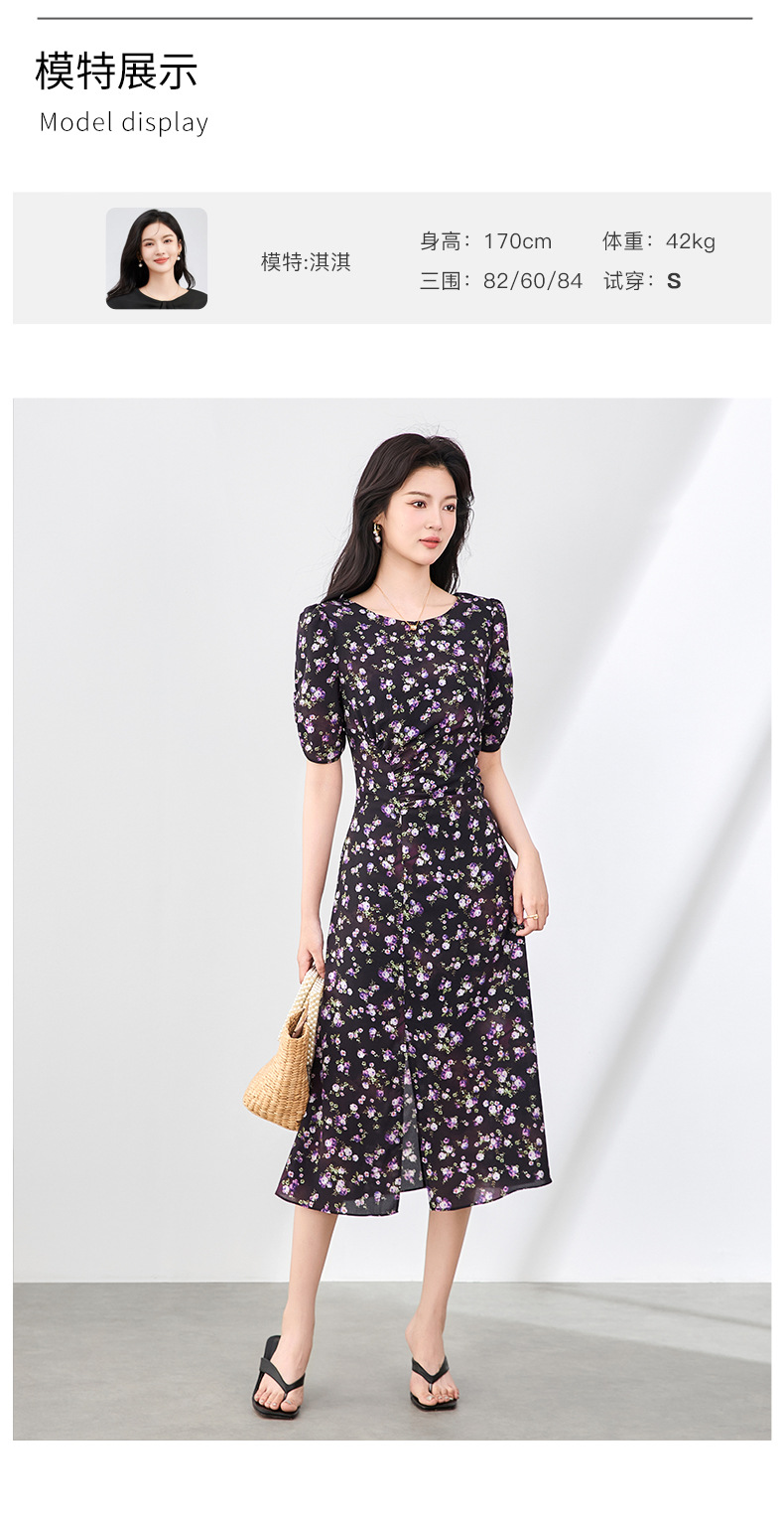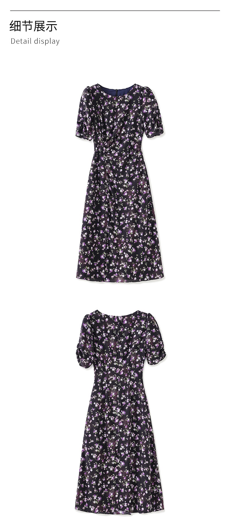 「高货wl」全新升级【铂金会员293/天猫399/差价106】(11937)洛诗琳法式气质印花连衣裙2025夏季收褶开叉收腰优雅裙子