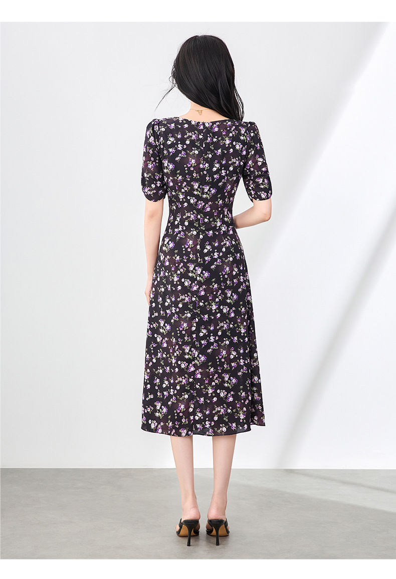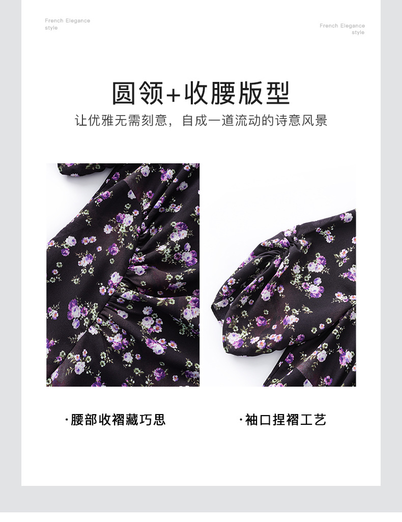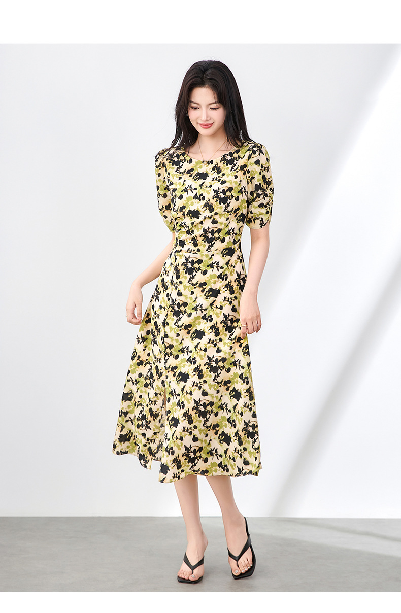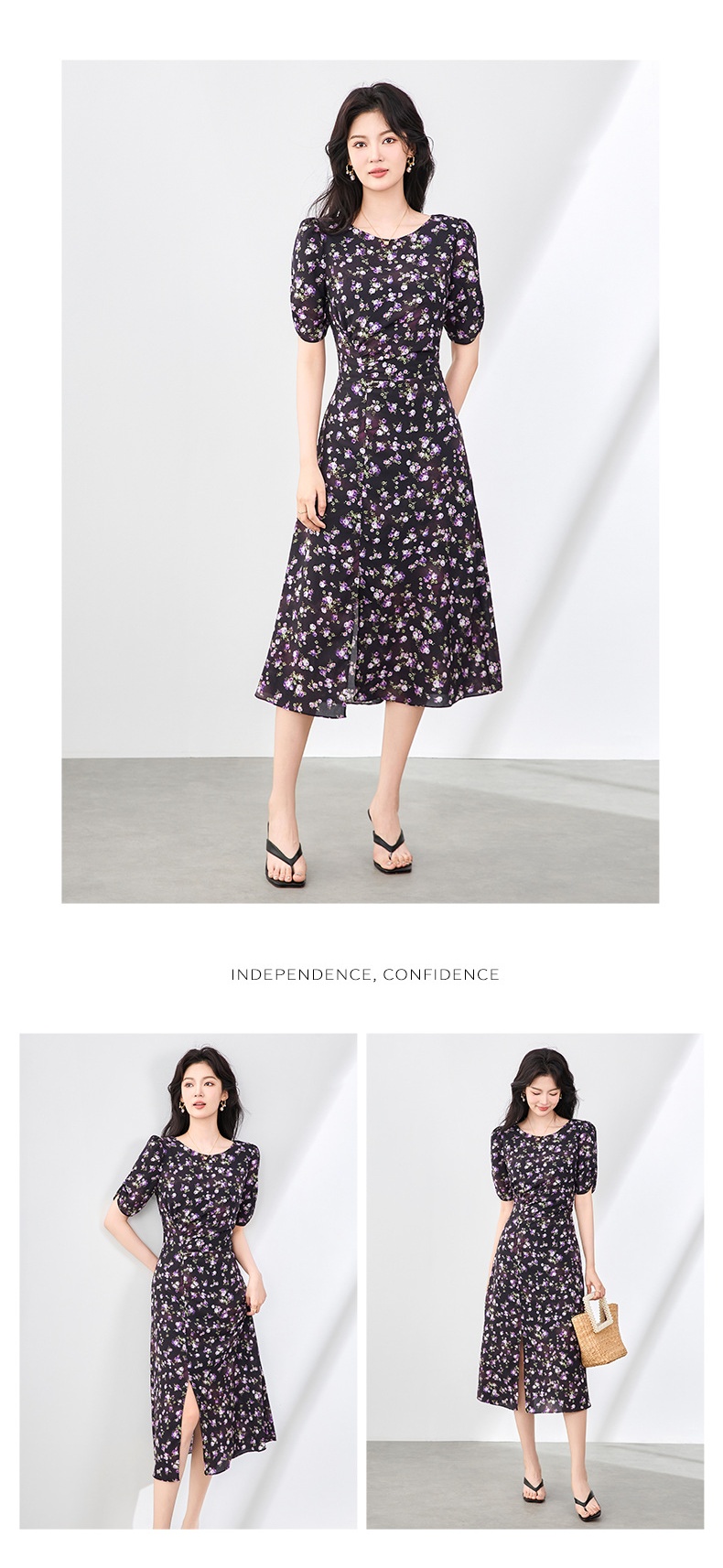「高货wl」全新升级【铂金会员293/天猫399/差价106】(11937)洛诗琳法式气质印花连衣裙2025夏季收褶开叉收腰优雅裙子