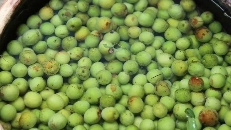 (2)青梅在六七成熟的时候碱性最强,采摘回来之后在冷水中浸泡1个小时,以去除杂质。浸泡的容器不能是金属材质 的,也不能沾油。