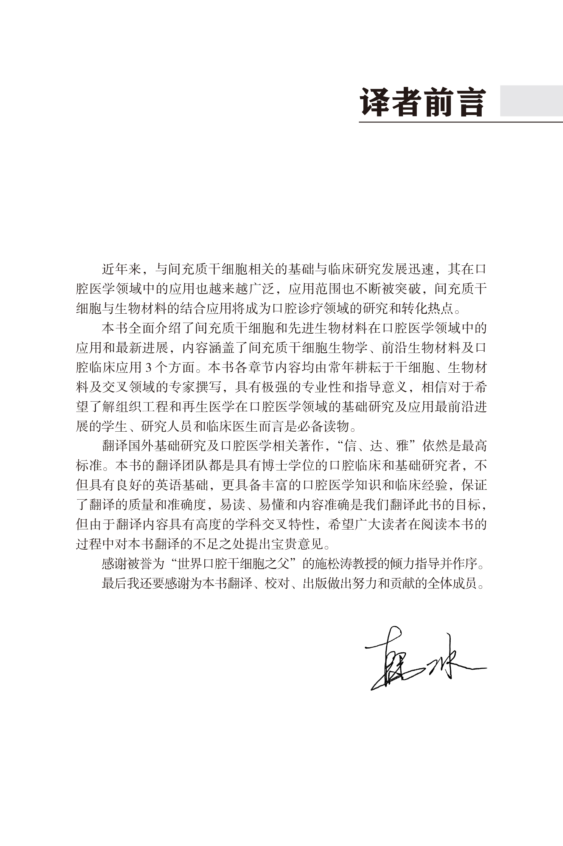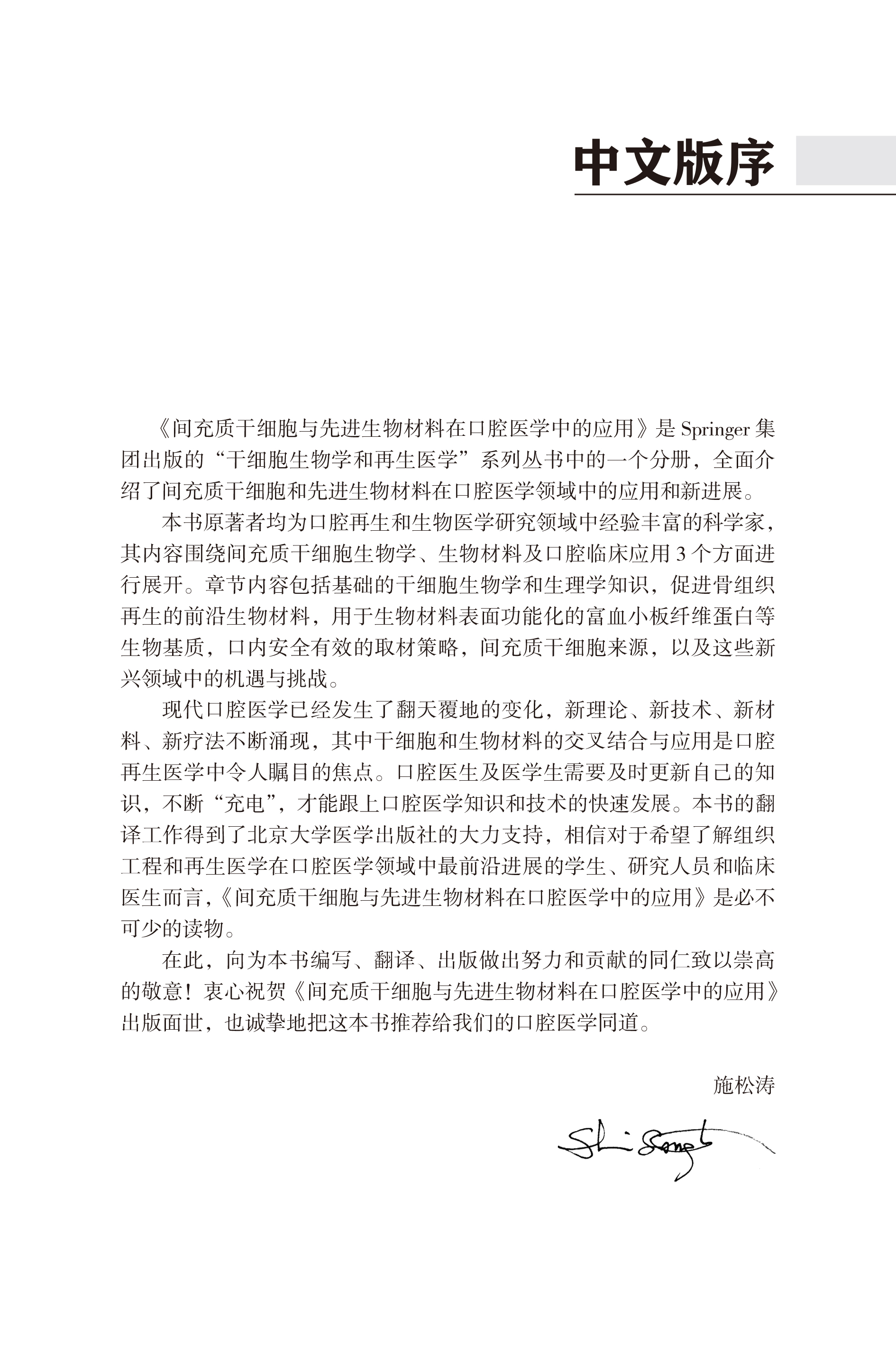 间充质干细胞与先进生物材料在口腔医学中的应用 韩冰 余婷婷 卫彦 主译 北医社