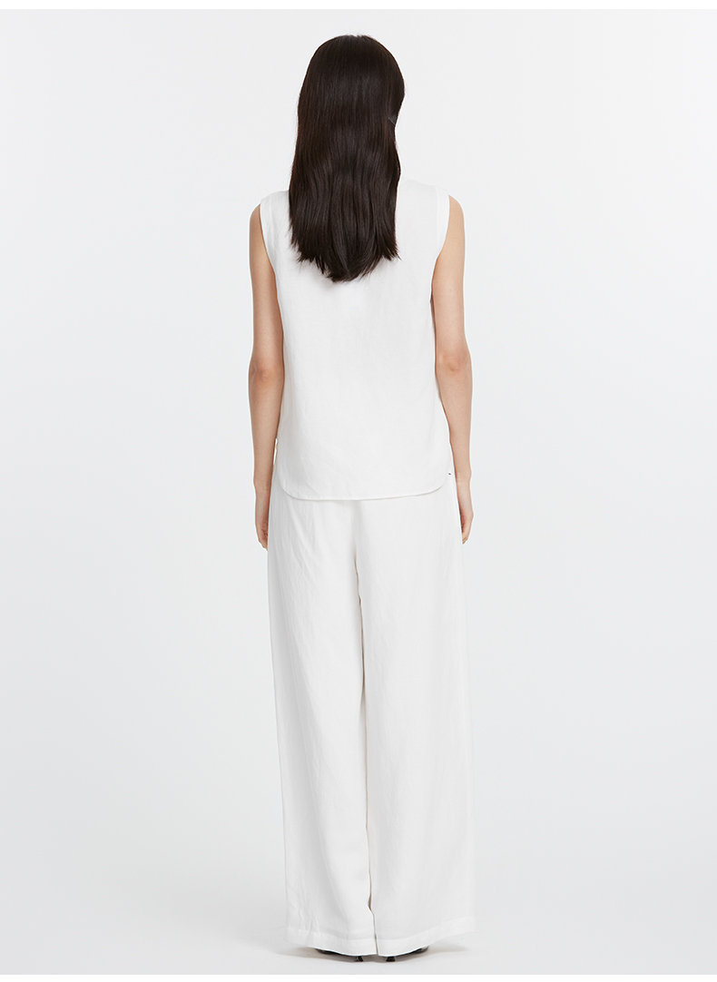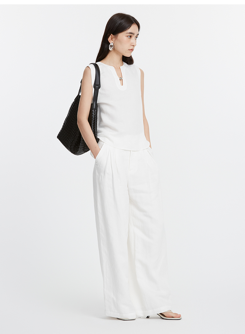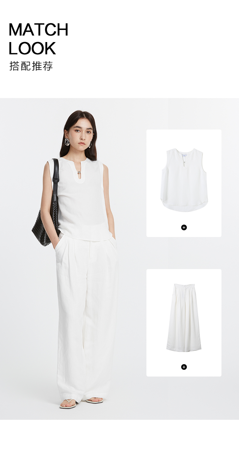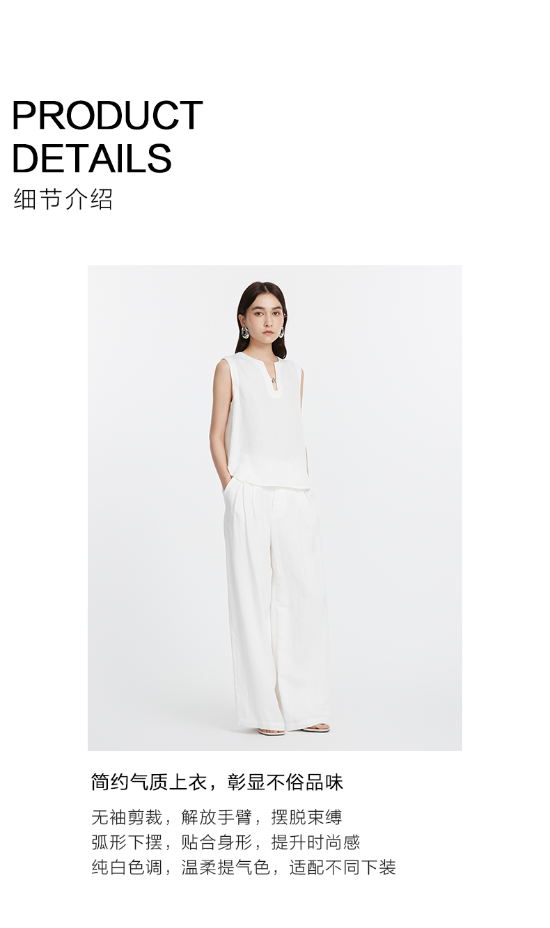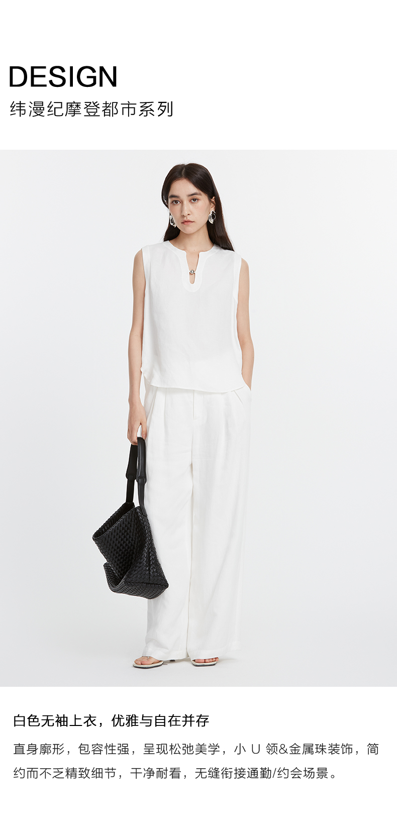 VIMAGE纬漫纪设计师款亚麻气质简约背心小U型领廓形上衣2025夏季新款V2313928