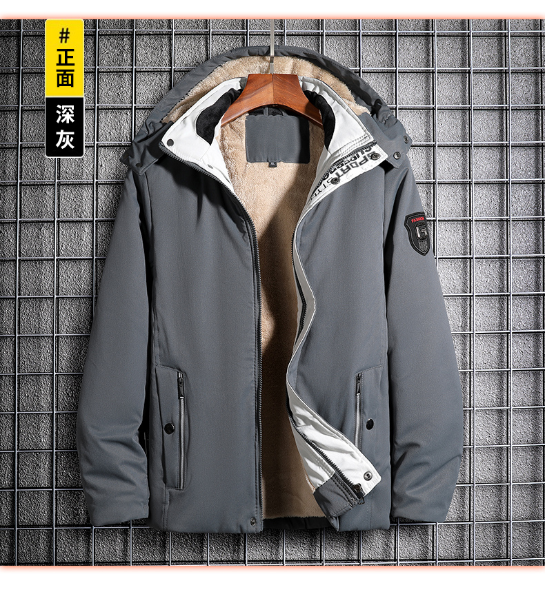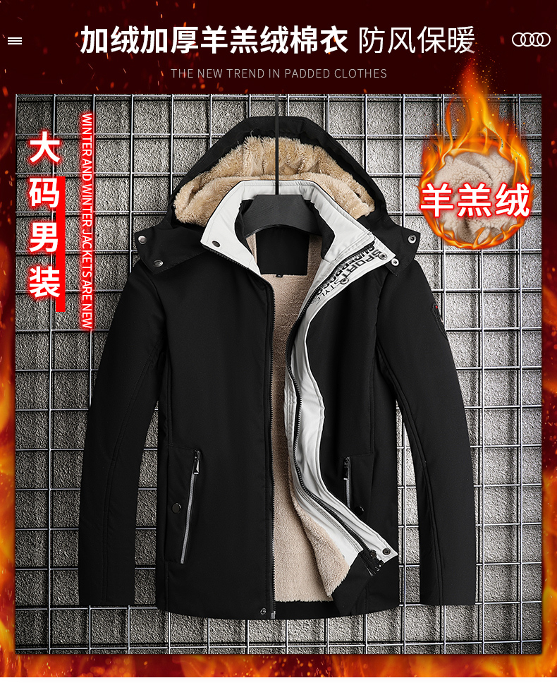 【新款DXC】大依优型大码连帽立领棉衣加肥加大羊羔绒外套时尚大号男装冬季胖子保暖