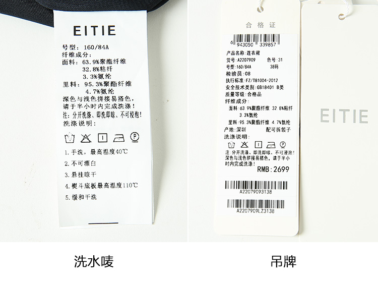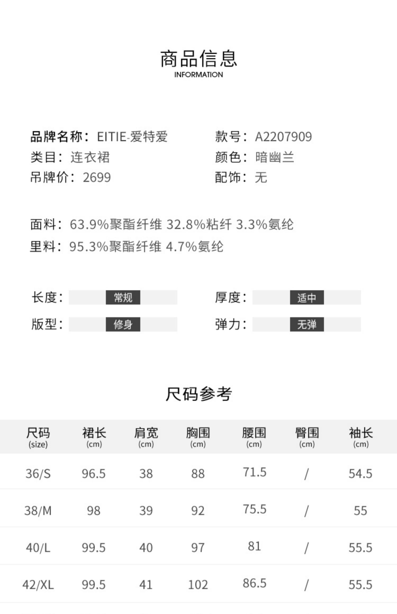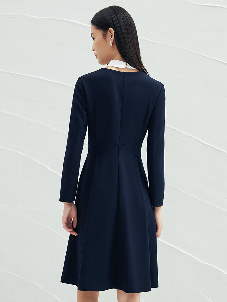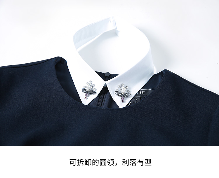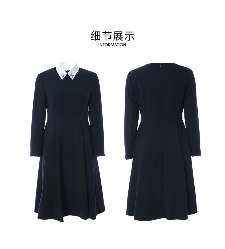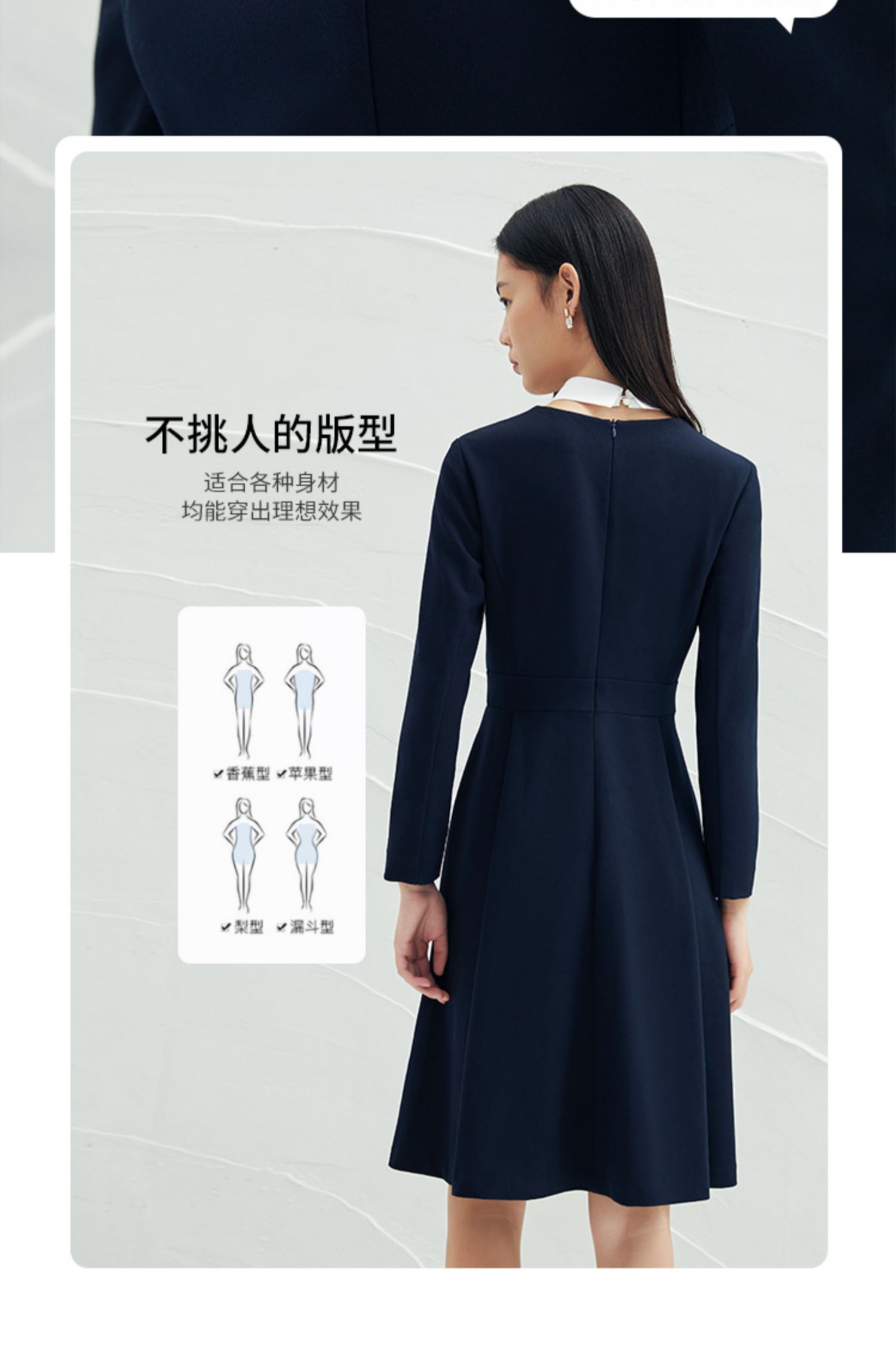 EITIE爱特爱春款新品翻领百衬衫领拼接百搭时尚通勤收腰显瘦连衣裙A2207909