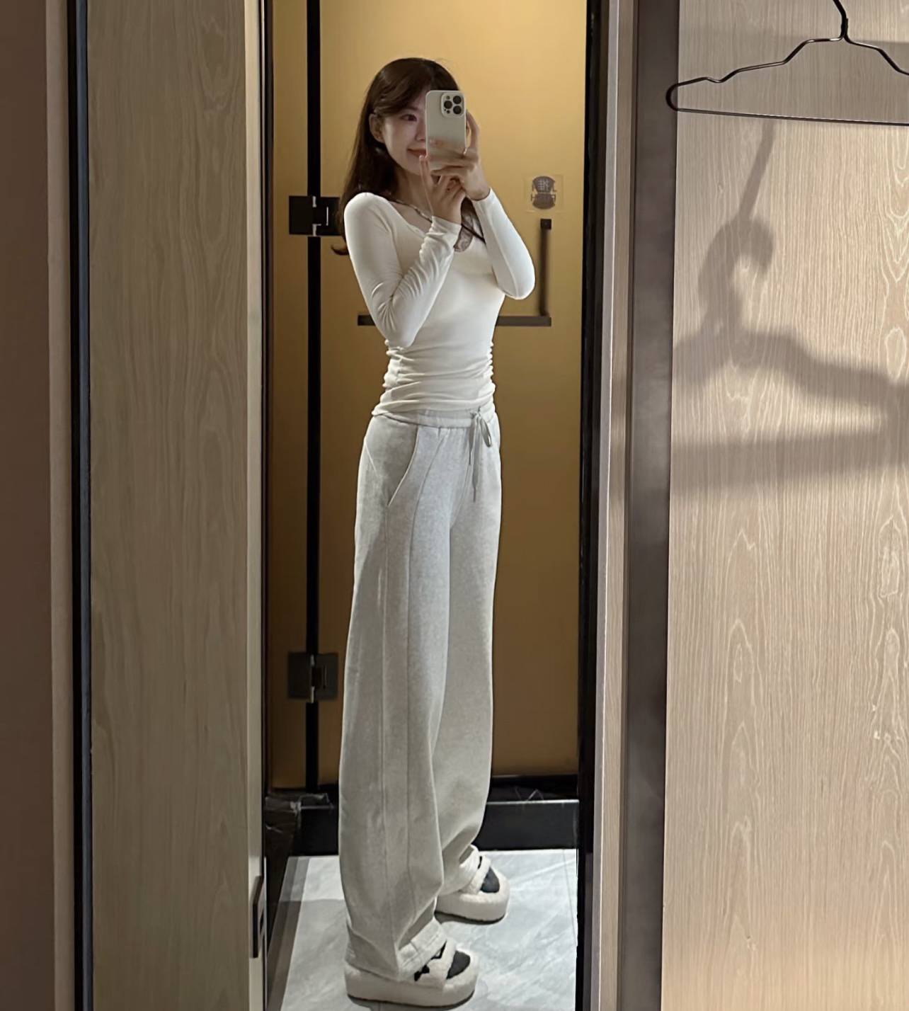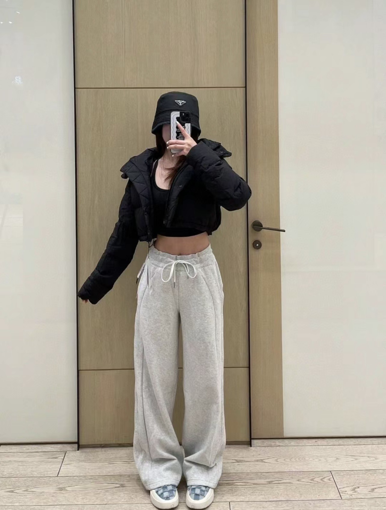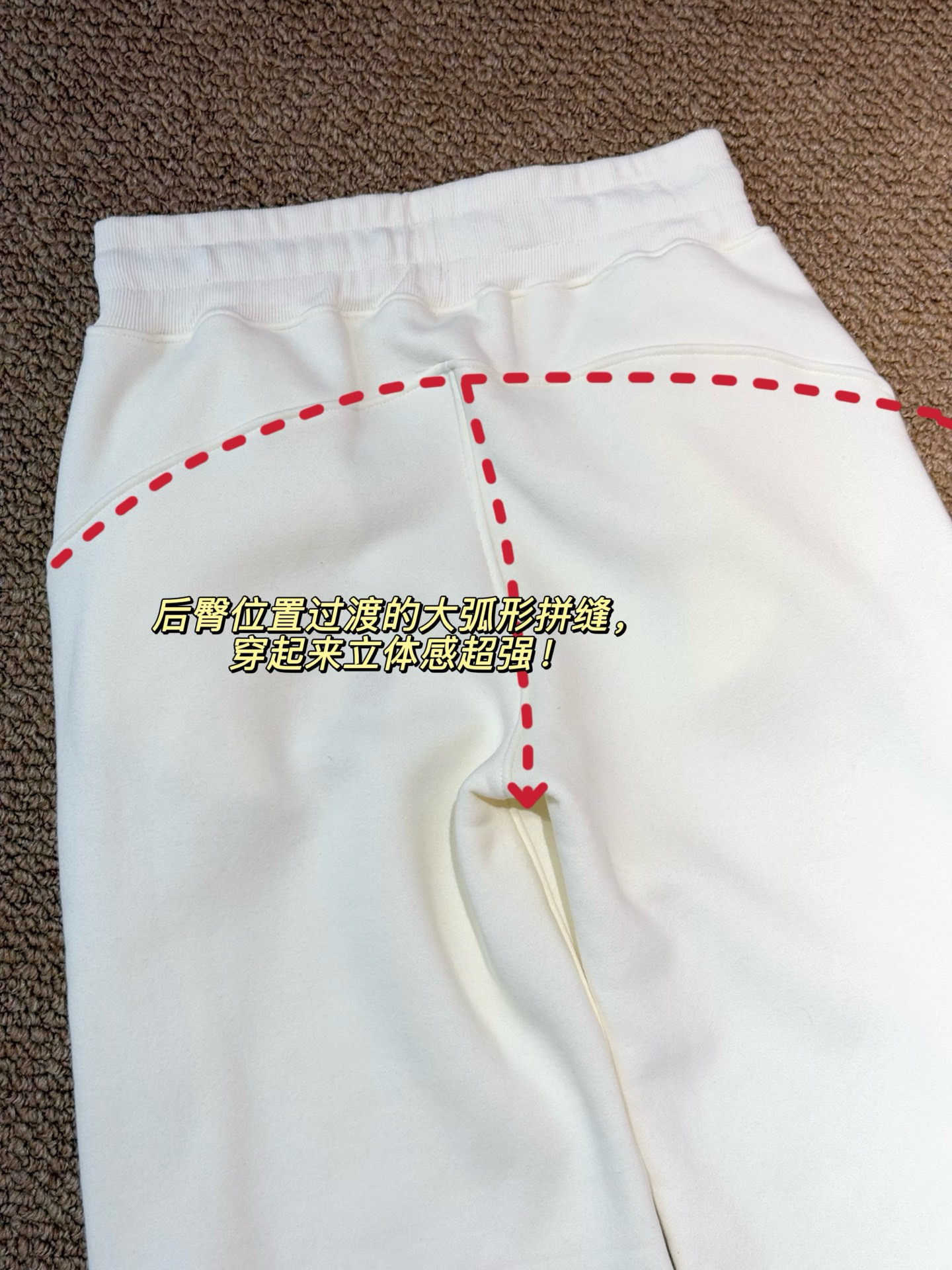 爆款系列高腰分加绒卫裤,裤管宽松立体拼裁,视觉收窄显瘦!不会有肥肥大大的感觉,上腿属于显瘦又有造型感的那种,臀腿比例对梨形、苹果型身材、H型身材都很友好~