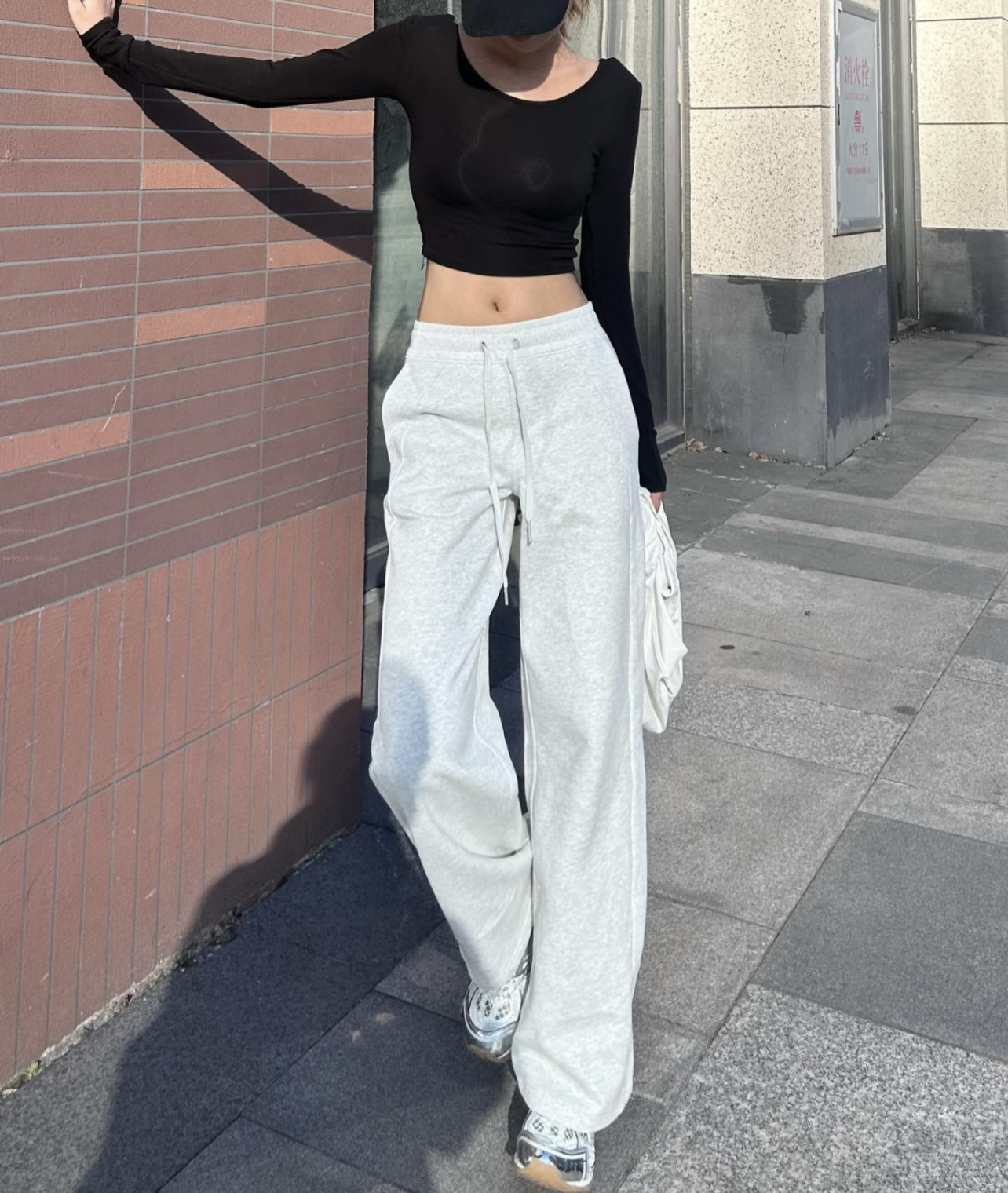 经典高腰阔腿休闲裤型,裤管松量游刃有余,从大腿到脚口很宽裕,修饰腿型不显臀,舒适好穿还特别藏肉!裤长到脚面,更显腿长!日常搭配完全不用费心思,适配度满分!