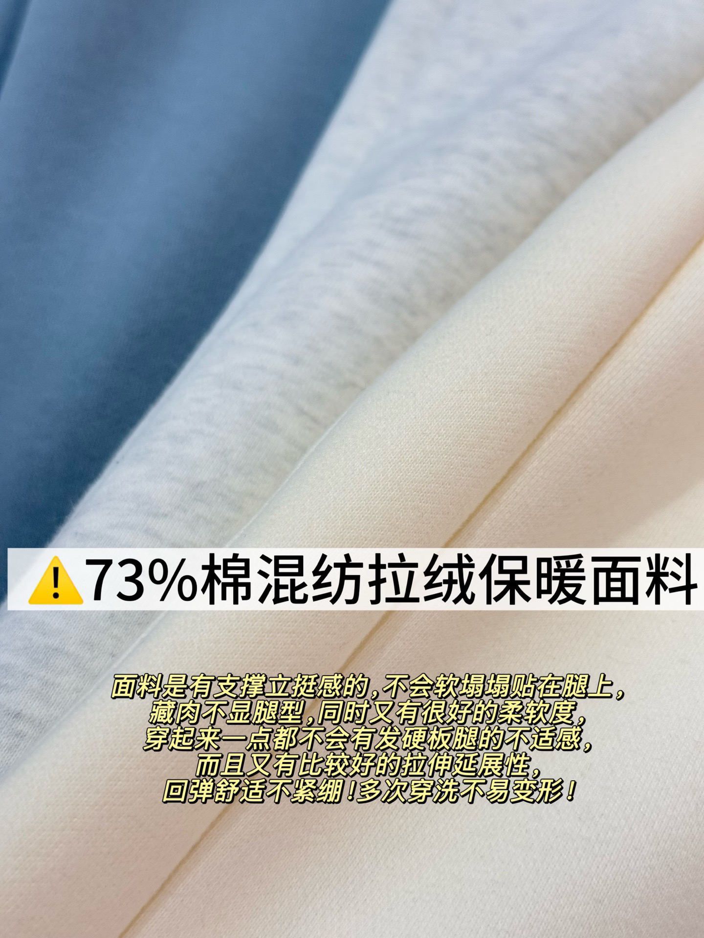 这款运动裤采用拉绒面料,压风保暖,比很多棉裤都暖绵软亲肤,垂坠挺括有型!抗皱抗起球,久坐打滚都不带上褶的!!!
