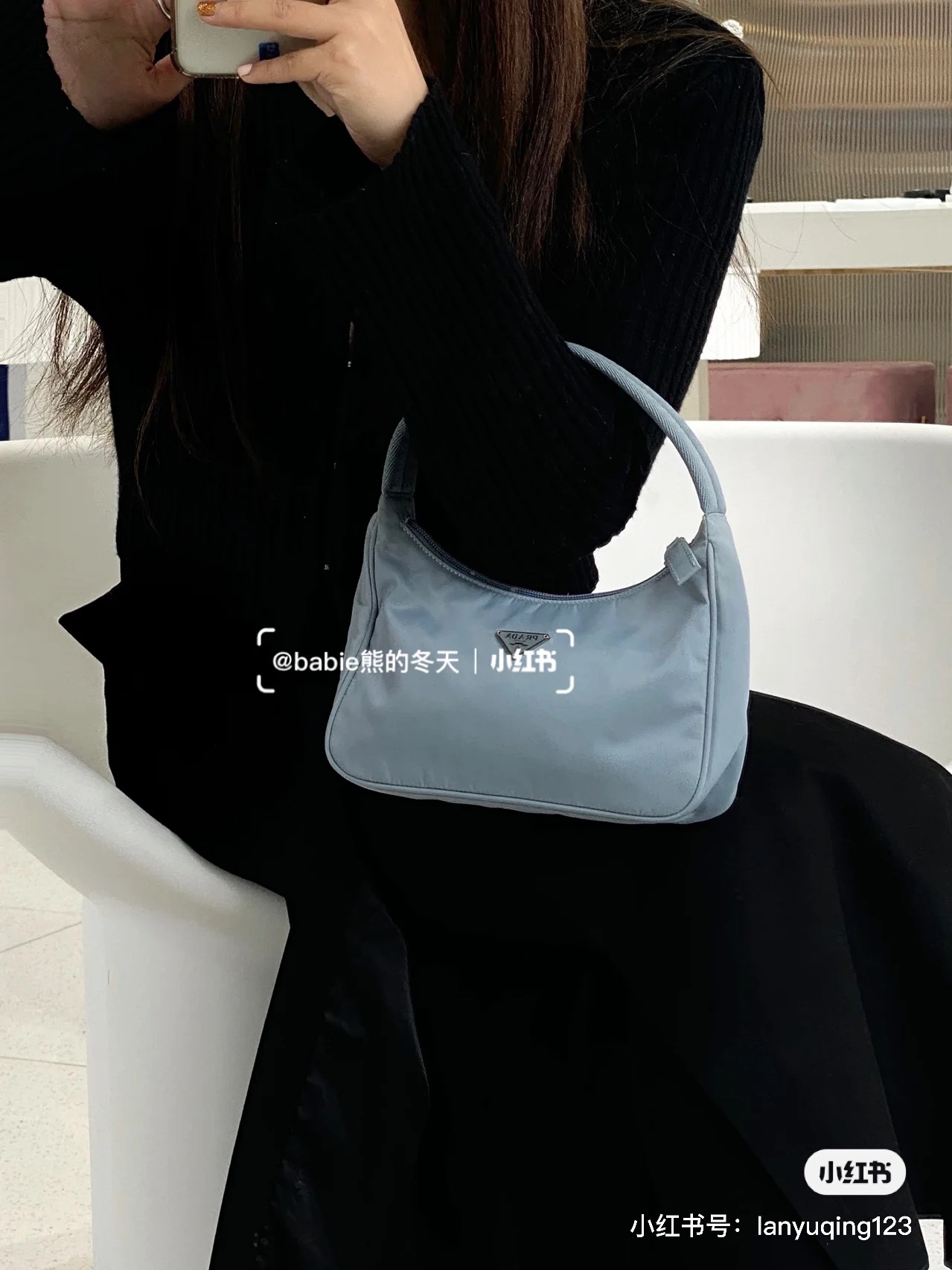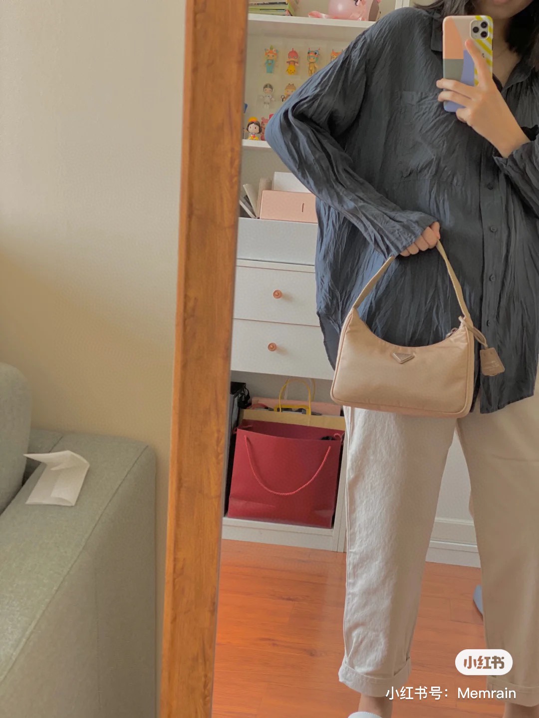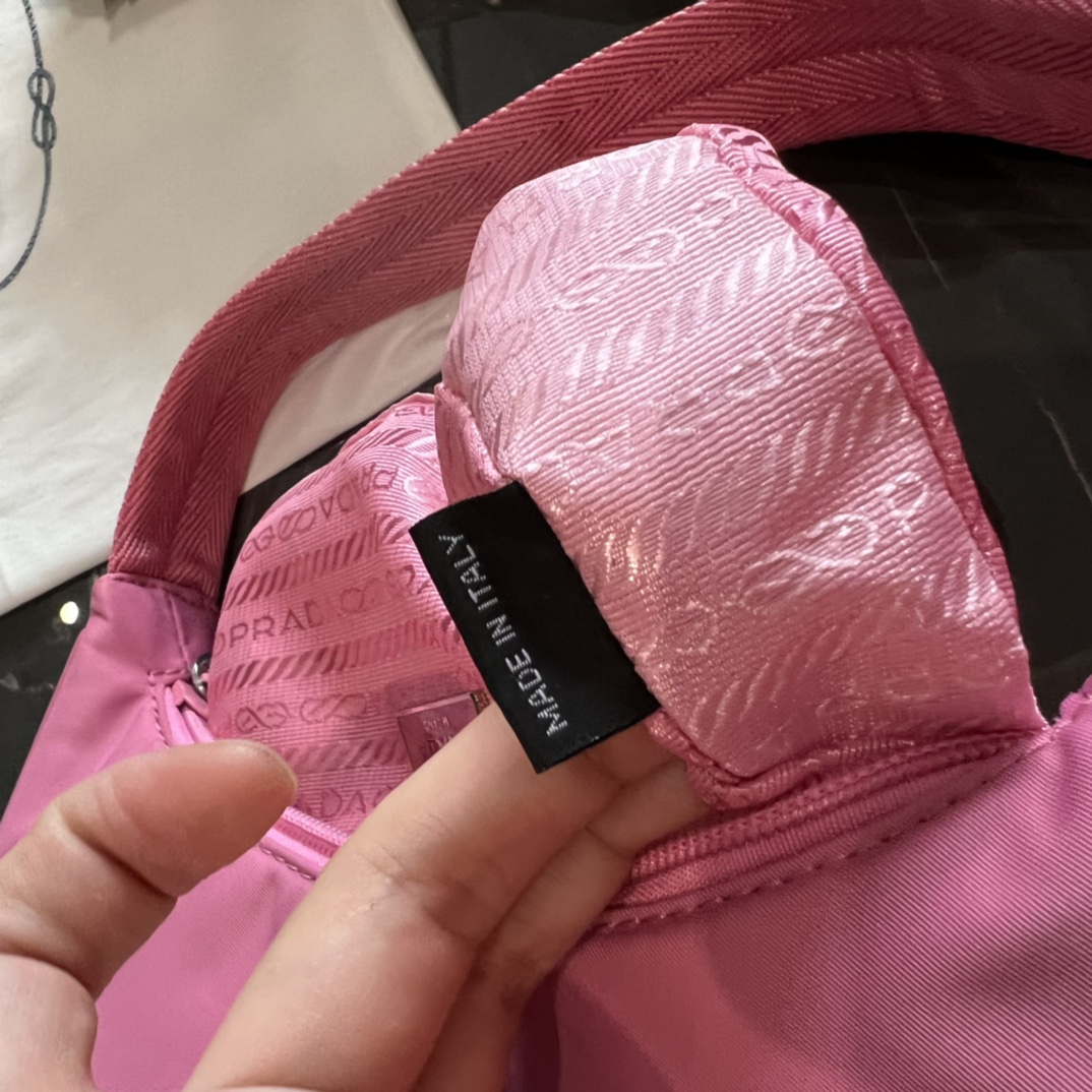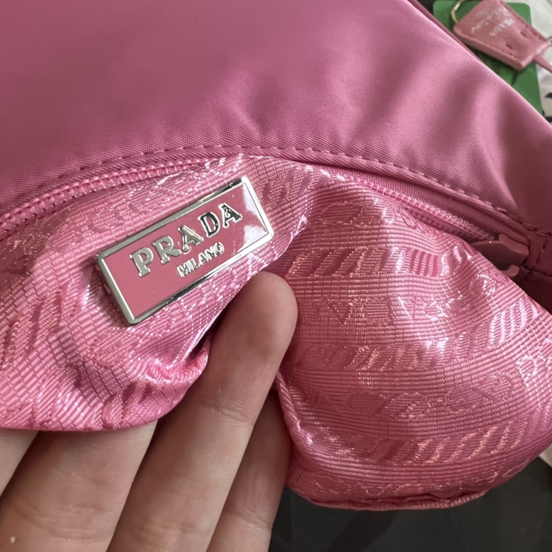 辅料细节全部同步柜子!【复刻吊牌】‼️之前被各大明星街拍带火,Prada官方就复刻推出了 PradaReEdition系列。款式跟vintage基本上一模一样,只是新款Hobo款新增加了PradaRe-Ediotion的吊牌。