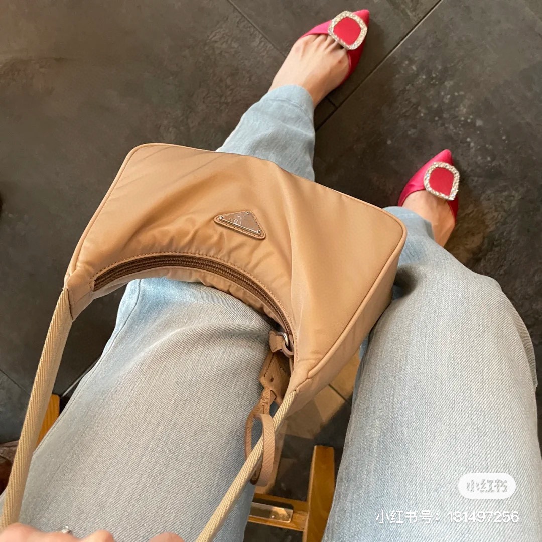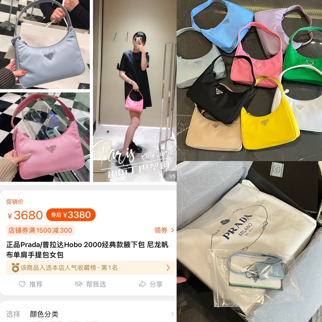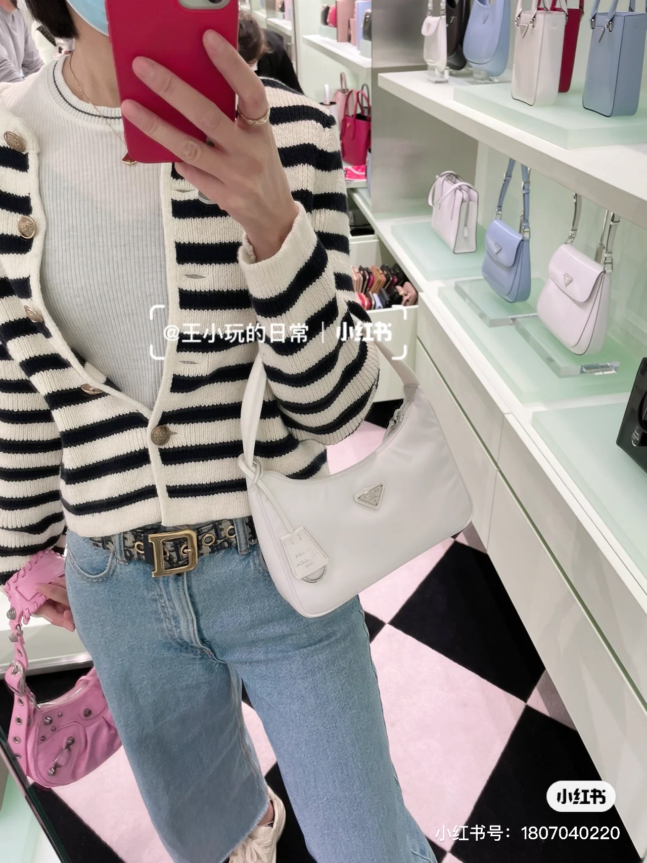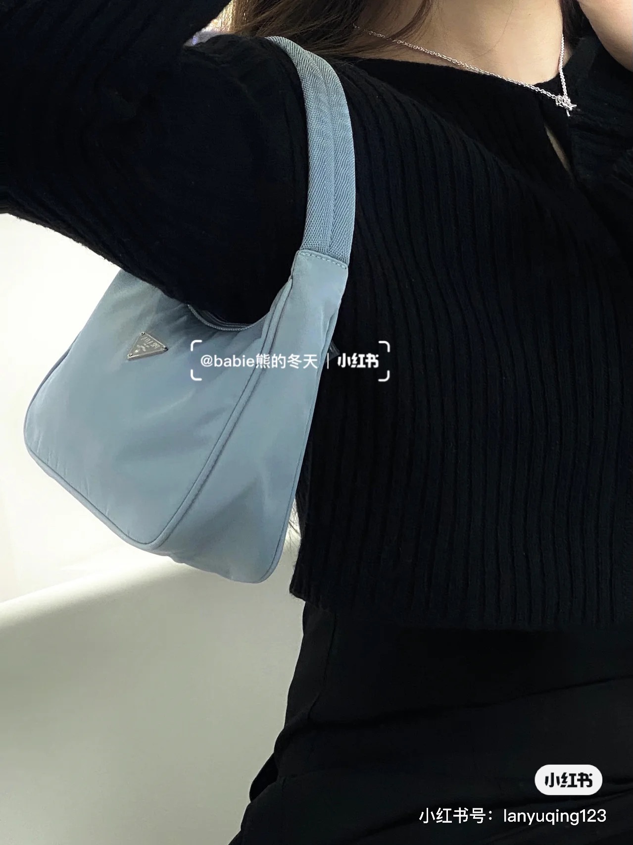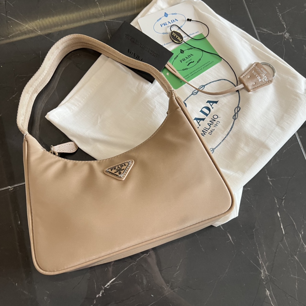 辅料细节全部同步柜子!【复刻吊牌】‼️之前被各大明星街拍带火,Prada官方就复刻推出了 PradaReEdition系列。款式跟vintage基本上一模一样,只是新款Hobo款新增加了PradaRe-Ediotion的吊牌。