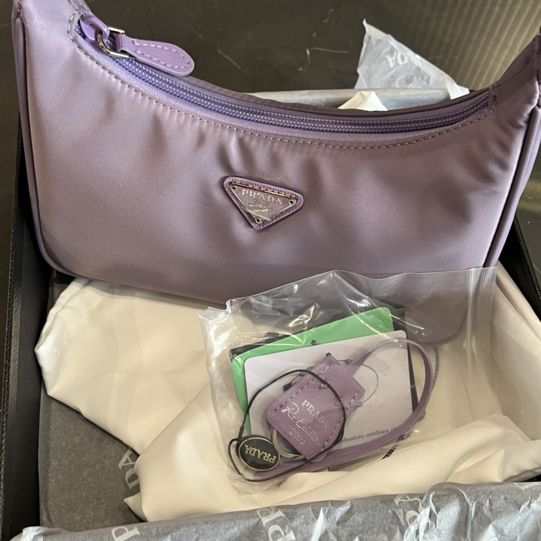 PradaHobo2000腋下包限定星黛露紫 官方的叫法是藤萝紫,饱和度很低的浅紫色,星黛露同款紫色除了可能容易脏以外一切都很完美 Hobo也是我很推荐的一个包又轻又百搭容量也很,喜欢紫色的姐妹可以买起来了