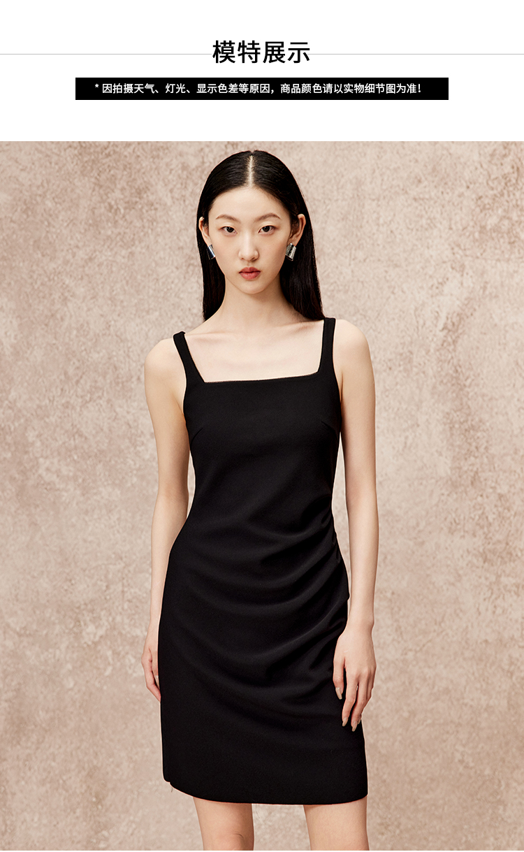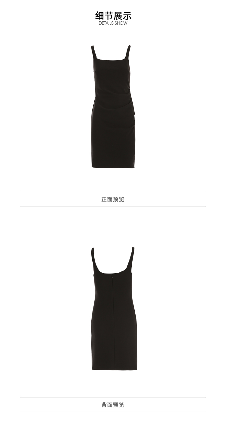 VIMAGE纬漫纪时尚露背基础款简约方领宽吊带黑色连衣裙秋新款V2207806