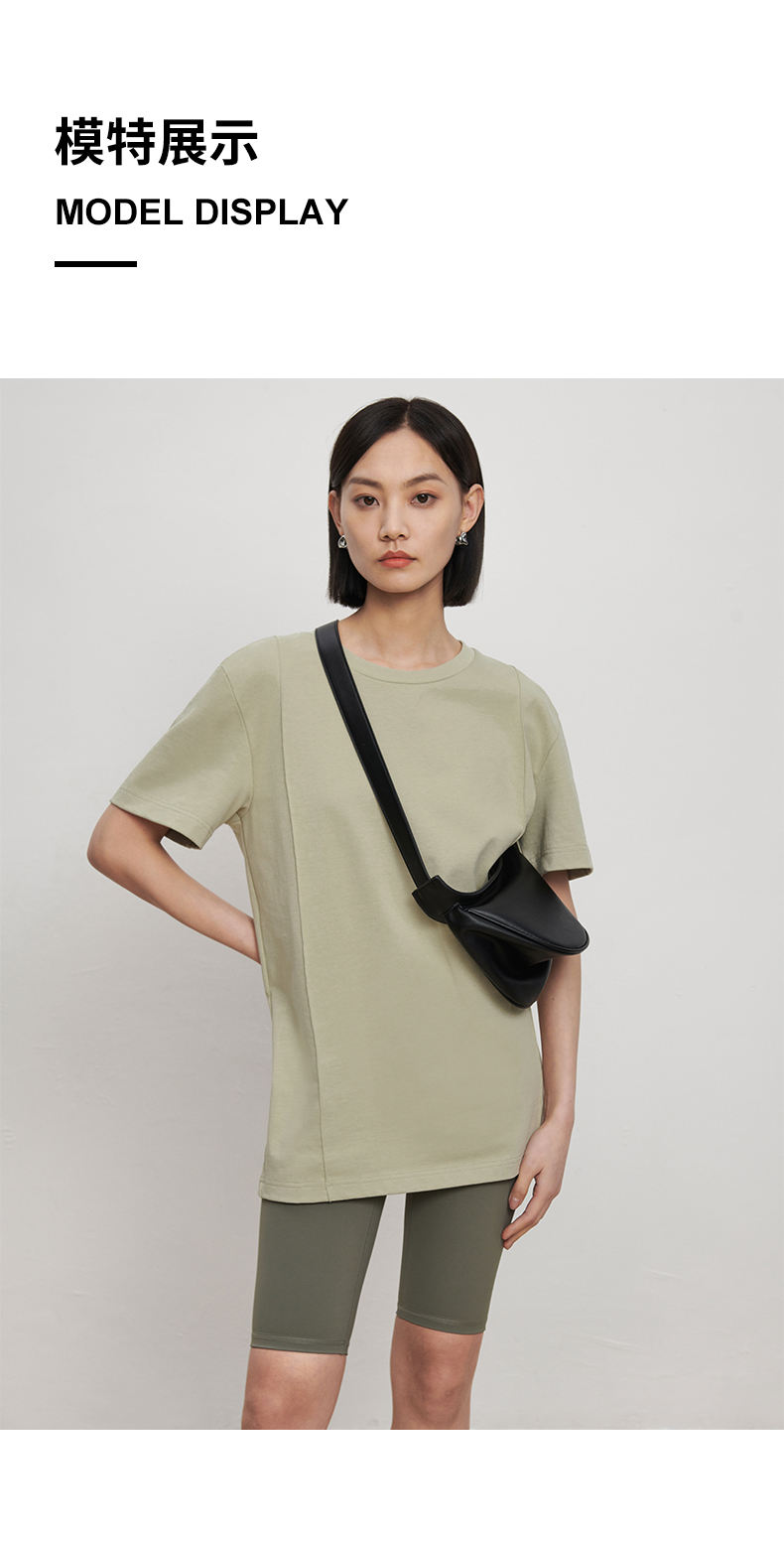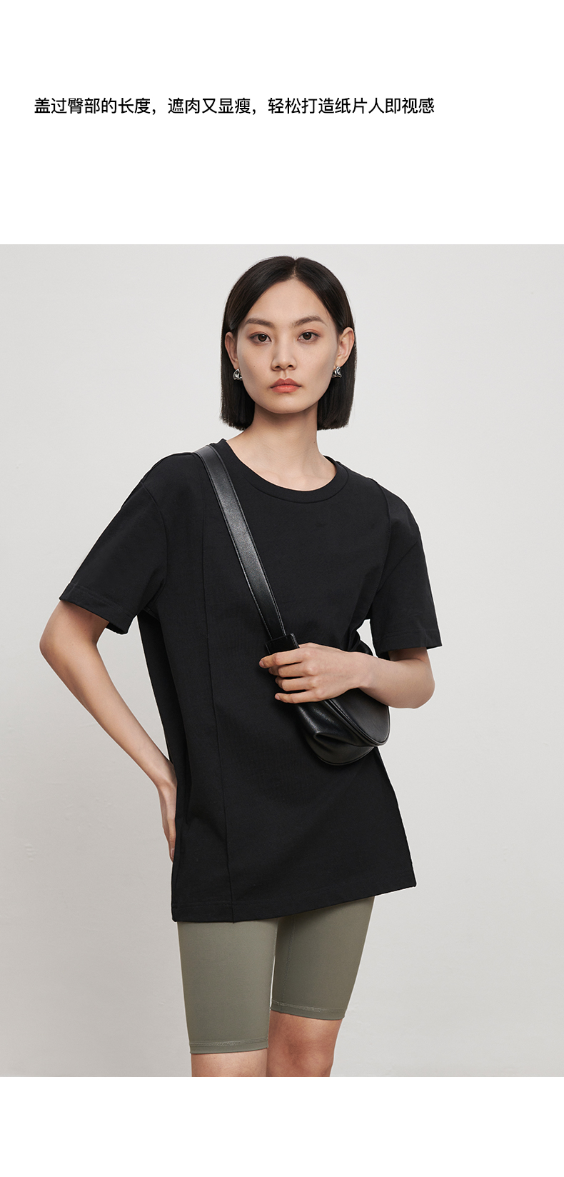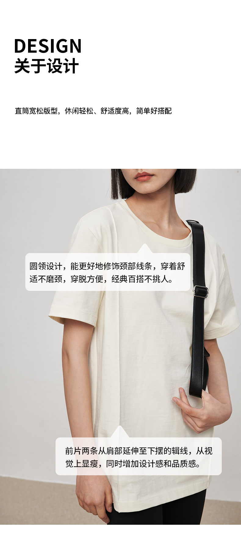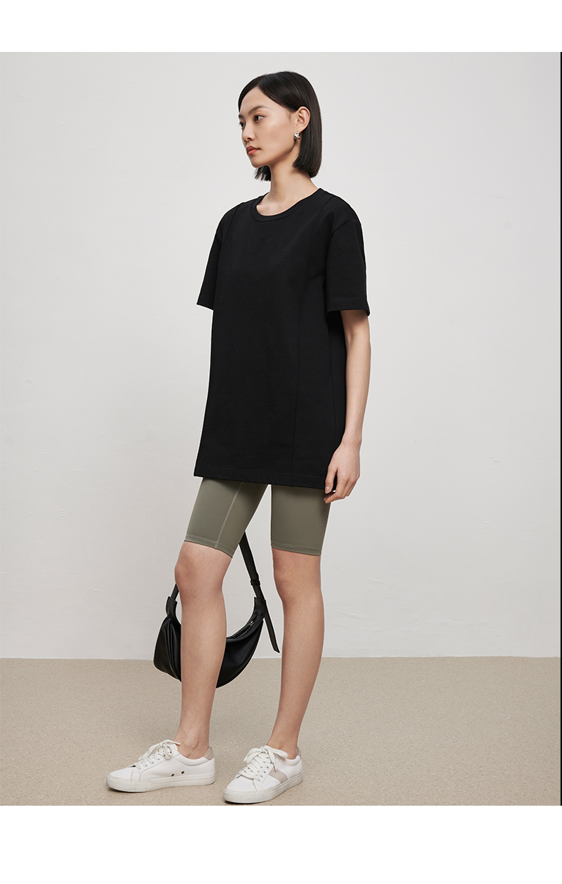 IN AND ON53243夏短袖女纯色t恤100%长绒棉宽松休闲廓形纸片人圆领上衣