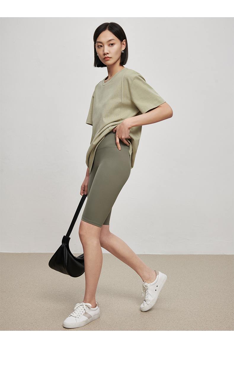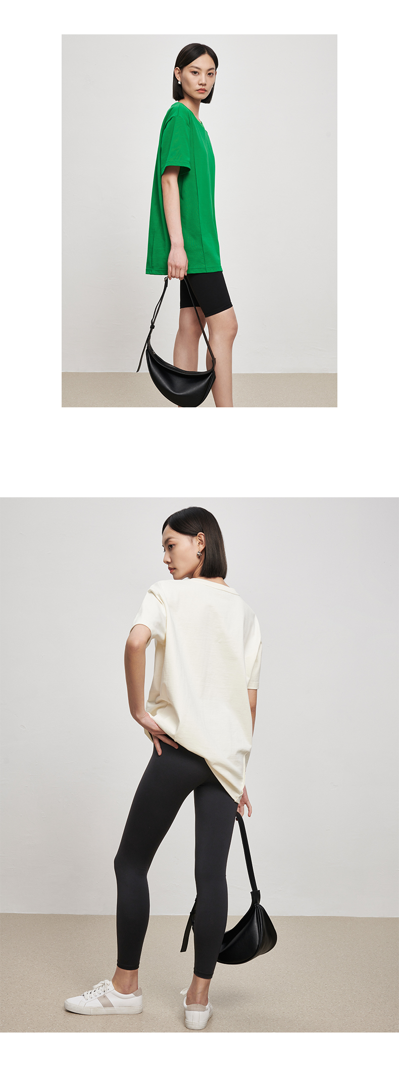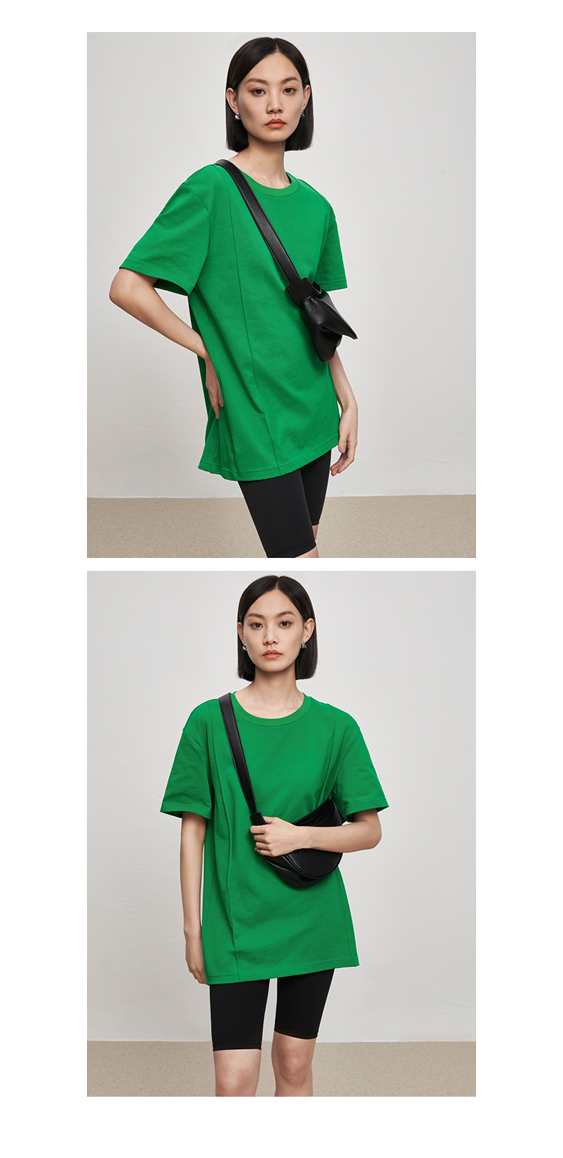 IN AND ON53243夏短袖女纯色t恤100%长绒棉宽松休闲廓形纸片人圆领上衣