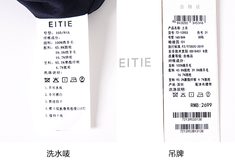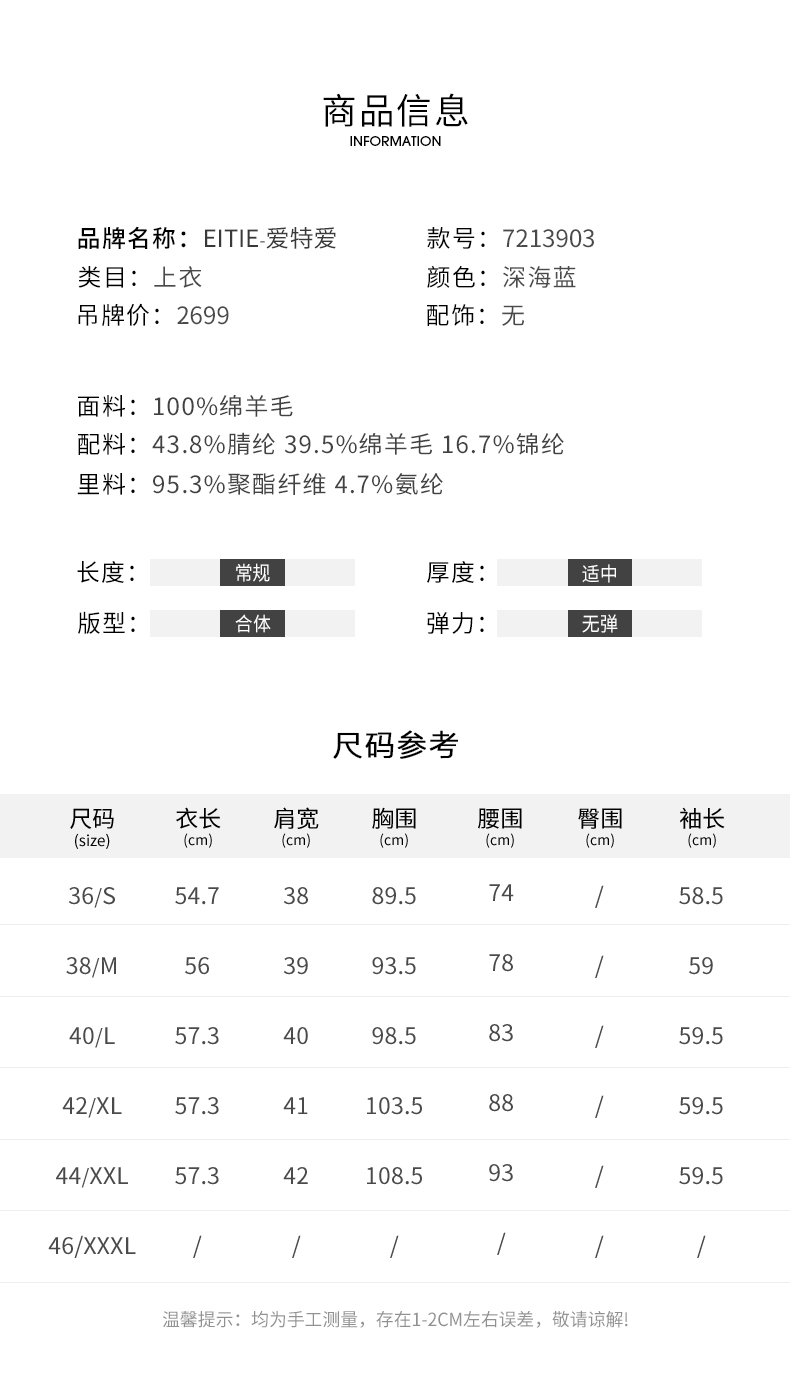 EITIE爱特爱冬冬新款100%,棉羊毛消瘦大气纯色小上衣7213903