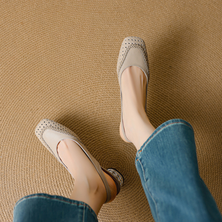 【预售5天】真皮镂空透气洞洞鞋女新款法式绝美高级软底软面舒适凉单鞋NJMK&K1623