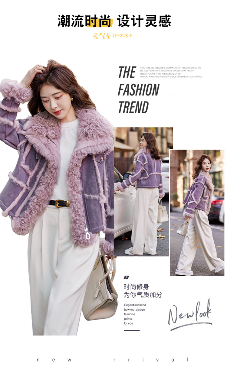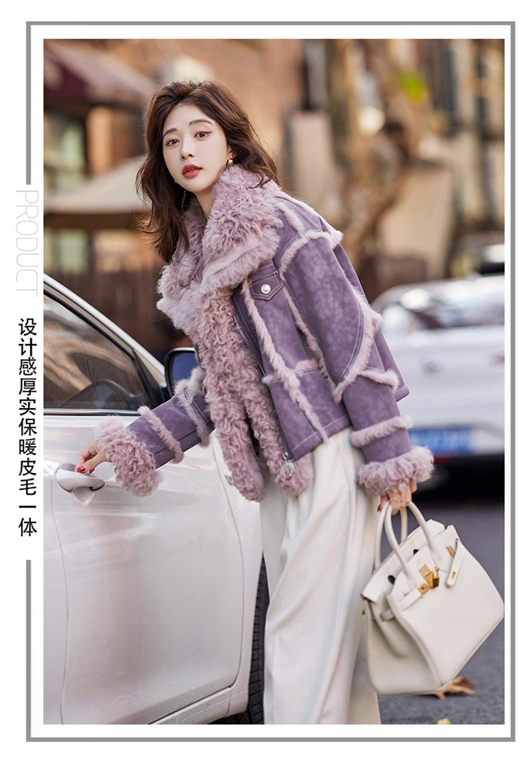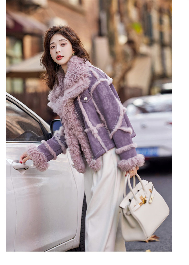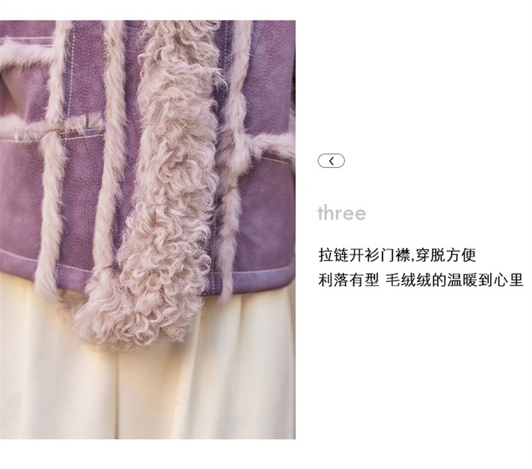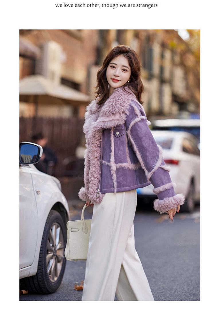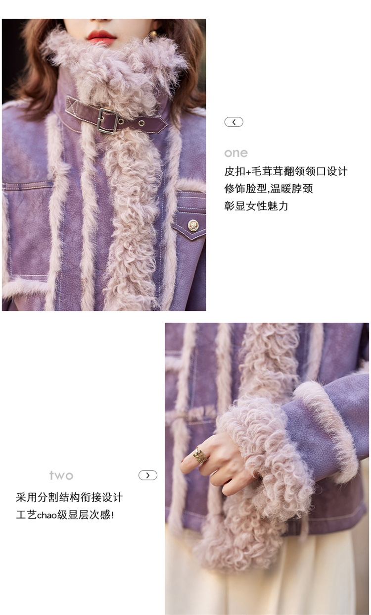 紫色高级感皮毛一体外套,小个子设计毛茸茸上衣QIANBH2338