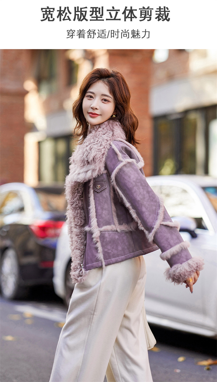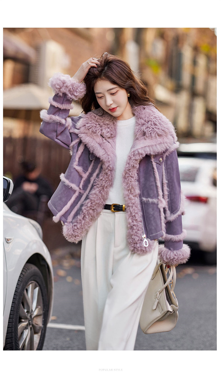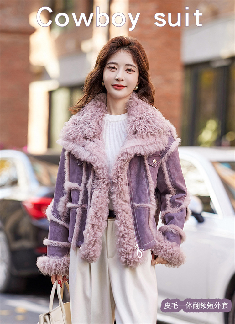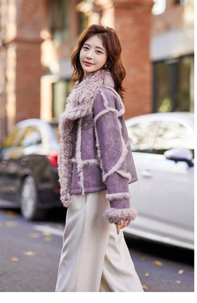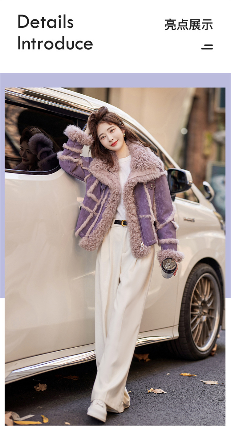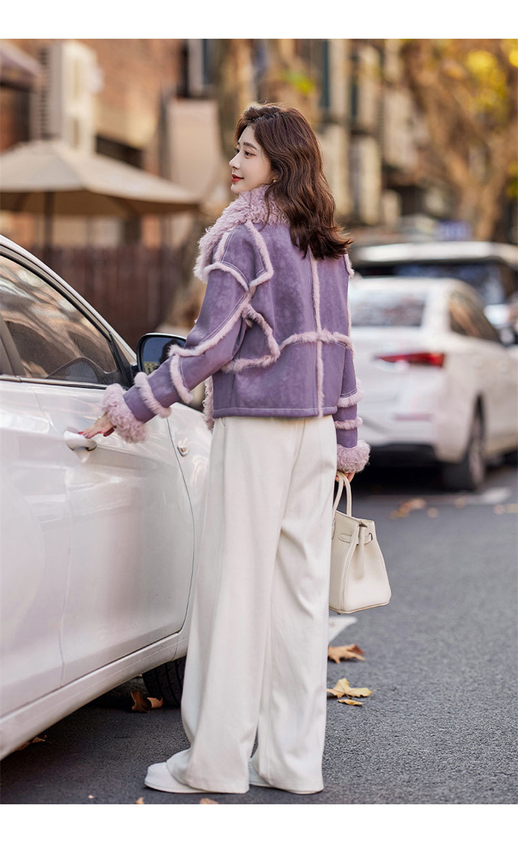 紫色高级感皮毛一体外套,小个子设计毛茸茸上衣QIANBH2338