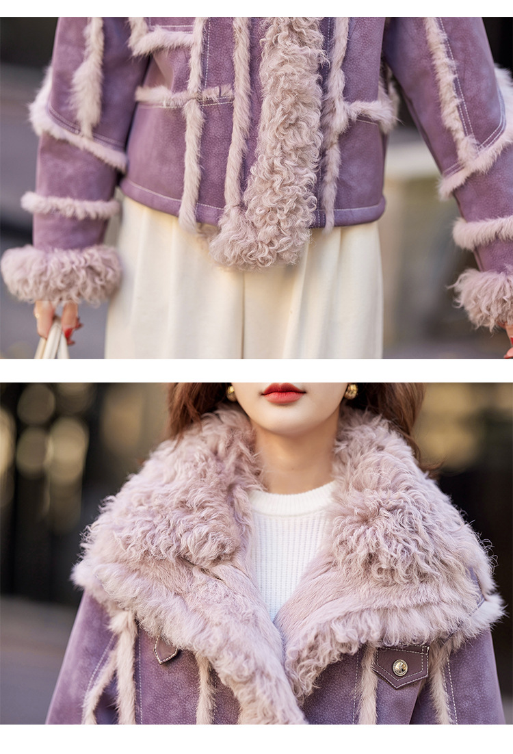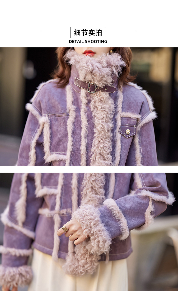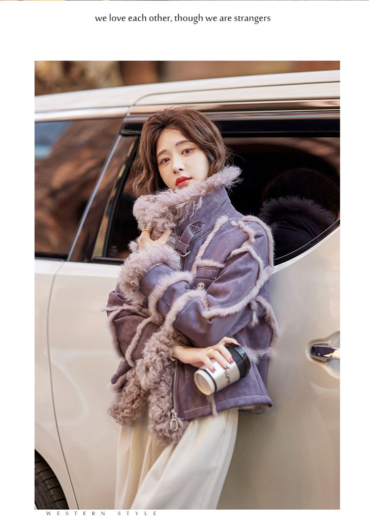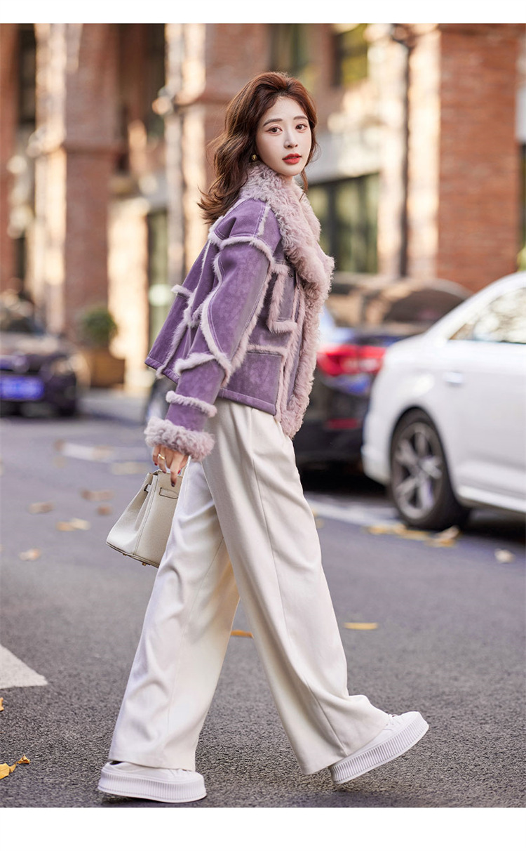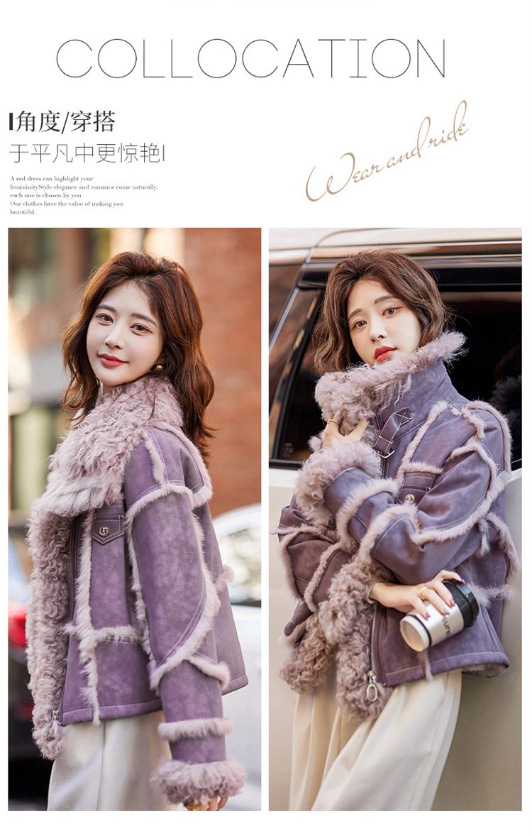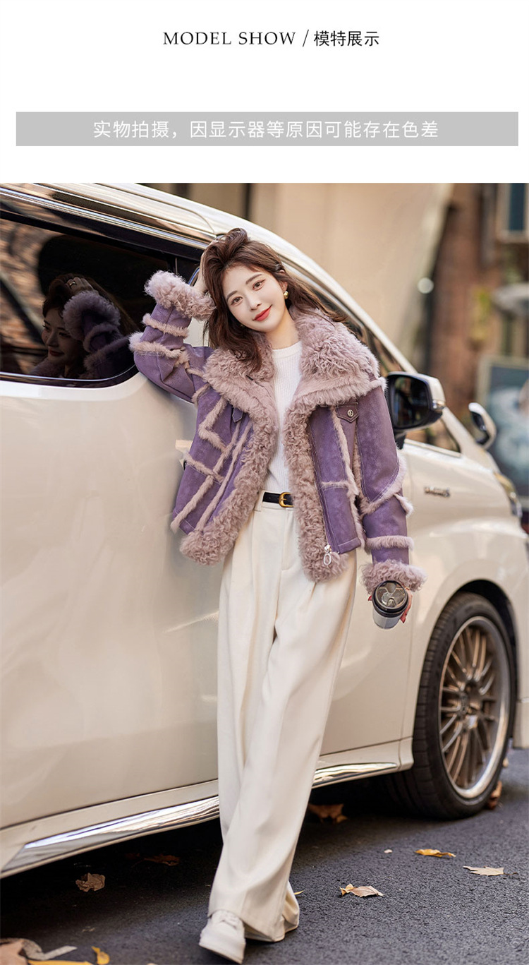 紫色高级感皮毛一体外套,小个子设计毛茸茸上衣QIANBH2338