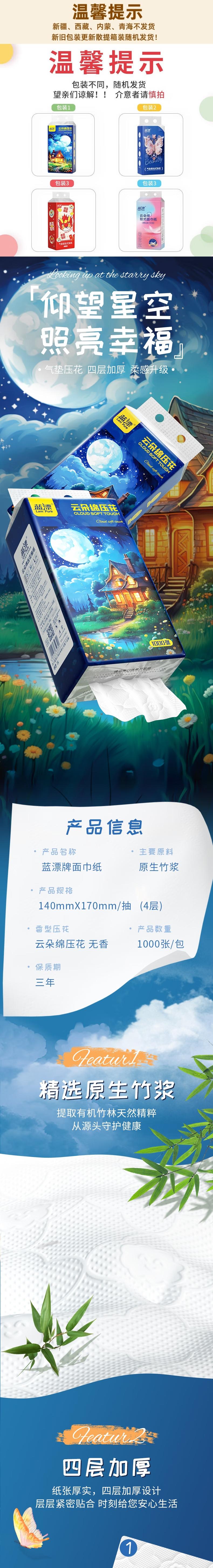 蓝漂 星空系列白色气垫挂式抽纸4层1000张*1提 LP0XK001T