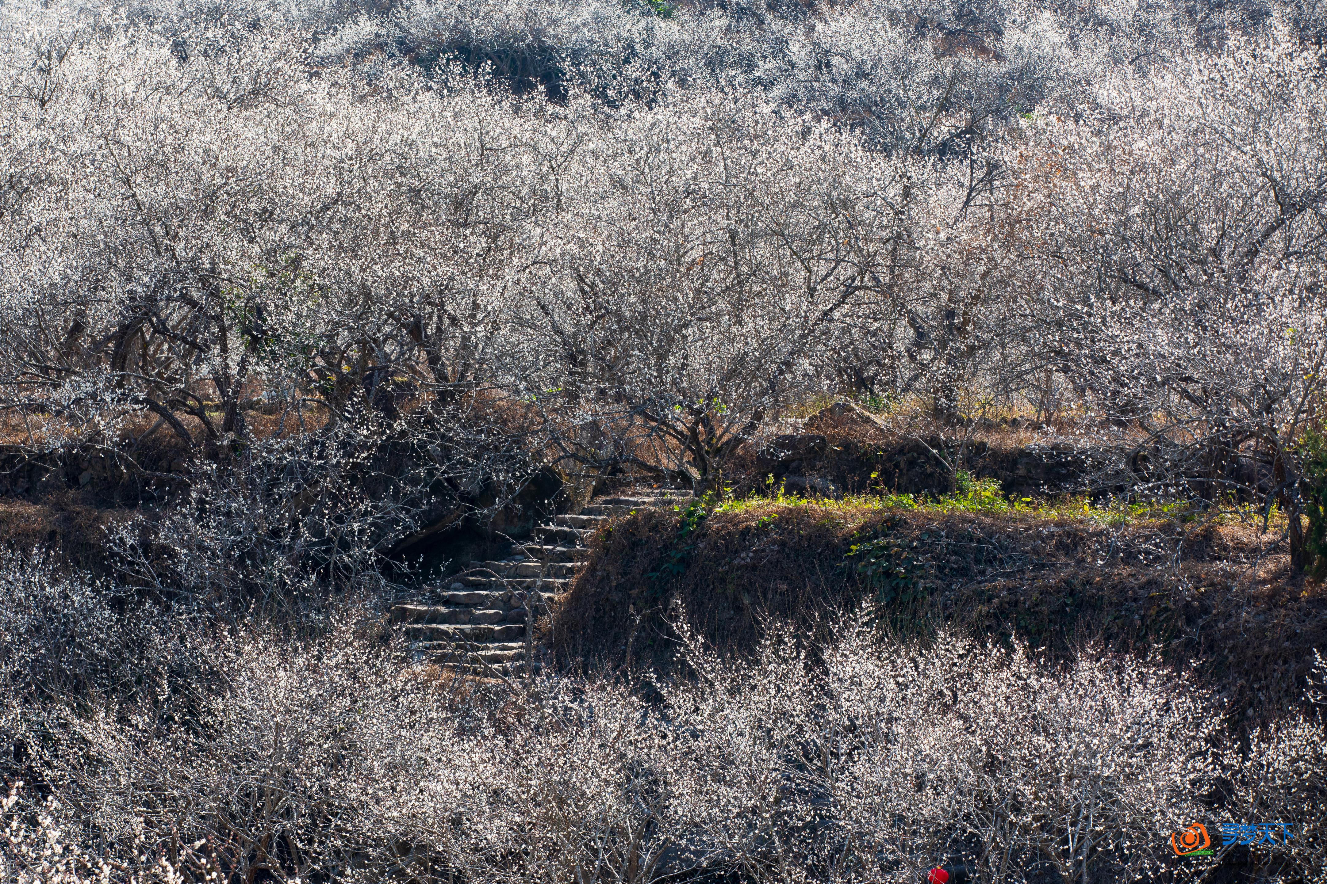 陆河的这些梅树,不像珠三角一些景区刻意人工栽种来仅供游人赏玩的,而是当地农民为了采摘青梅果卖钱而栽种,所以都长在田间地头,房前屋后,山岗山谷,溪边涧谷,满山高野都是,更具野性,观赏起来气势磅礴,独具特色。