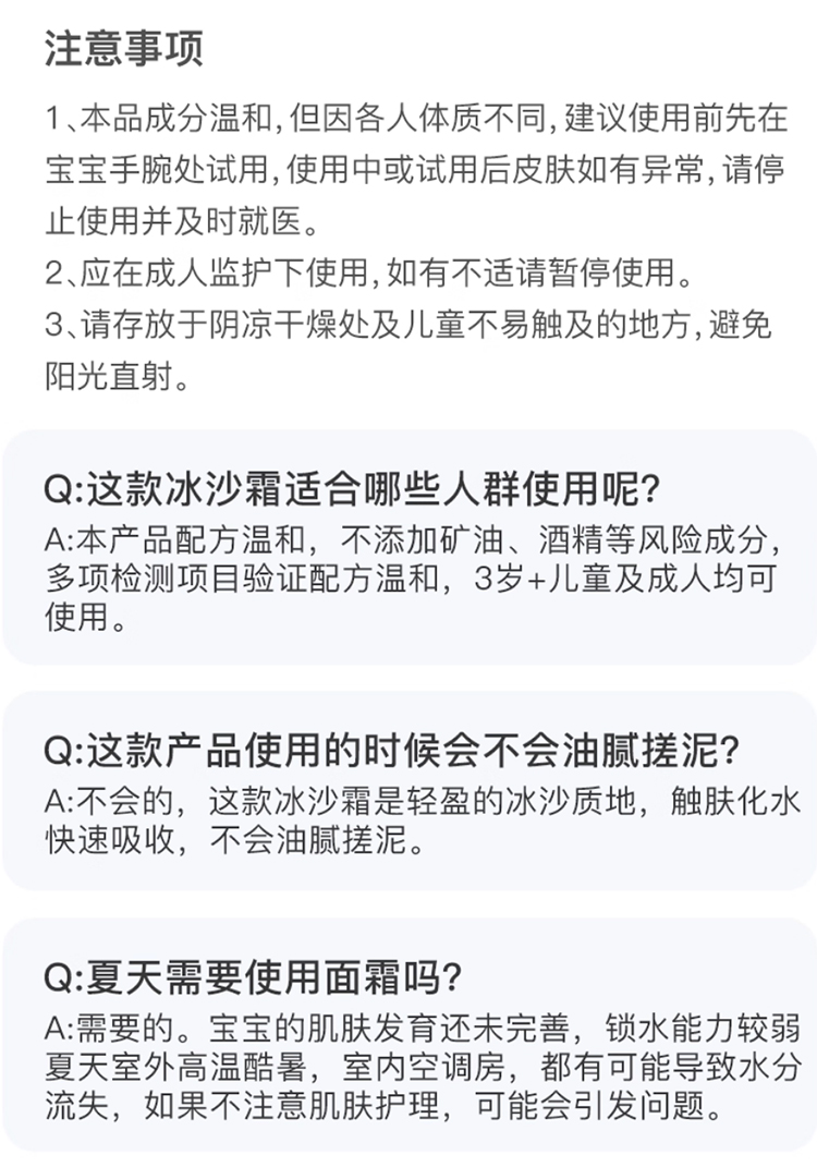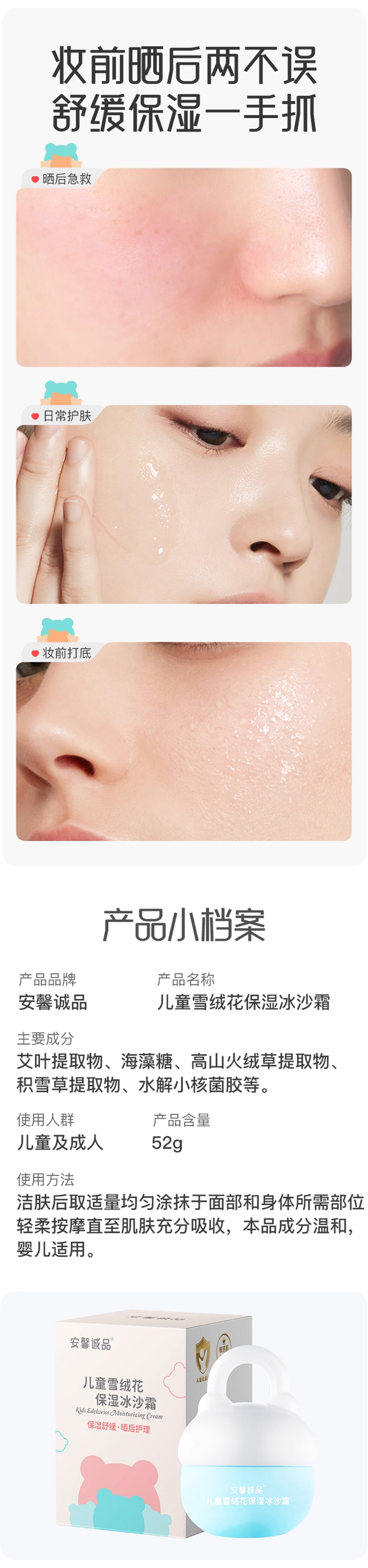安馨诚品儿童雪绒花保湿冰沙霜52g
