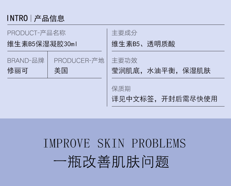 修丽可 B5维生素保湿精华 杜克透明质酸收缩毛孔补水保湿 心选到家