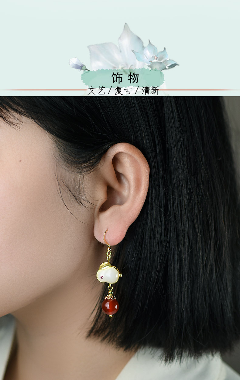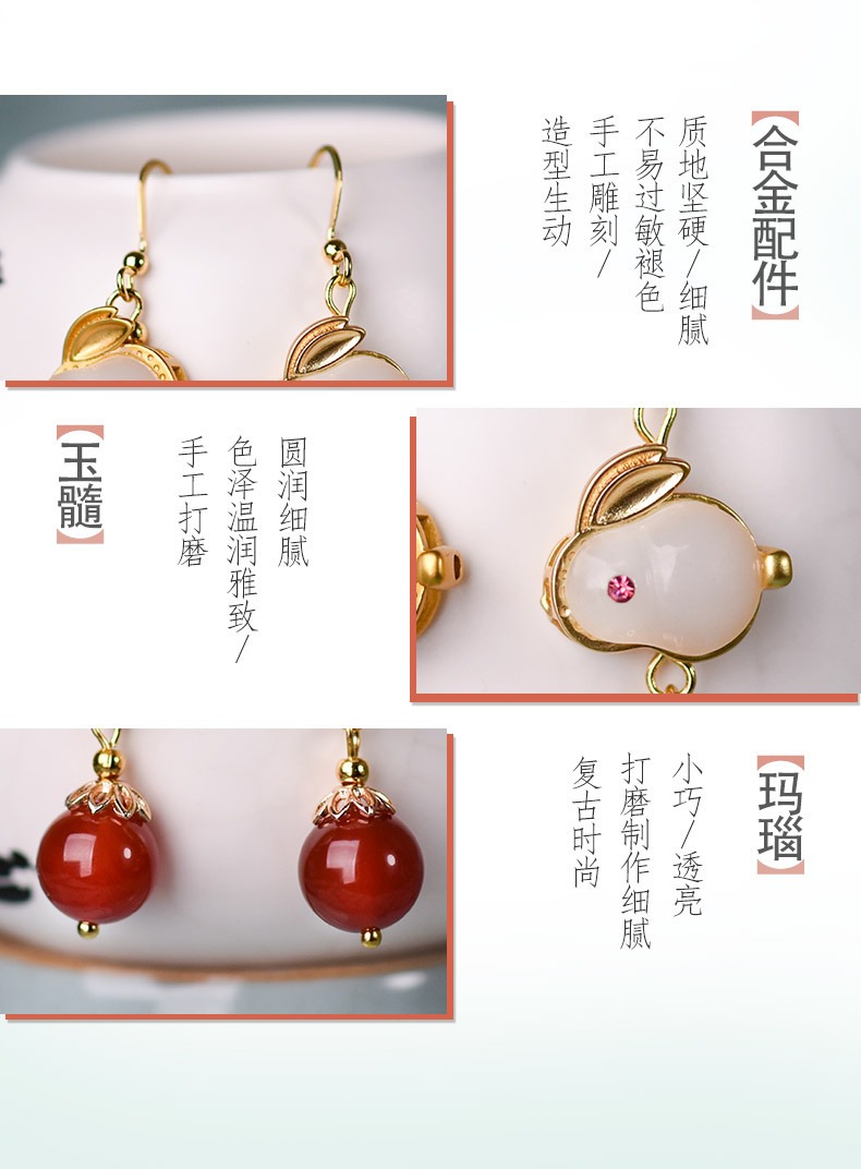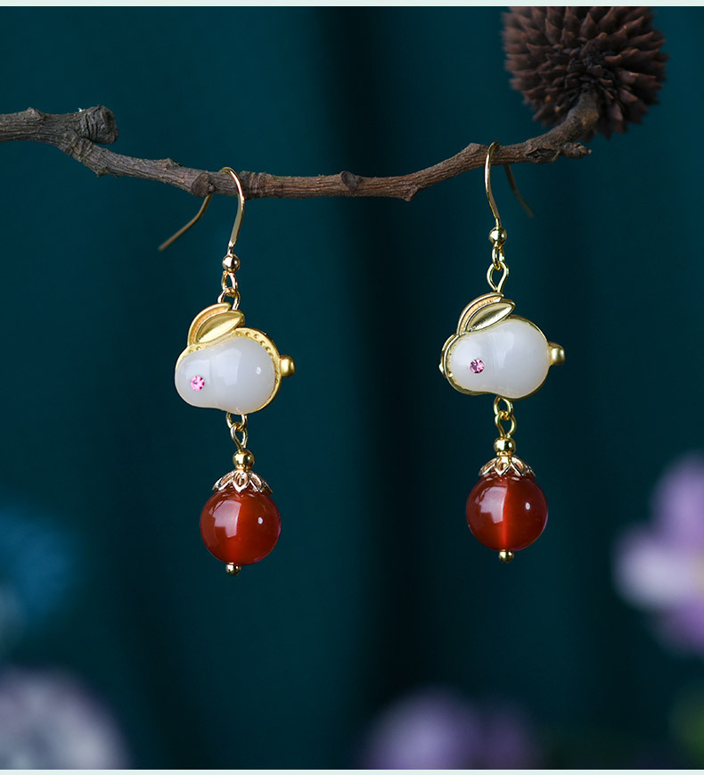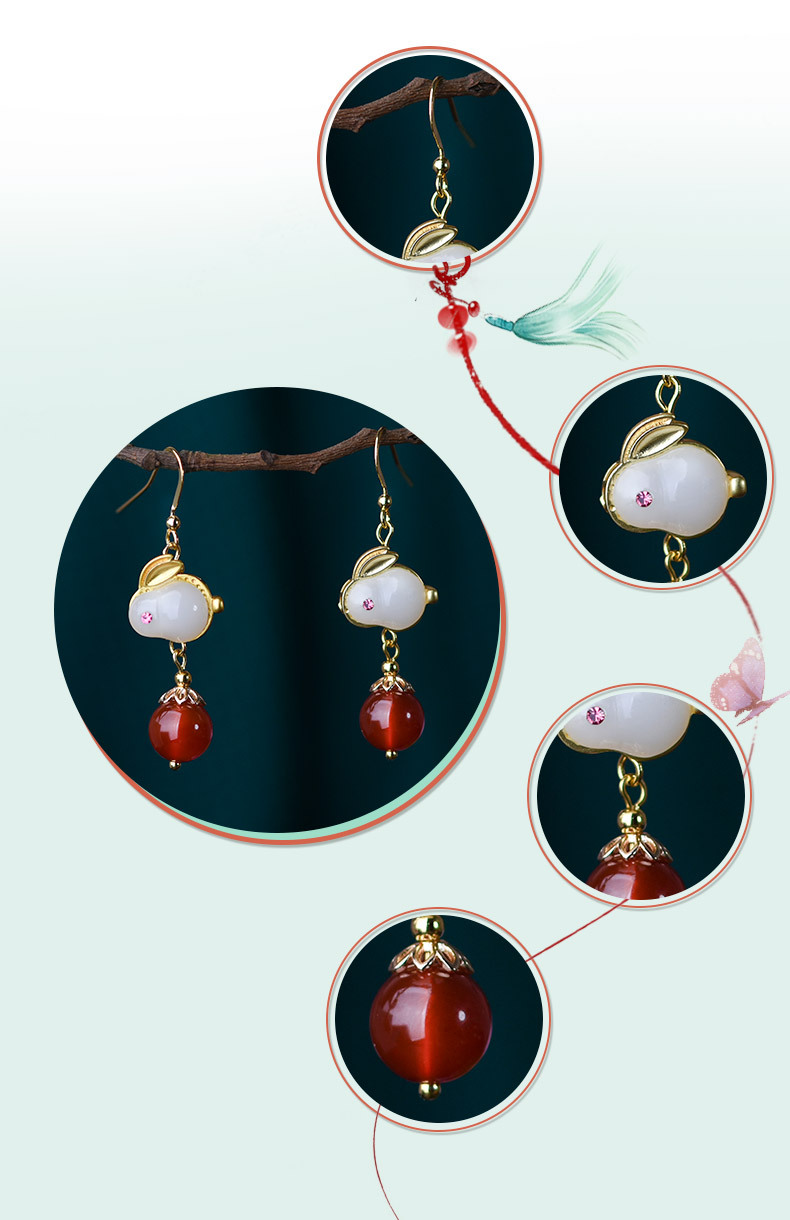 JGL-03220319可爱小兔子耳环仿玉复古国风耳坠兔年本命年耳饰无耳洞耳夹女学生