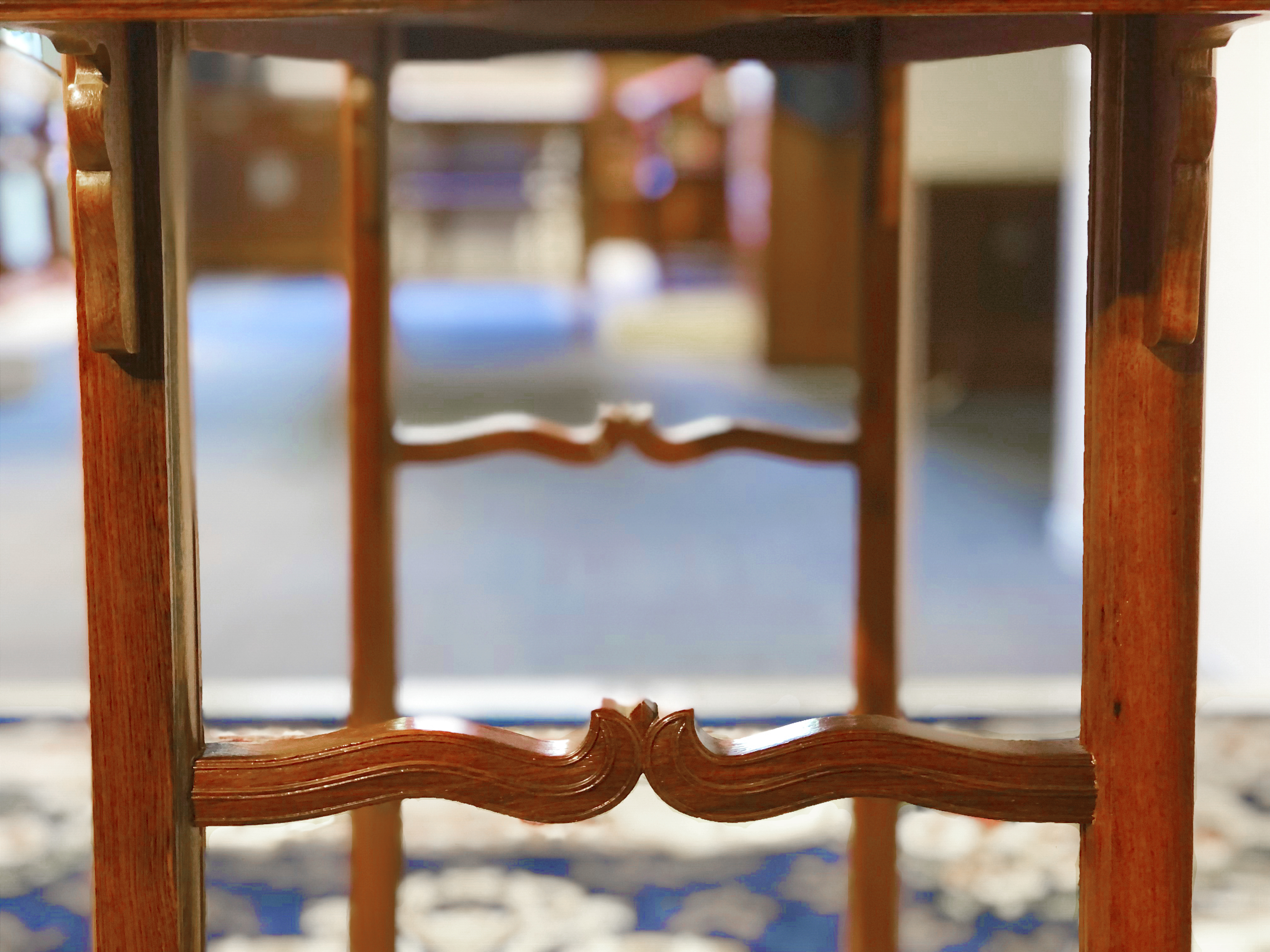 其将香线以平直和波折的方式,分别融入冰盘沿、横枨和腿足各面,在传世家具中其冰盘沿的线条层次、横枨的波折间出嫩芽都非常罕见。