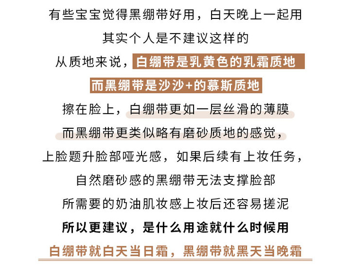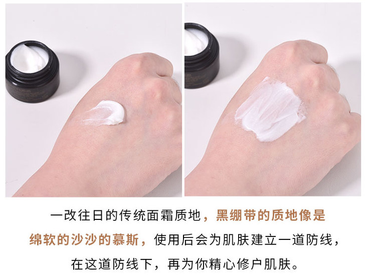质地是偏厚重的白色膏体,推开要比黑绷带和海蓝之谜经典面霜轻盈柔滑,