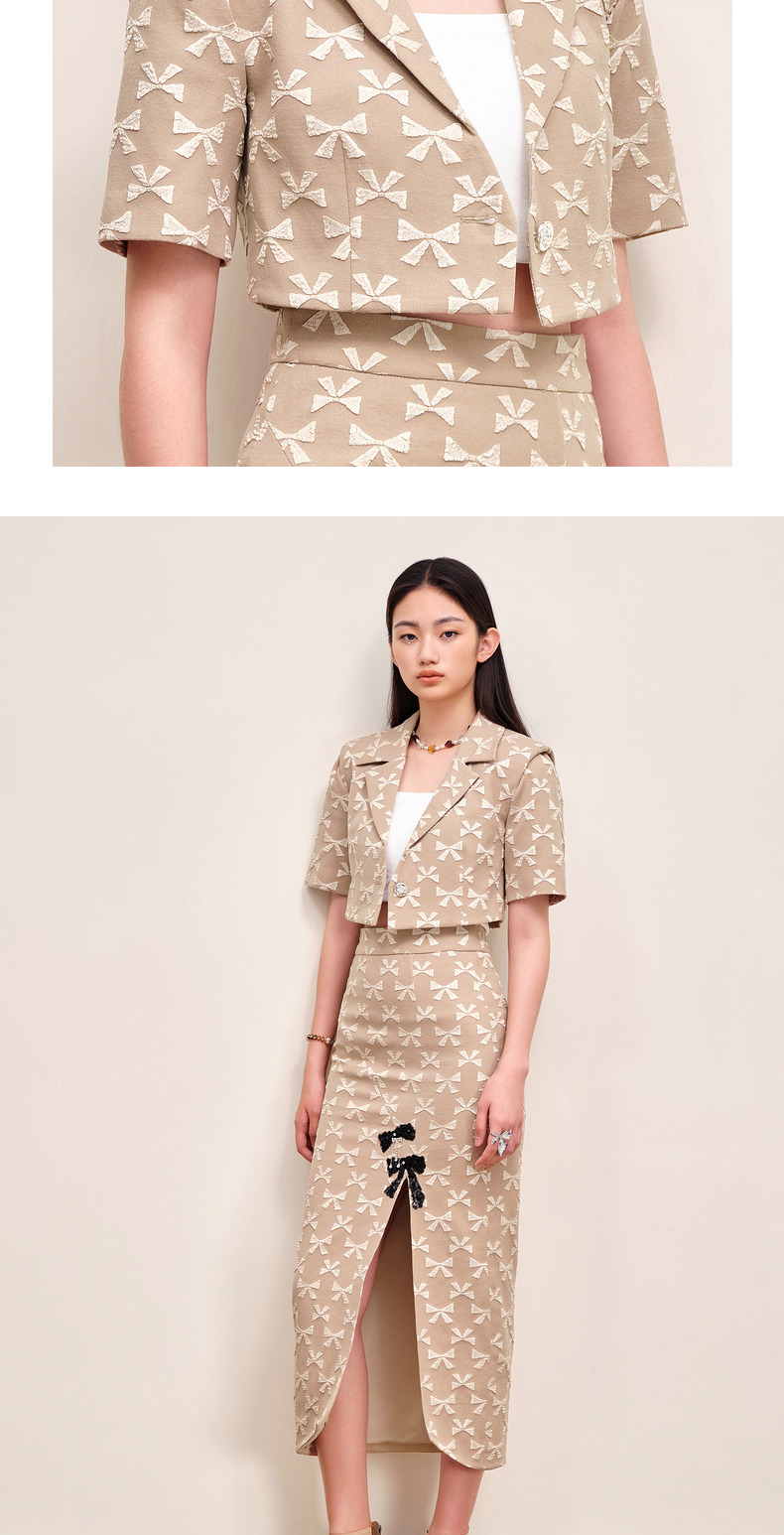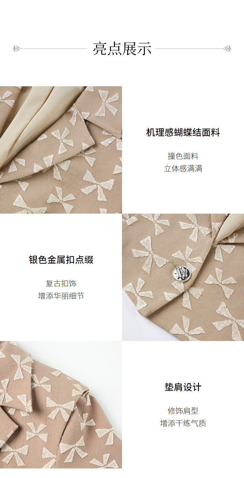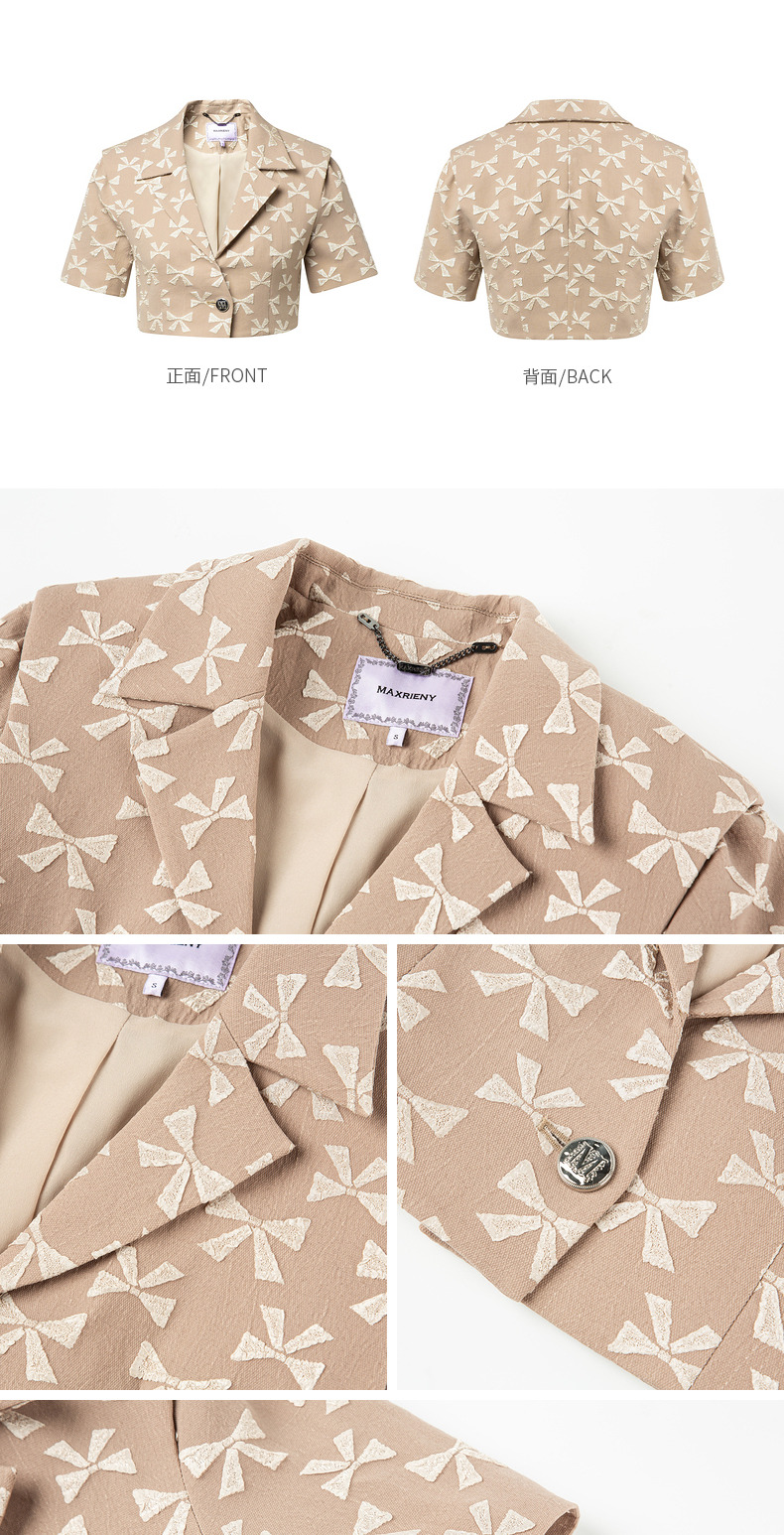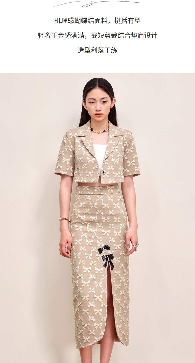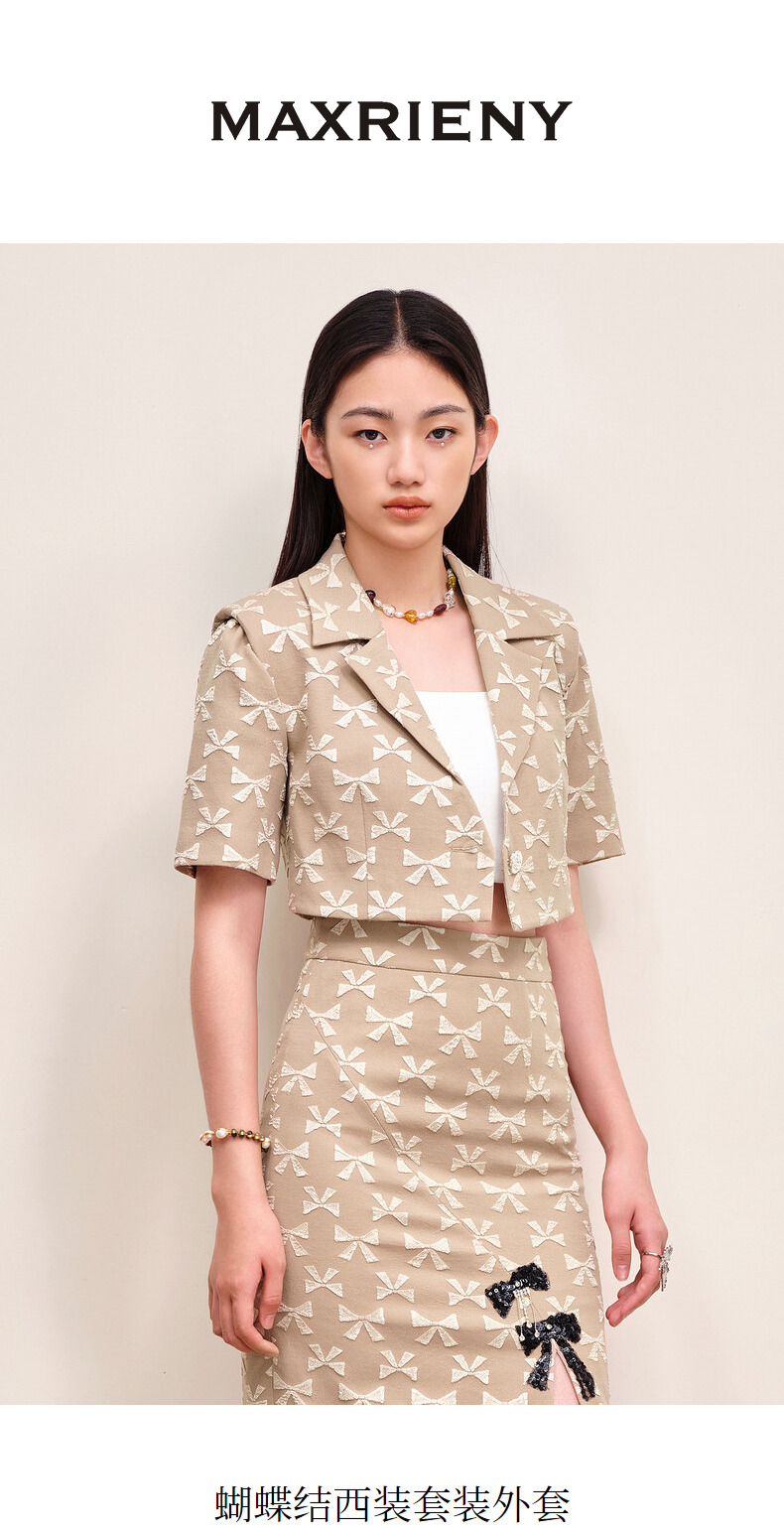 MAXRIENY名媛千金风肌理感蝴蝶结截短外套西装套装(货号:MS88JA541)