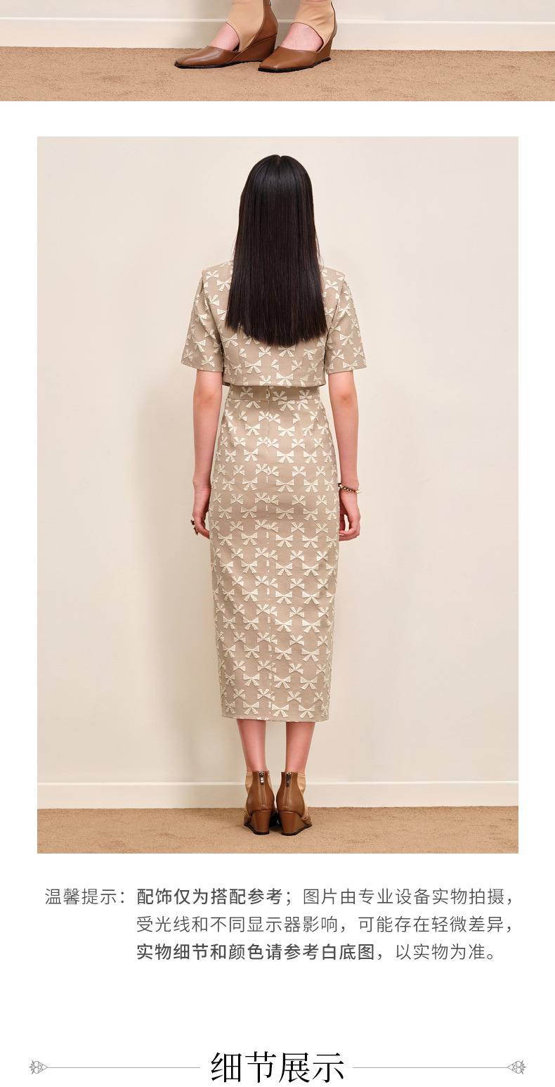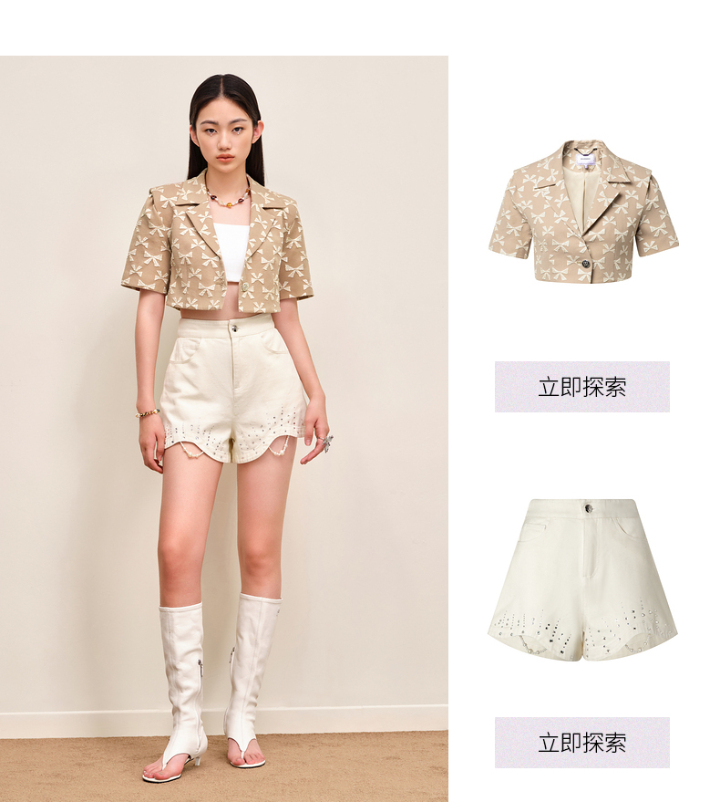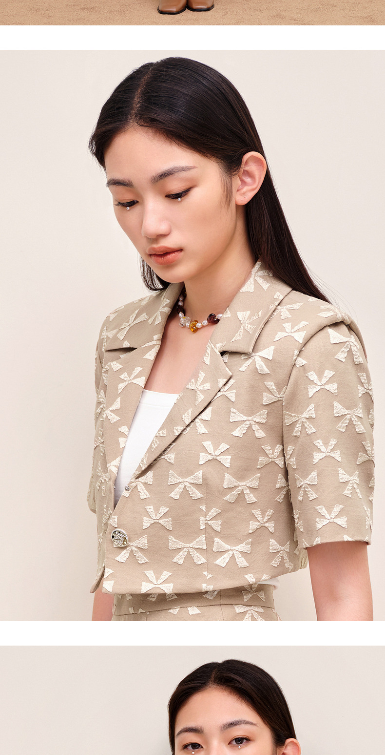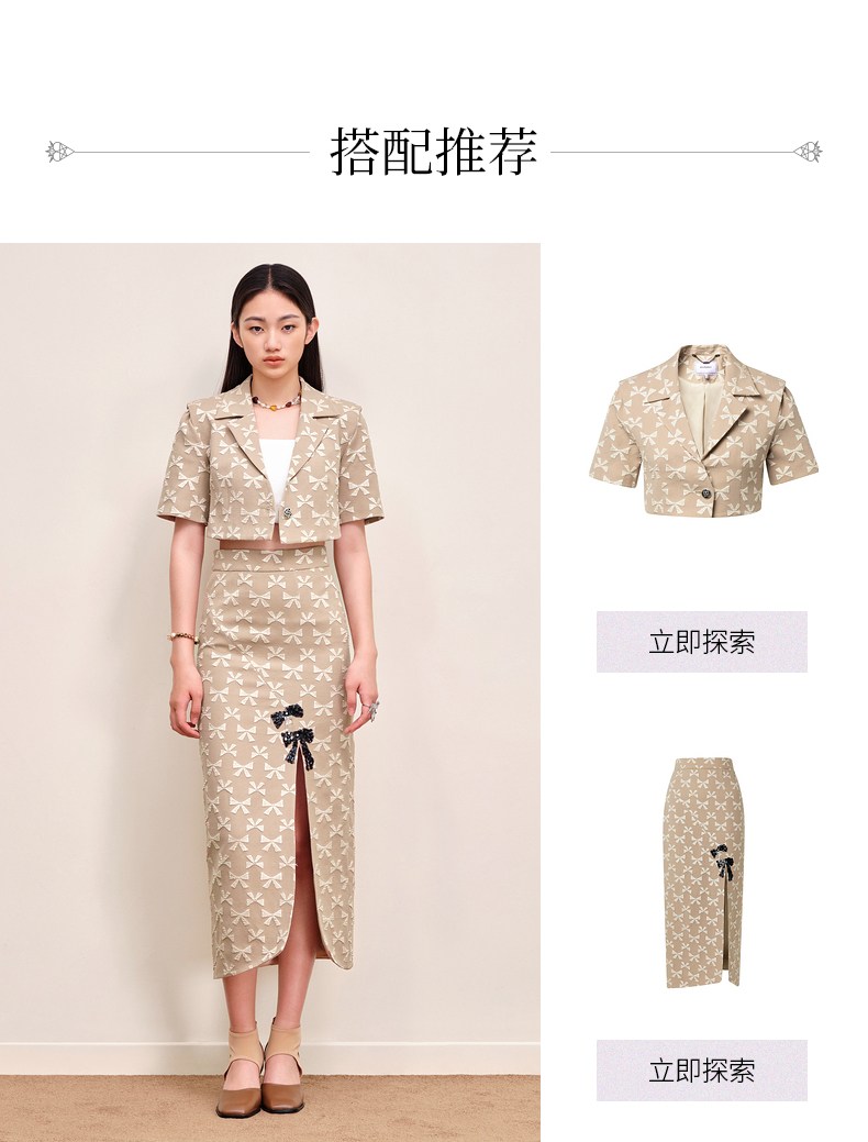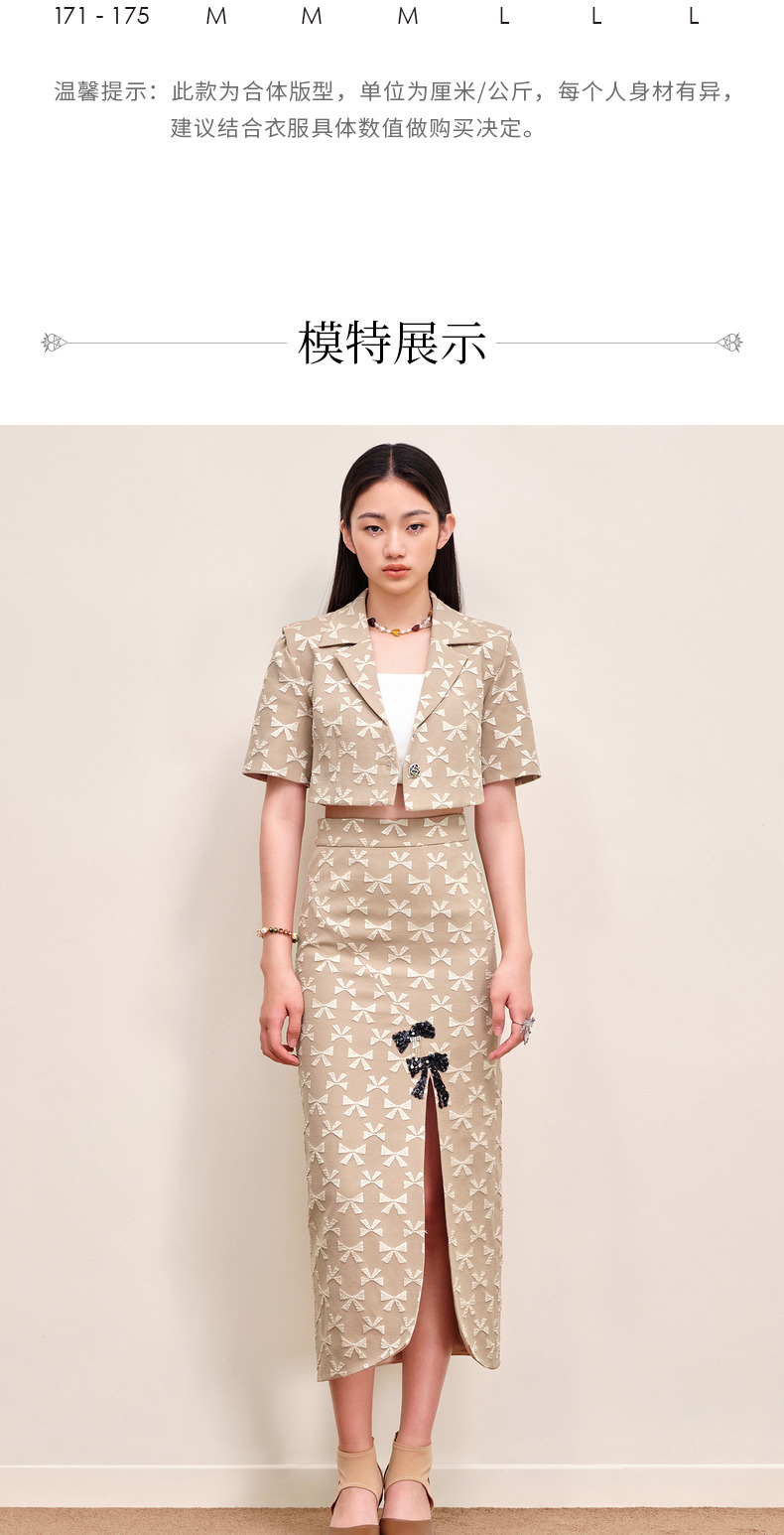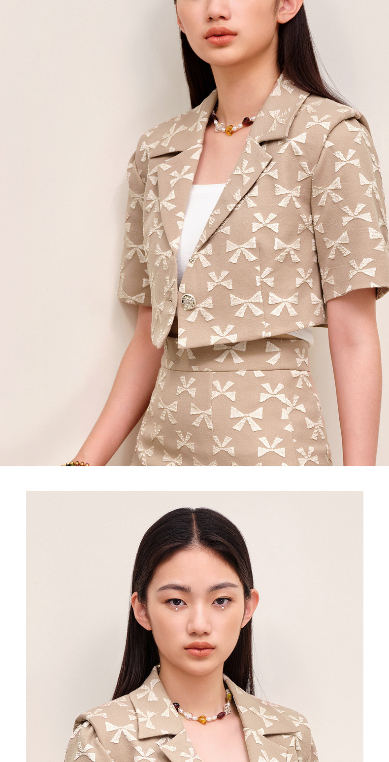 MAXRIENY名媛千金风肌理感蝴蝶结截短外套西装套装(货号:MS88JA541)