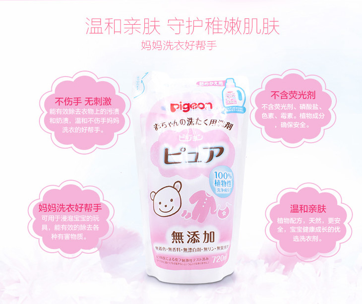贝亲pigeon婴幼儿洗衣液宝宝专用衣物清洁剂替换装720ml