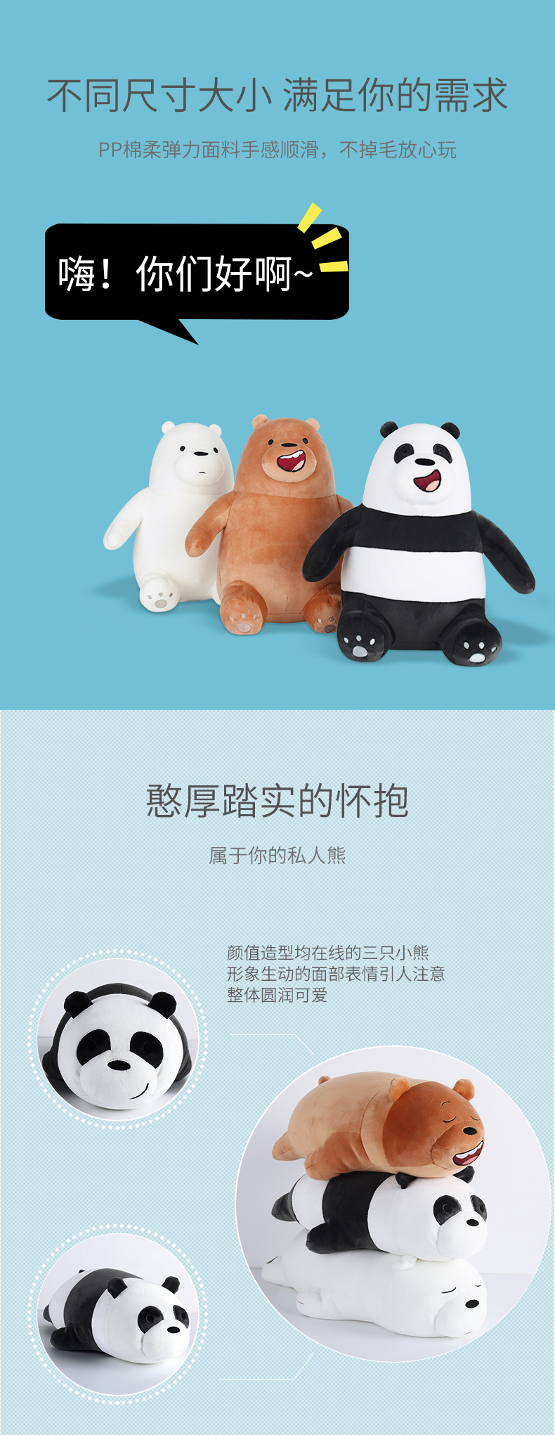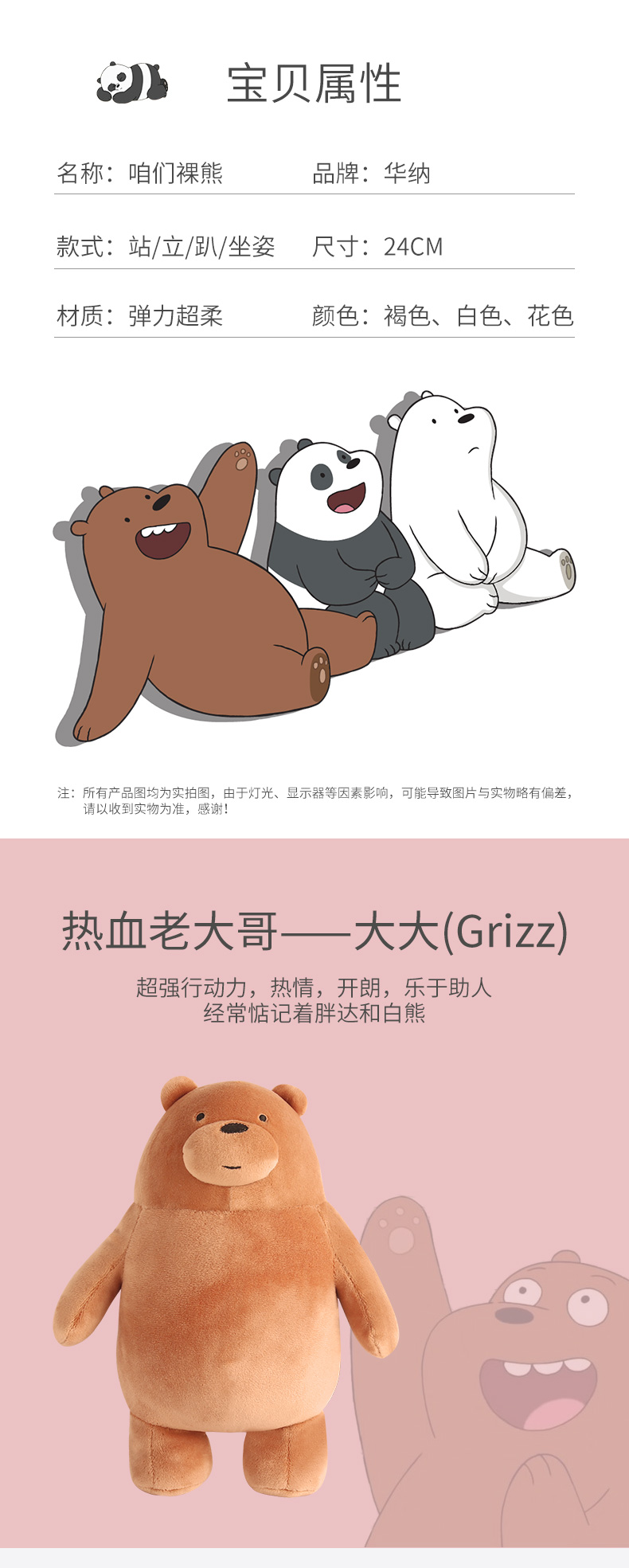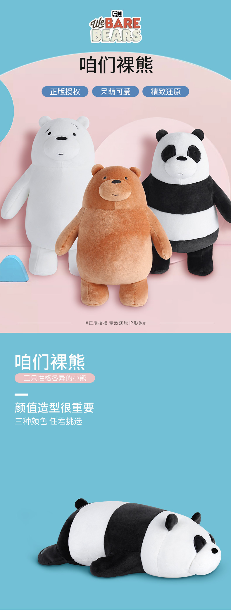 华纳正版授权咱们裸熊CN卡通频道毛绒玩具抱枕玩偶公仔节日礼物