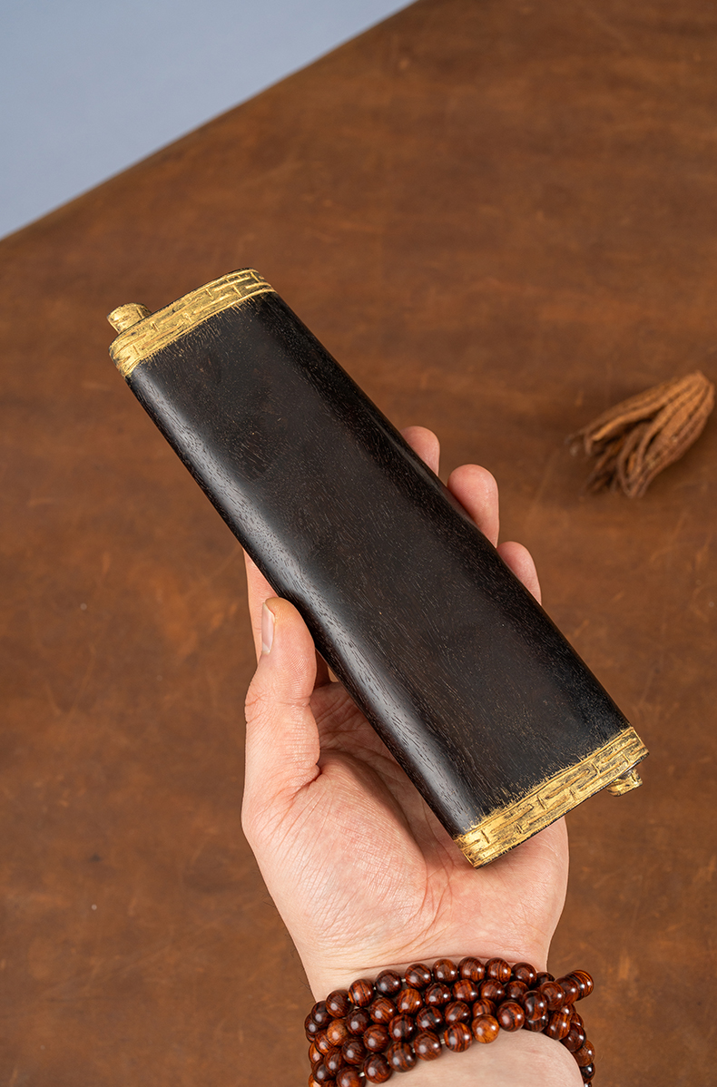 清 黄花梨百宝嵌花鸟诗文笔筒