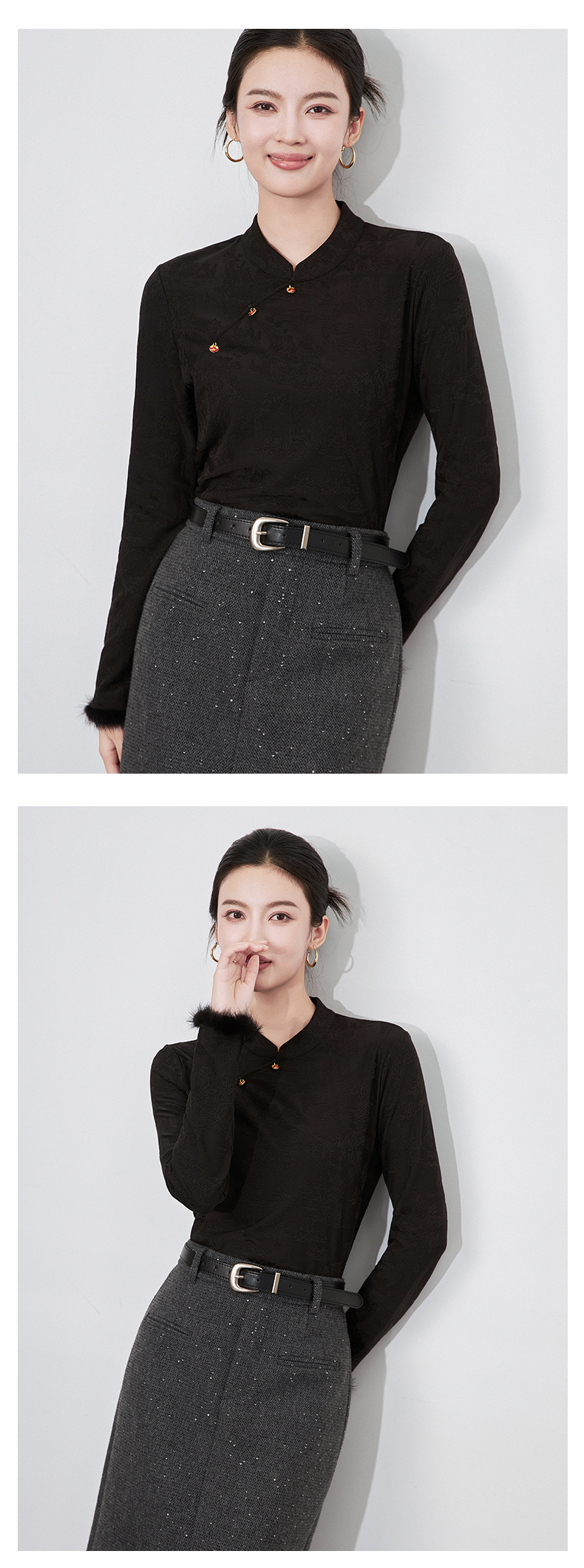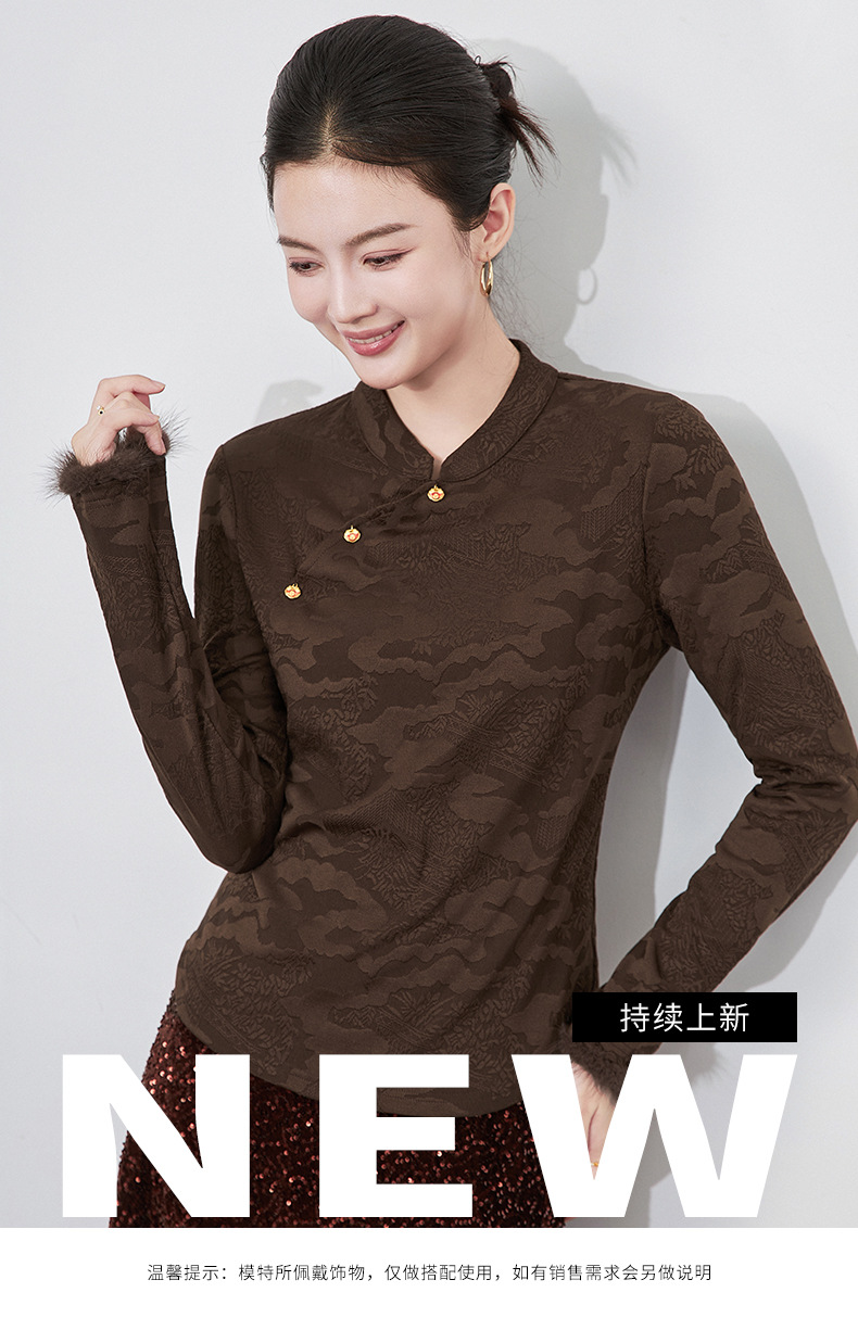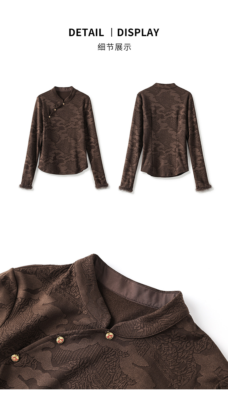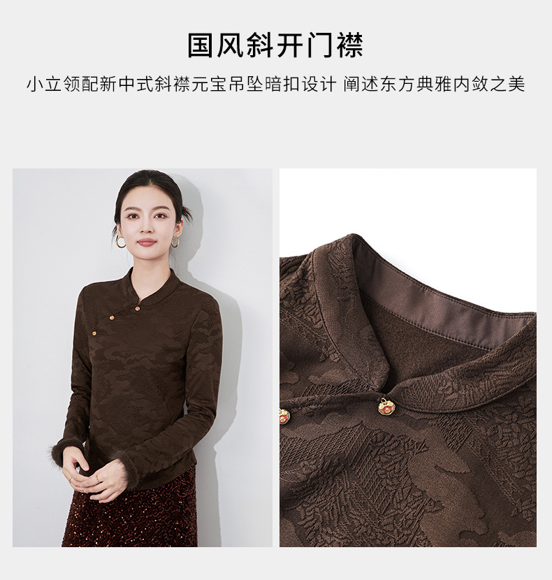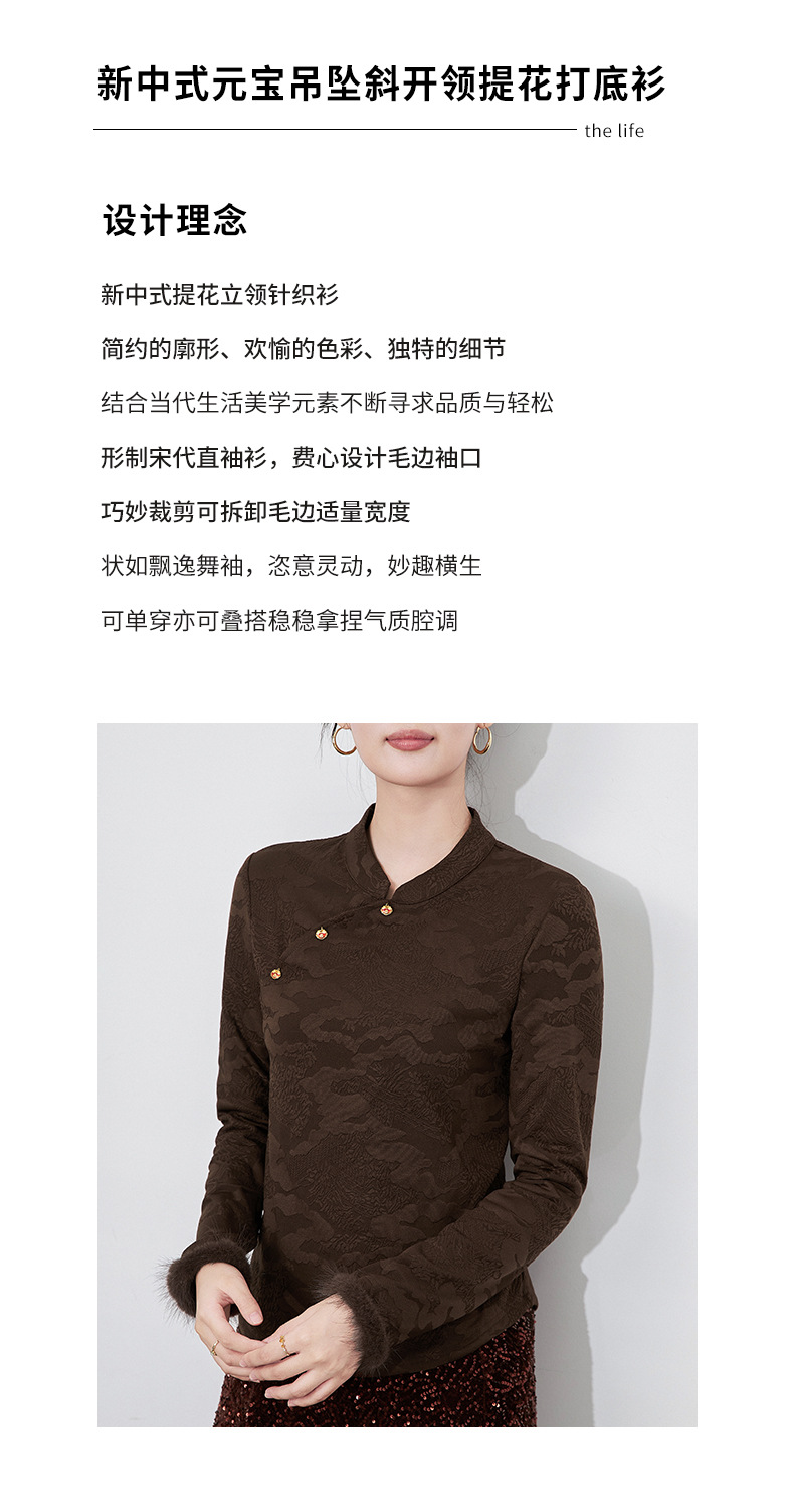 【高货wl】全新升级【铂金会员220/天猫299/差价79】(03417) 洛诗琳冬季新款新中式斜襟盘扣提花小V领国风磨毛打底衫