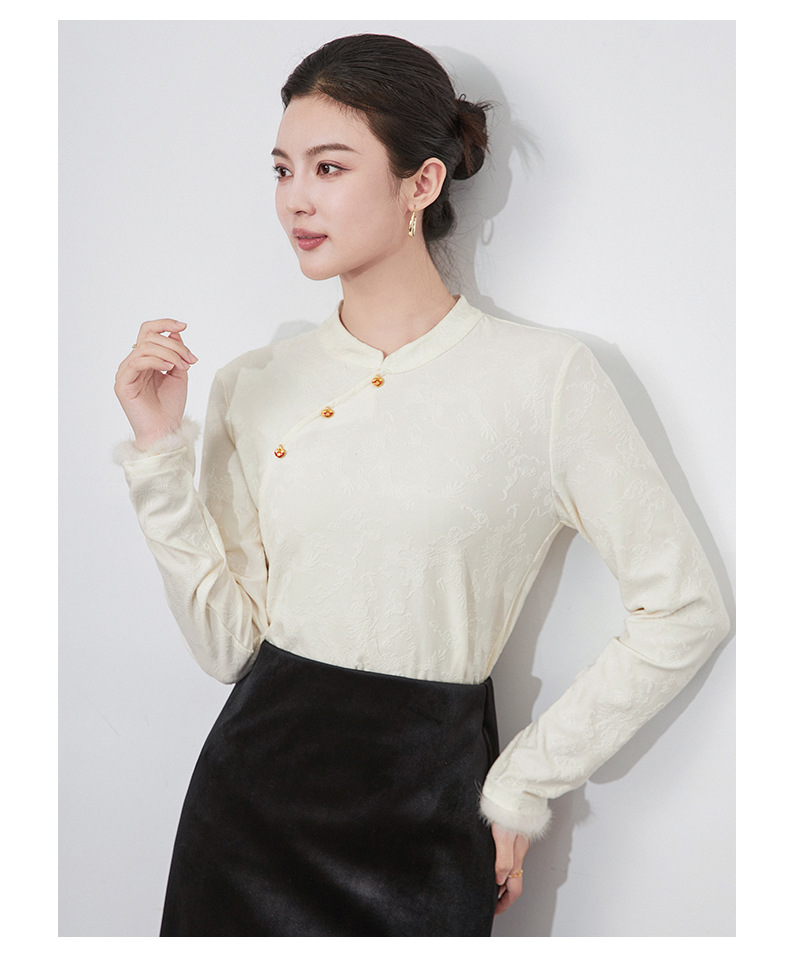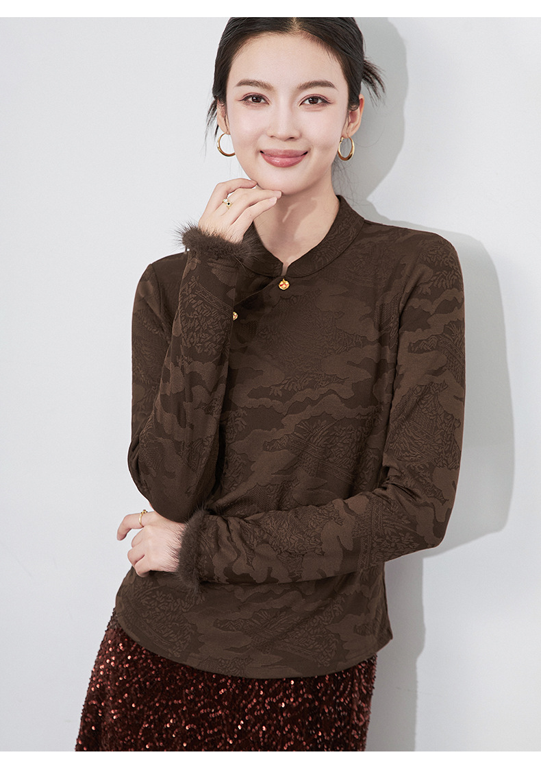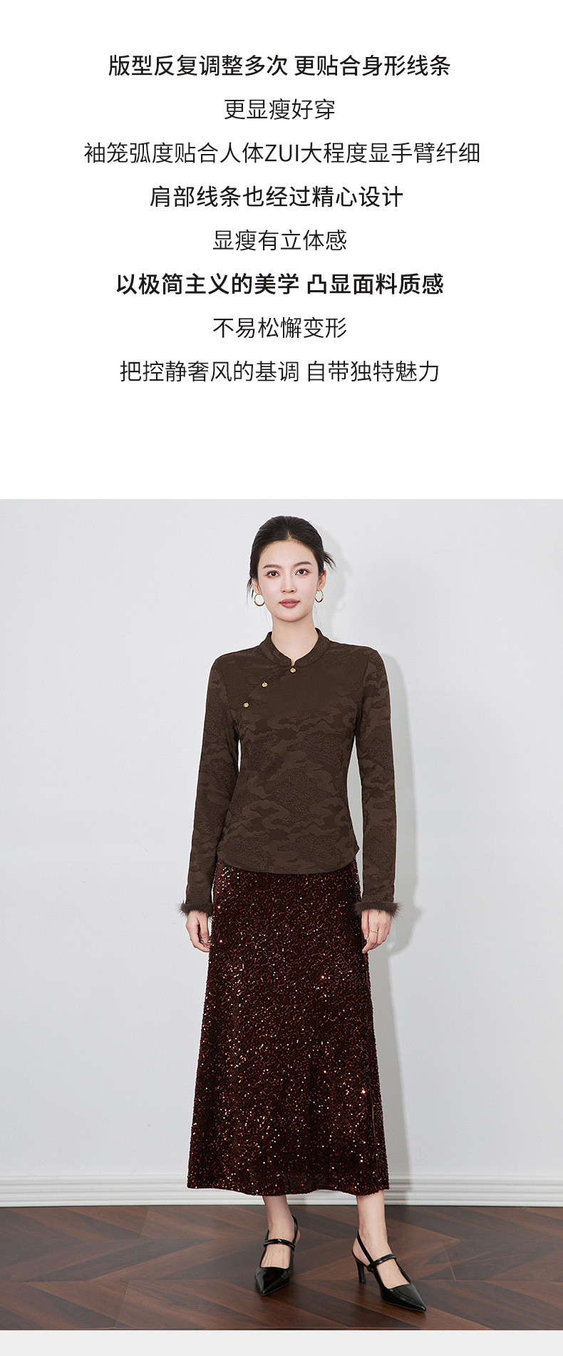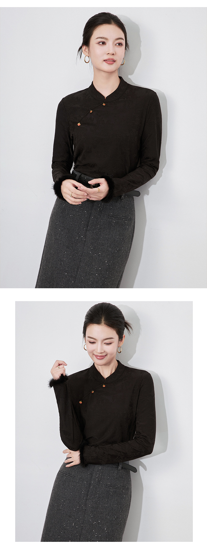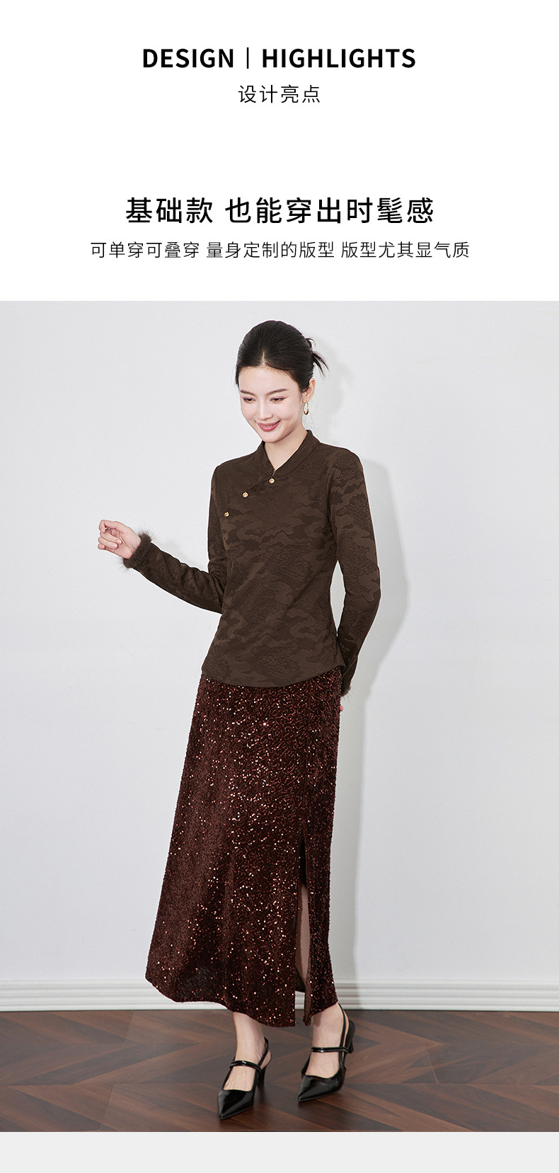 【高货wl】全新升级【铂金会员220/天猫299/差价79】(03417) 洛诗琳冬季新款新中式斜襟盘扣提花小V领国风磨毛打底衫